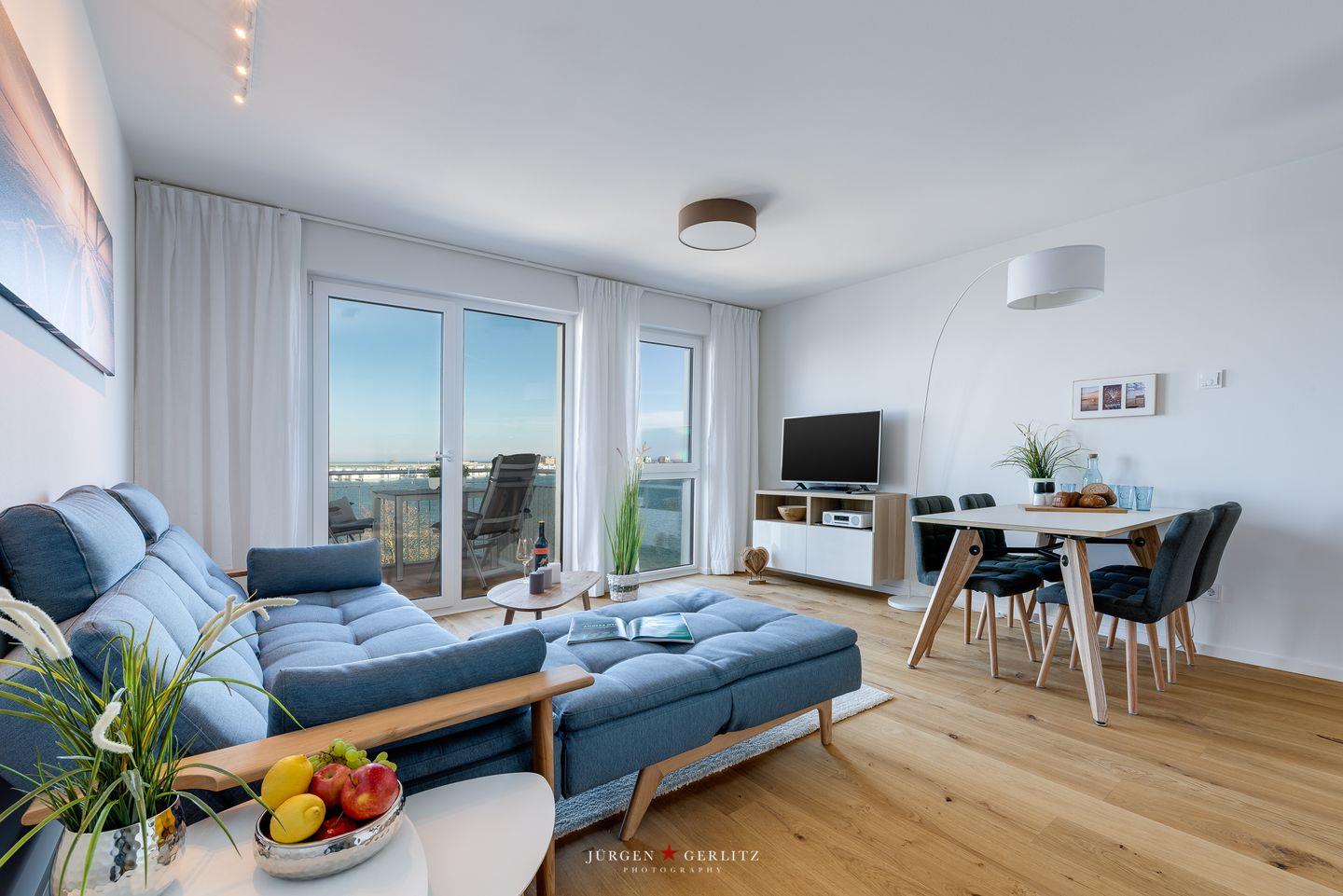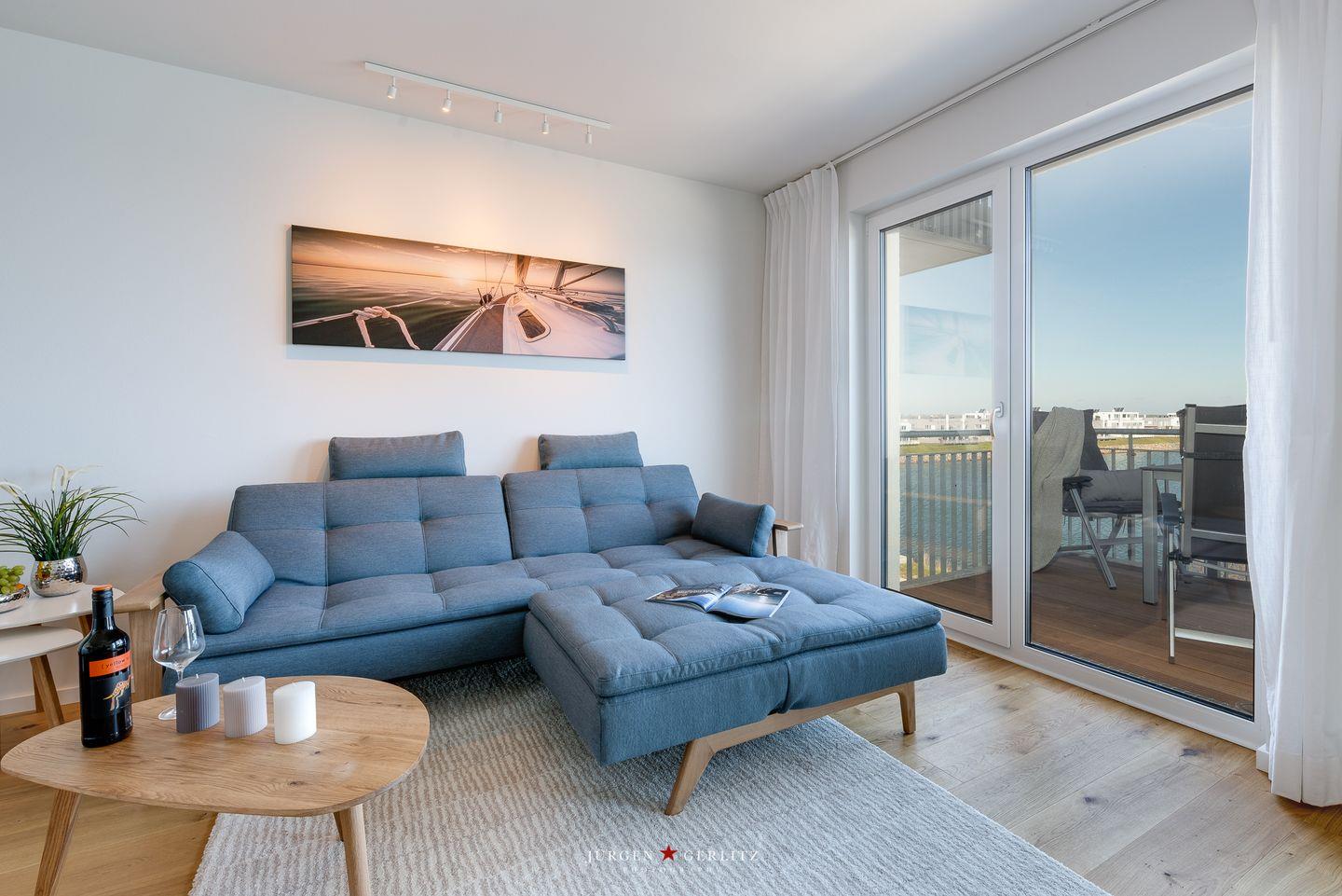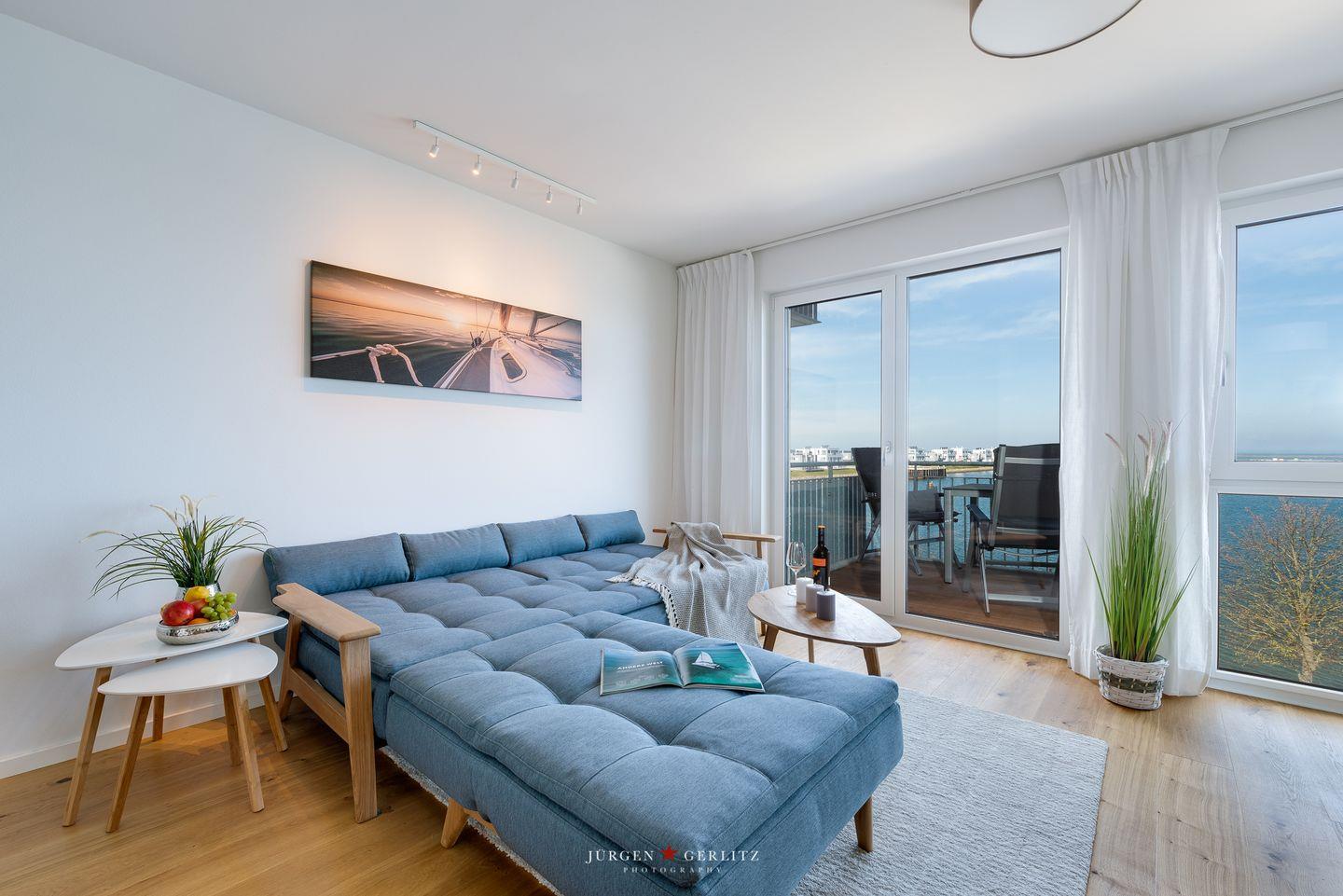 Exklusive Ferienwohnung Marina Sunset West mit Hafenblick, Balkon und moderner Ausstattung direkt am Wasser in Olpenitz.