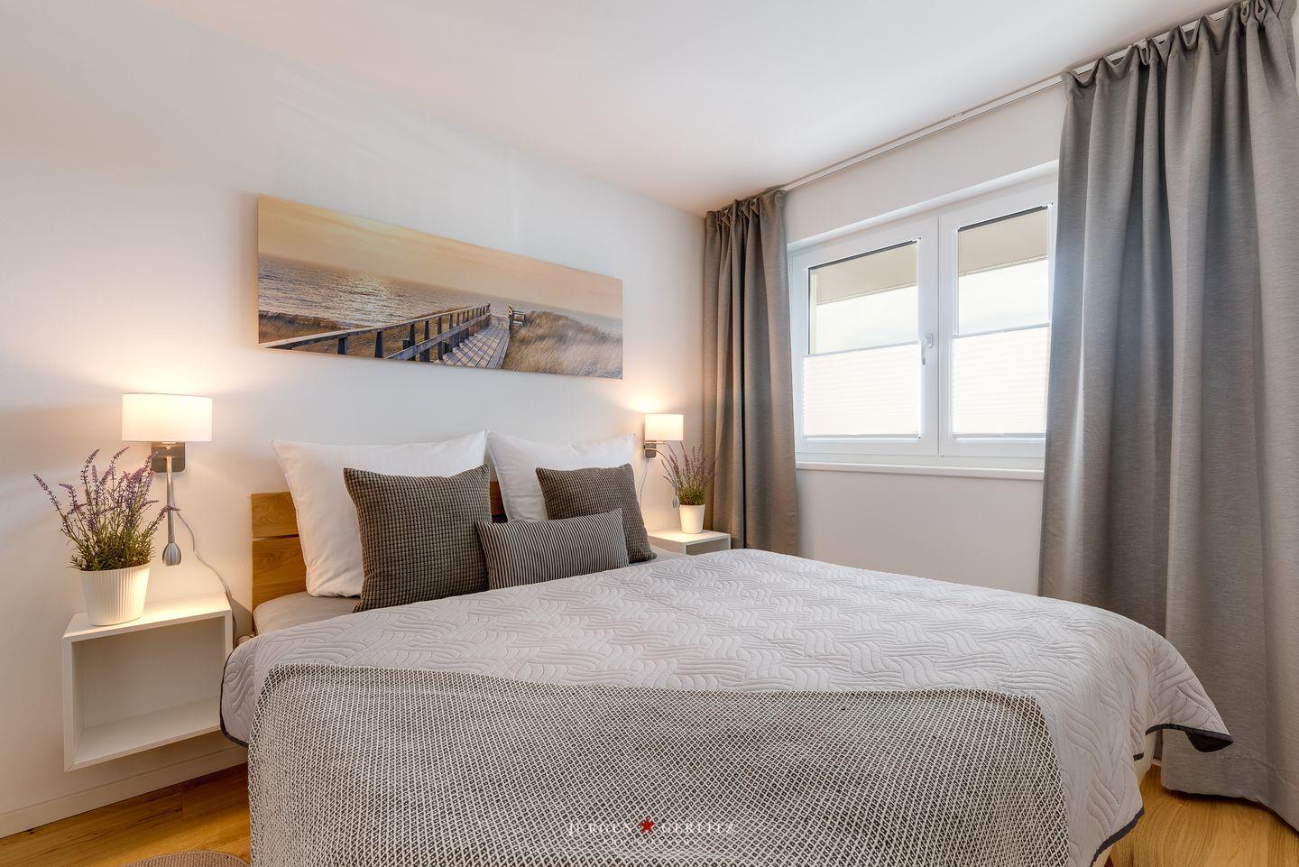 Auf knapp 51 m² bietet sie Dir 1 Schlafzimmer mit Doppelbett, einen offenen Wohn-/Essbereich, eine Küche und ein gemütliches Schlafsofa. Das großzügige Badezimmer verfügt über eine ebenerdige Dusche. Das Highlight ist der Balkon, auf dem Du die Sonnenaufgänge genießen kannst. Ein kostenfreier Parkplatz befindet sich vor dem Haus.