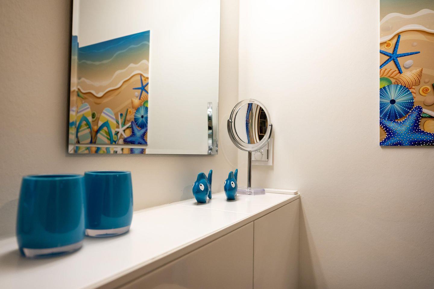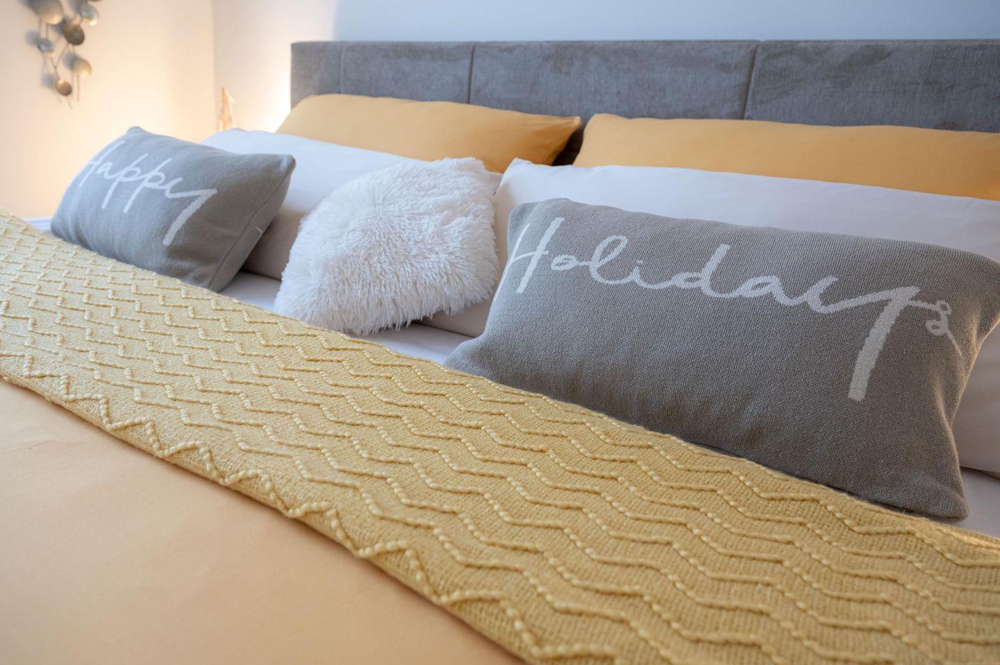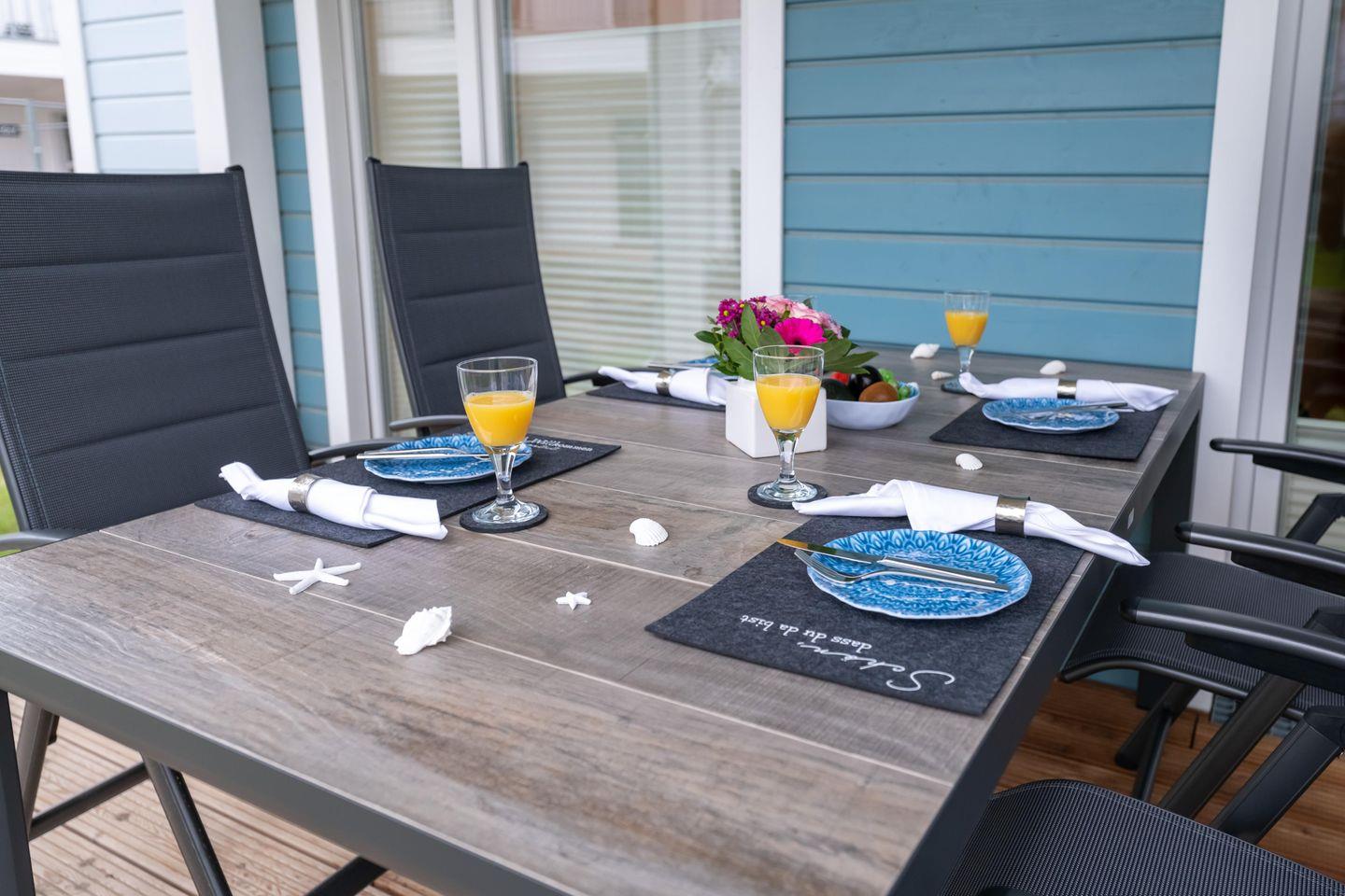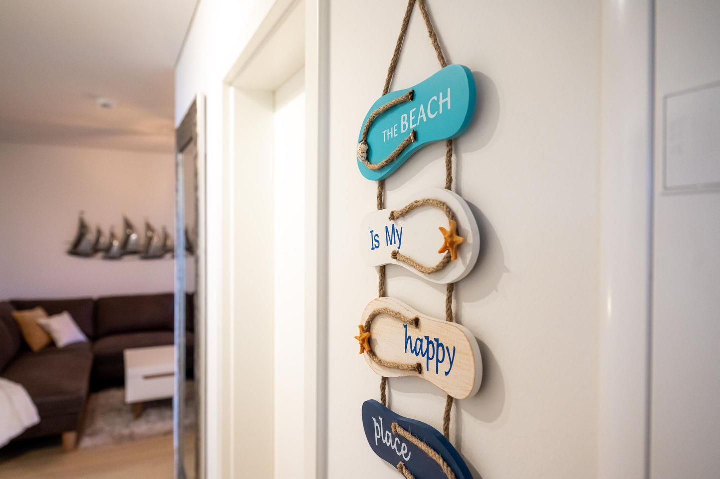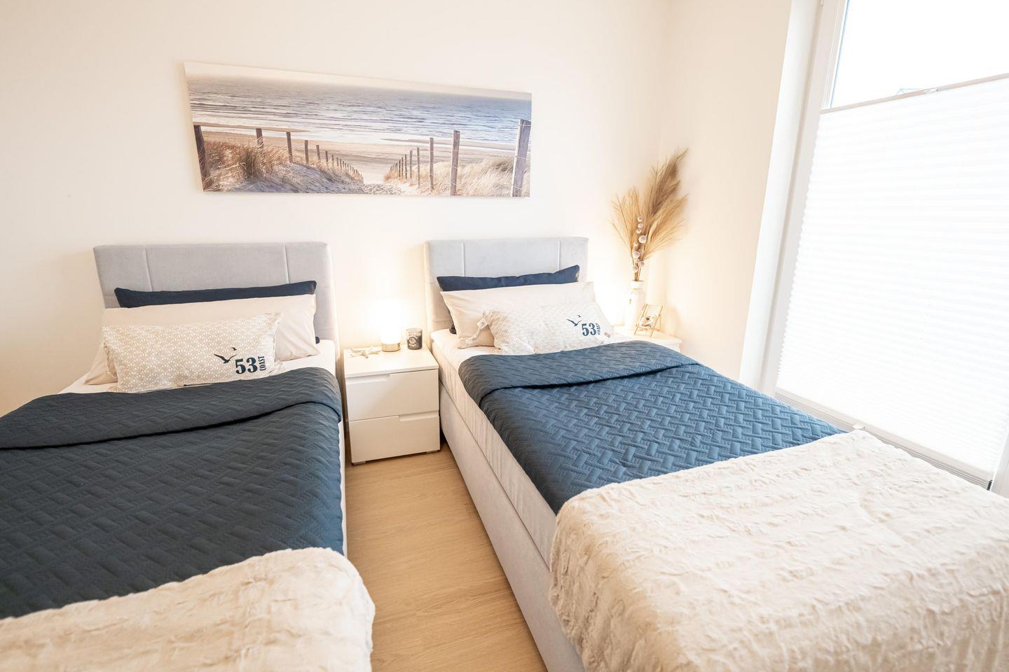 Eintreten und wohlfühlen! Die Ferienwohnung "Entspann Dich“ ist modern, stilvoll und sehr gemütlich, sie besticht durch zeitlose Eleganz und wurde mit viel Liebe zum Detail eingerichtet. Neben zwei Schlafzimmern, einem hellen und freundlichen Bad mit Infrarot-Sauna, einem sehr ansprechenden Wohn- und Essbereich, sowie einer vollausgestatteten Küche, bietet diese im Erdgeschoss gelegene Wohnung eine voll möblierte Terrasse. Das Wohnzimmer ist mit einer großzügigen Wohnlandschaft und einem großen Multimedia-Smart-TV ausgestattet. Gemütliche Abende sind garantiert. Kostenfreies WLAN und Magenta-TV stehen Ihnen selbstverständlich zur Verfügung. In beiden Schlafzimmern finden Sie hochwertige Boxspringbetten. In einem Schlafzimmer ein Doppelbett (180x200cm) in dem anderen zwei Einzelbetten (90x200cm), die Sie jederzeit zu einem Doppelbett zusammenschieben können. Auch verfügen beide Schlafzimmer über Multimedia-Smart-TVs und ausreichenden Stauraum. Verdunklungsmöglichkeiten sowie Fliegengitter ermöglichen Ihnen eine angenehme Nachtruhe. Eine weitere Schlafmöglichkeit bietet das Schlafsofa im Wohnbereich. Die Küche ist von der Nespresso-Maschine über den Wasch-Trockner bis zur Spülmaschine mit allen erdenklichen modernen Annehmlichkeiten ausgestattet. Kochen und backen machen hier wirklich Spaß. Das lichtdurchflutete Bad bietet Ihnen eine große ebenerdige Dusche, einen Fön und einen Kosmetikspiegel. Für Wellnessfeeling sorgt die eingebaute Infrarot-Sauna mit Soundanlage. Auch die Terrasse lädt, mit einem Tisch und 6 Hochlehner-Stühlen, zum Entspannen ein und der hochwertige Weber-Elektrogrill lässt auch Grillfreunde auf Ihre Kosten kommen. Jeder Raum verfügt über Plissees sowie Fliegengitter. Da die Wohnung Tier frei ist, fühlen sich auch Allergiker wohl. Auf der angrenzenden Terrasse können Sie den Tag in Ruhe ausklingen lassen und die schönen Sonnenuntergänge genießen. Auch die Grünfläche vor der Terrasse kann genutzt werden. Direkt vor der Unterkunft parken Sie kostenfrei, eine E-Ladesäule steht Ihnen hier ebenso zur Verfügung, wie ein abschließbarer Fahrradschuppen.