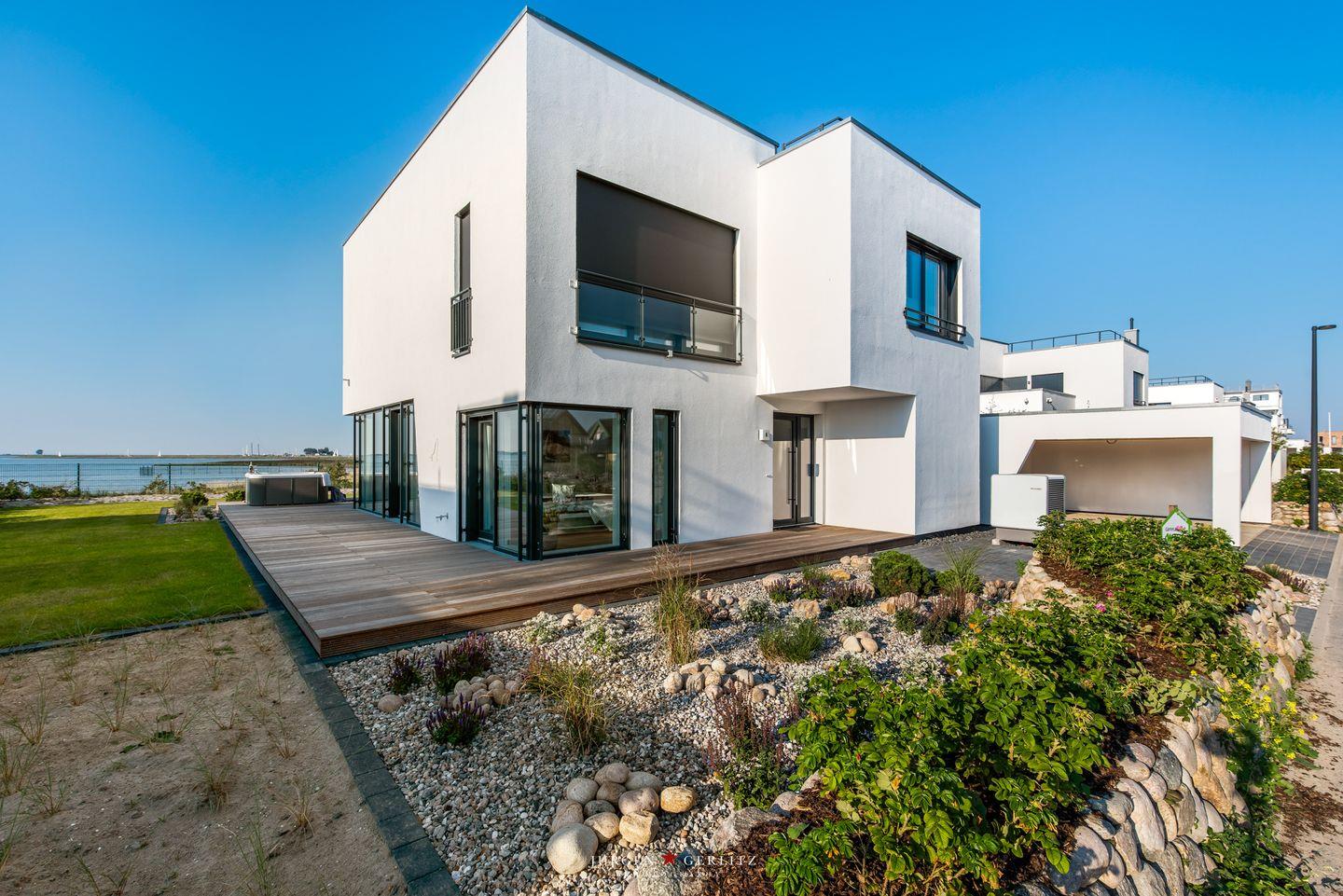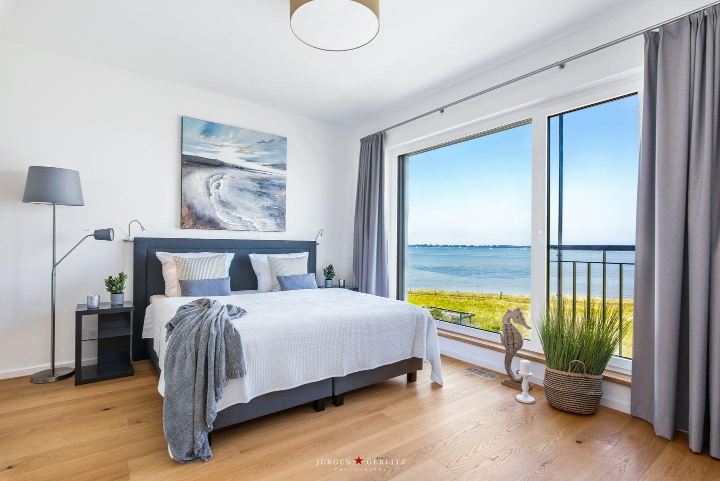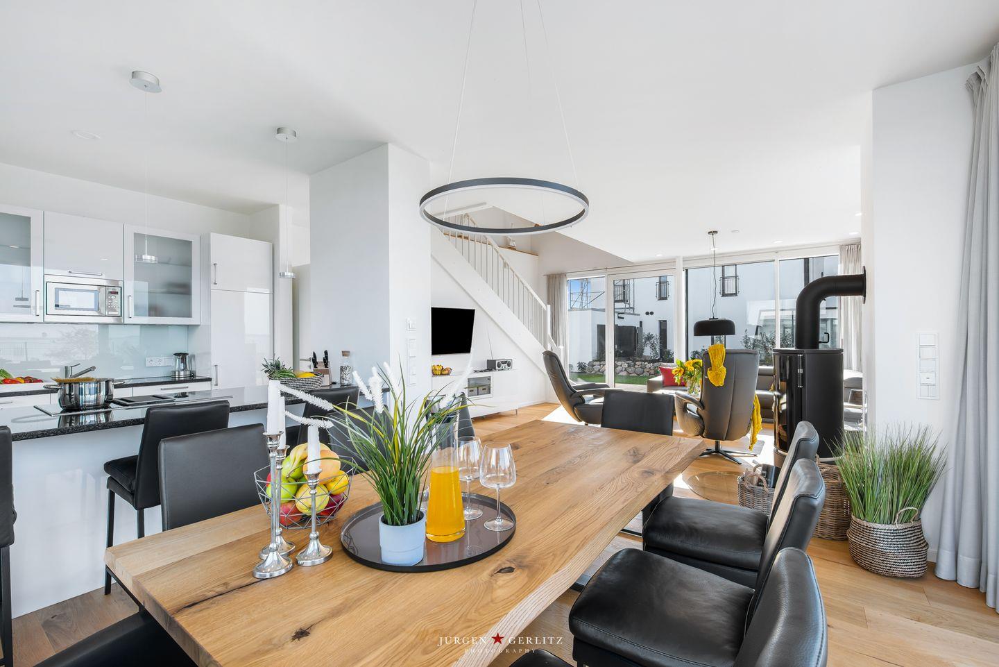 Nach Betreten dieser Villa befindest Du Dich im lichtdurchfluteten, modernen und exklusiv eingerichteten Wohn-/Essbereich wieder, der dank seiner bodentiefen Panoramafenster einen atemberaubenden Ausblick über die Schleimündung und die Ostsee bietet.