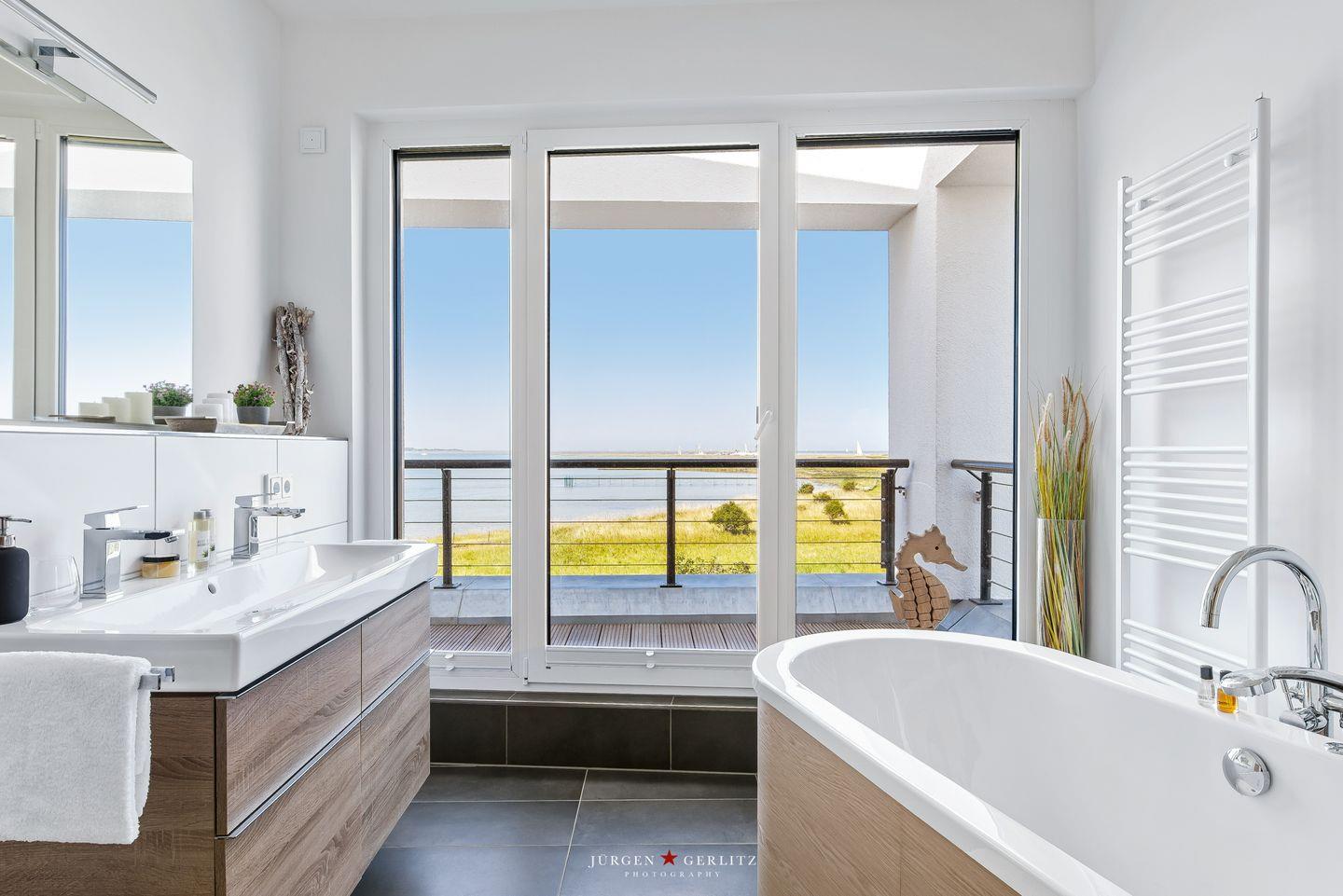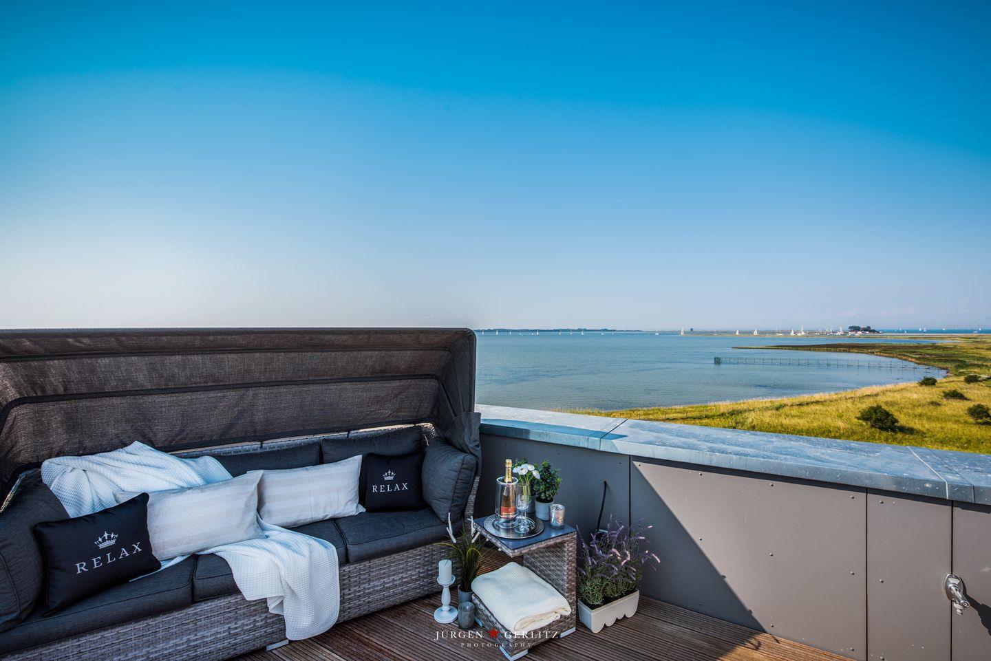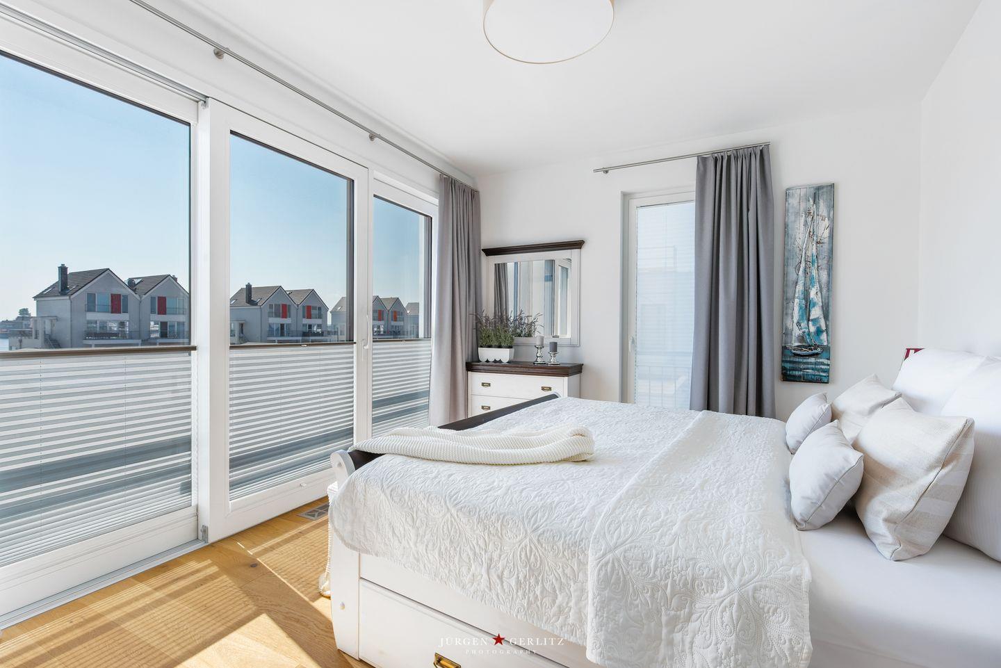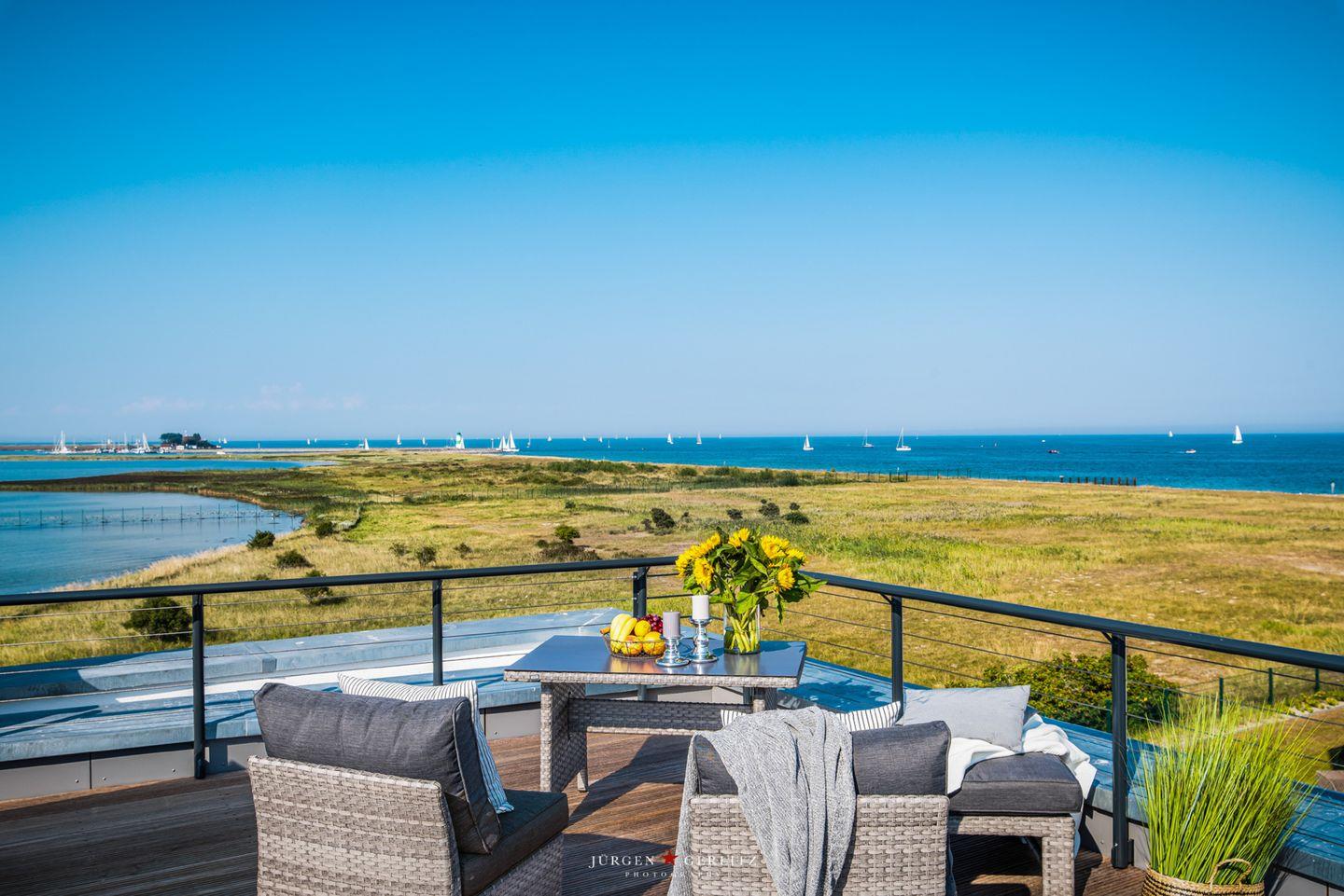 Nach Betreten dieser Villa befindest Du Dich im lichtdurchfluteten, modernen und exklusiv eingerichteten Wohn-/Essbereich wieder, der dank seiner bodentiefen Panoramafenster einen atemberaubenden Ausblick über die Schleimündung und die Ostsee bietet.
