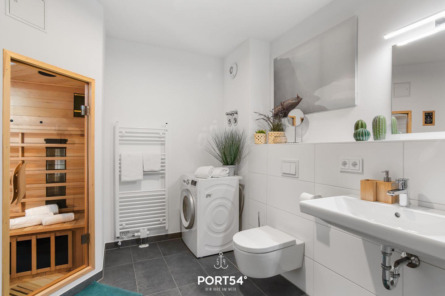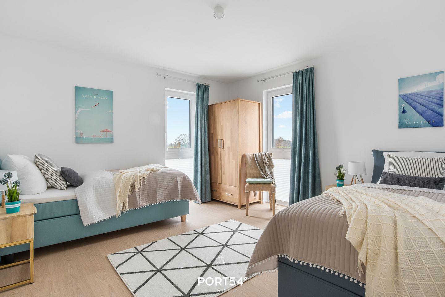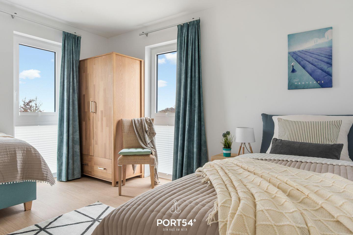 Die Maisonette-Wohnung bietet Ihnen eine perfekt ausgestattete Küche, bodentiefe Fenster, einen Kamin & eine große Dachterrasse. Zwei, der drei Schlafzimmer, verfügen über Doppelboxspringbetten & das dritte über 2 Einzelbetten. Zusätzlich gibt es noch 2 helle Badezimmer, eines mit einer Infrarot-Sauna & Dusche, das andere bietet eine Badewanne. Bitte beachten Sie, dass der Aufbau des OstseeResort Olpenitz noch nicht abgeschlossen ist und es in der Nähe zu Bautätigkeiten kommen kann.