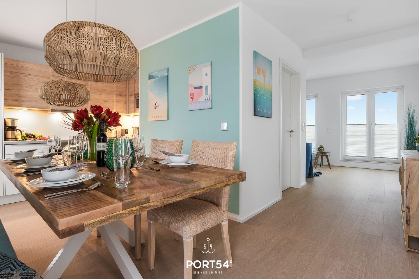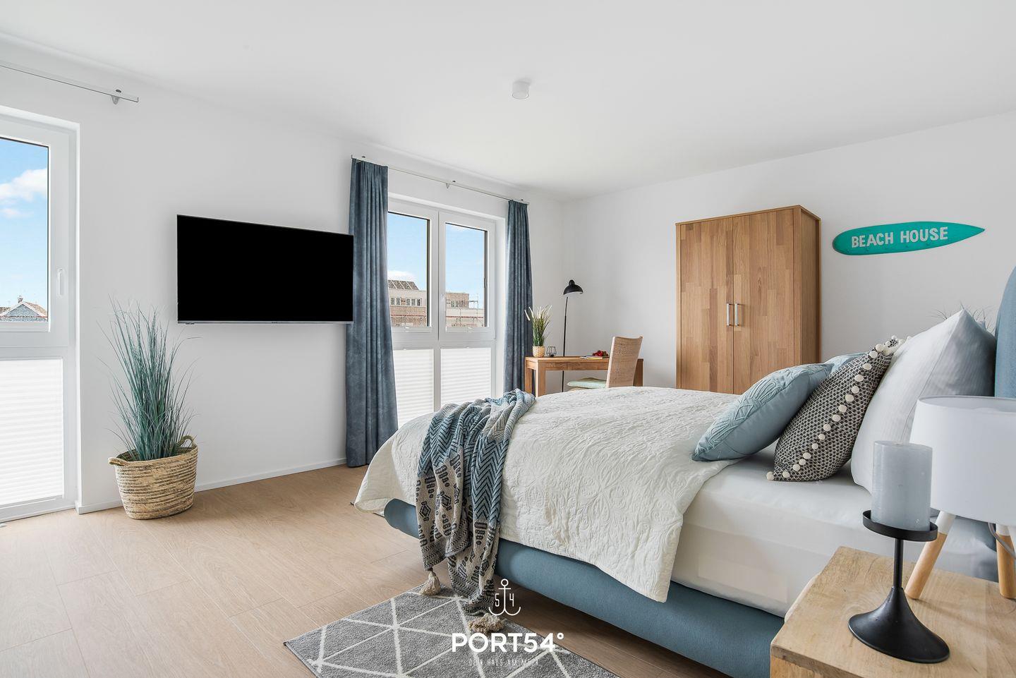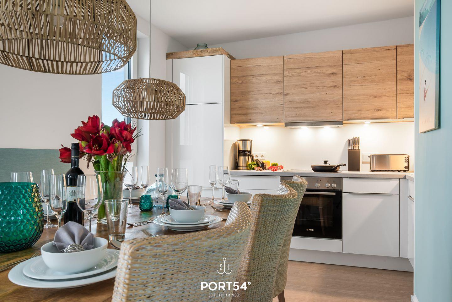Die Maisonette-Wohnung bietet Ihnen eine perfekt ausgestattete Küche, bodentiefe Fenster, einen Kamin & eine große Dachterrasse. Zwei, der drei Schlafzimmer, verfügen über Doppelboxspringbetten & das dritte über 2 Einzelbetten. Zusätzlich gibt es noch 2 helle Badezimmer, eines mit einer Infrarot-Sauna & Dusche, das andere bietet eine Badewanne. Bitte beachten Sie, dass der Aufbau des OstseeResort Olpenitz noch nicht abgeschlossen ist und es in der Nähe zu Bautätigkeiten kommen kann.