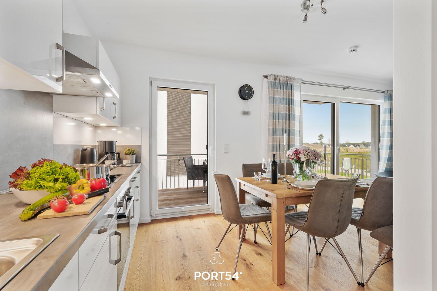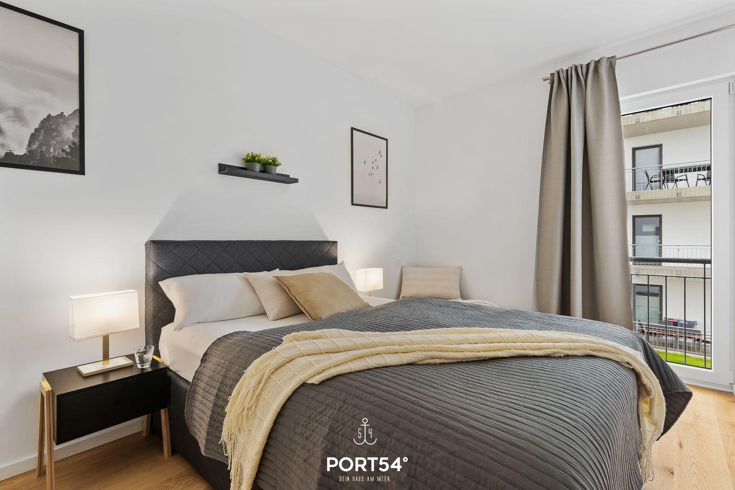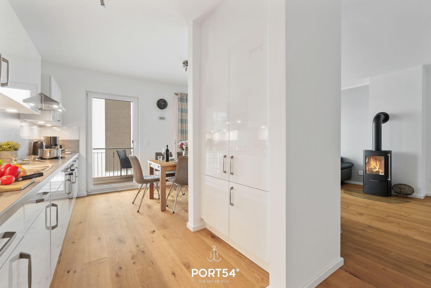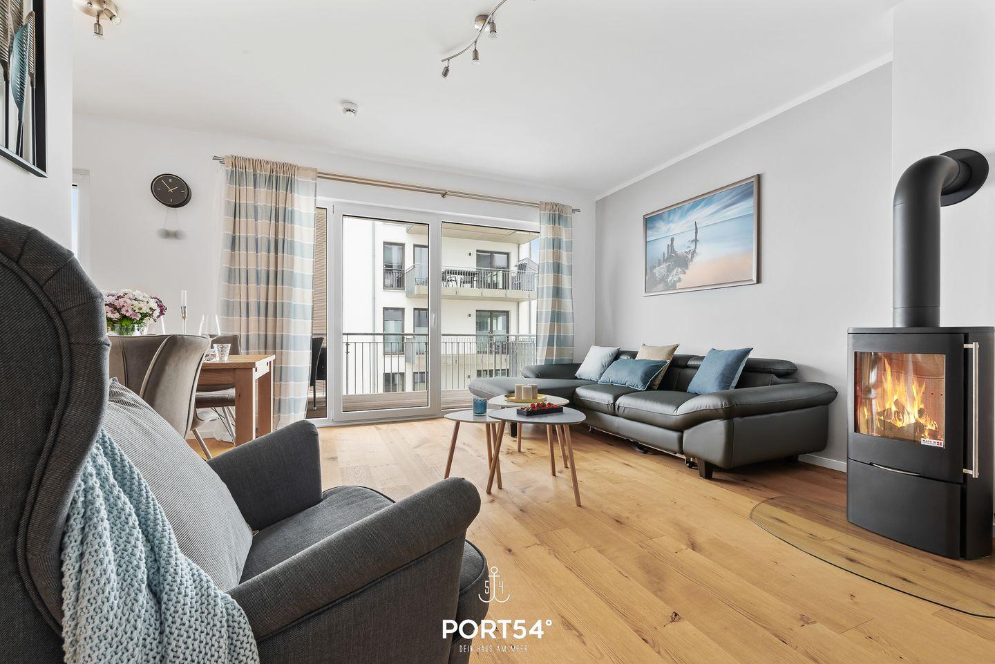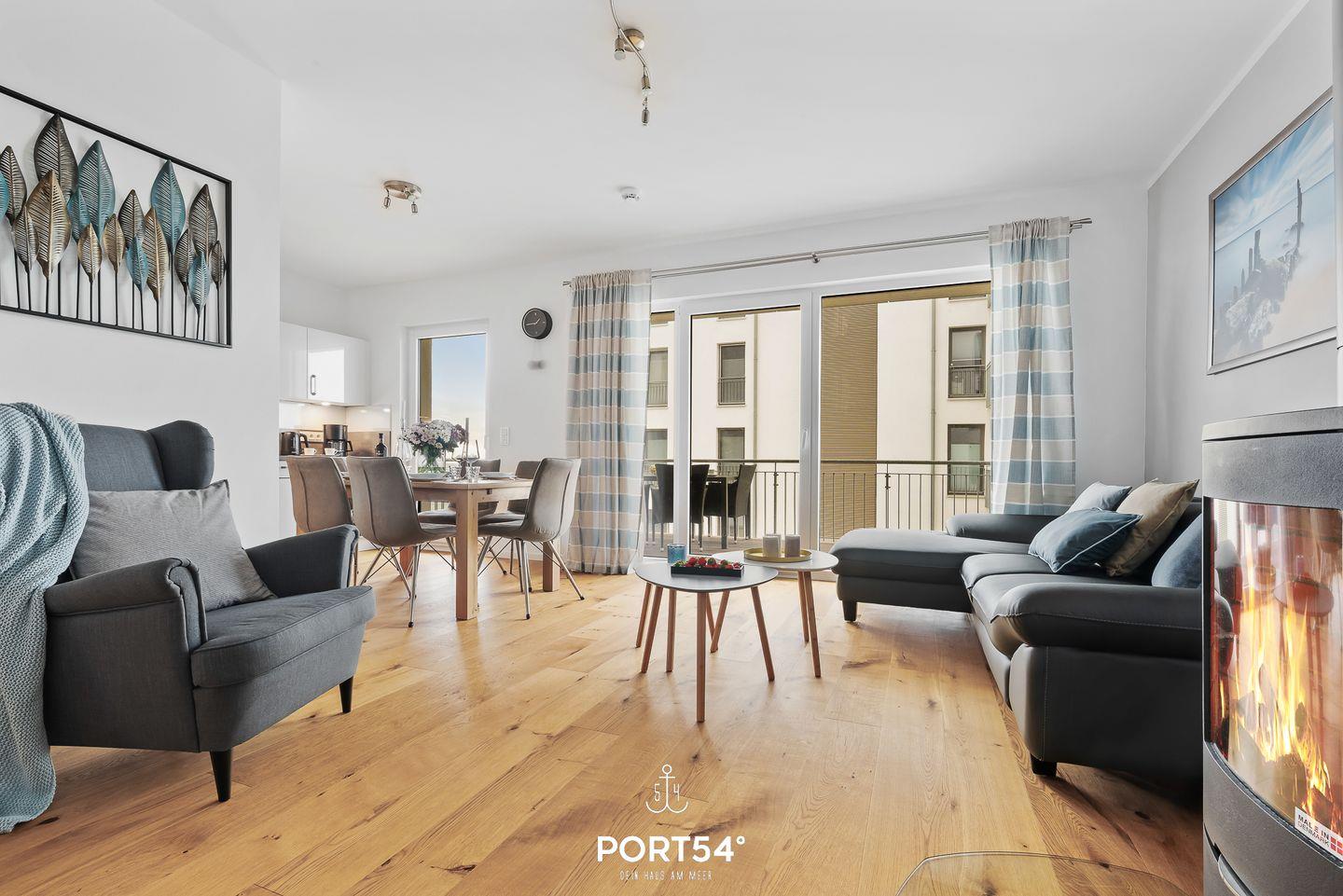 Moderne Ferienwohnung Seapoint mit Balkon, Kamin und Seeblick im OstseeResort Olpenitz.