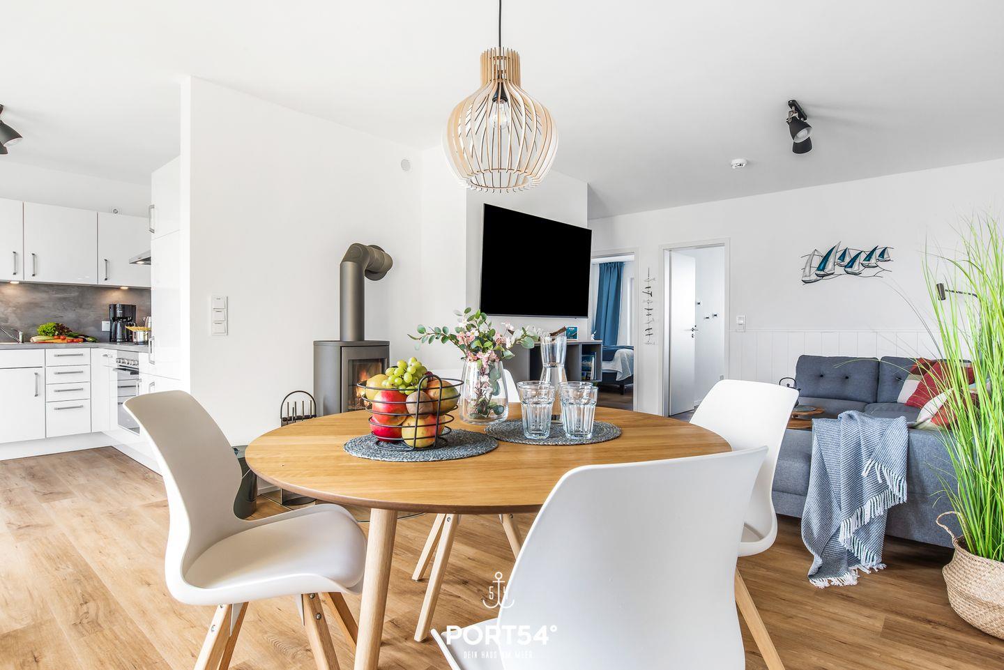 Die moderne Küche ist voll ausgestattet und im angrenzenden Essbereich kannst Du gemeinsam mit Deinen Liebsten den Abend in geselliger Runde bei einem guten Essen genießen.