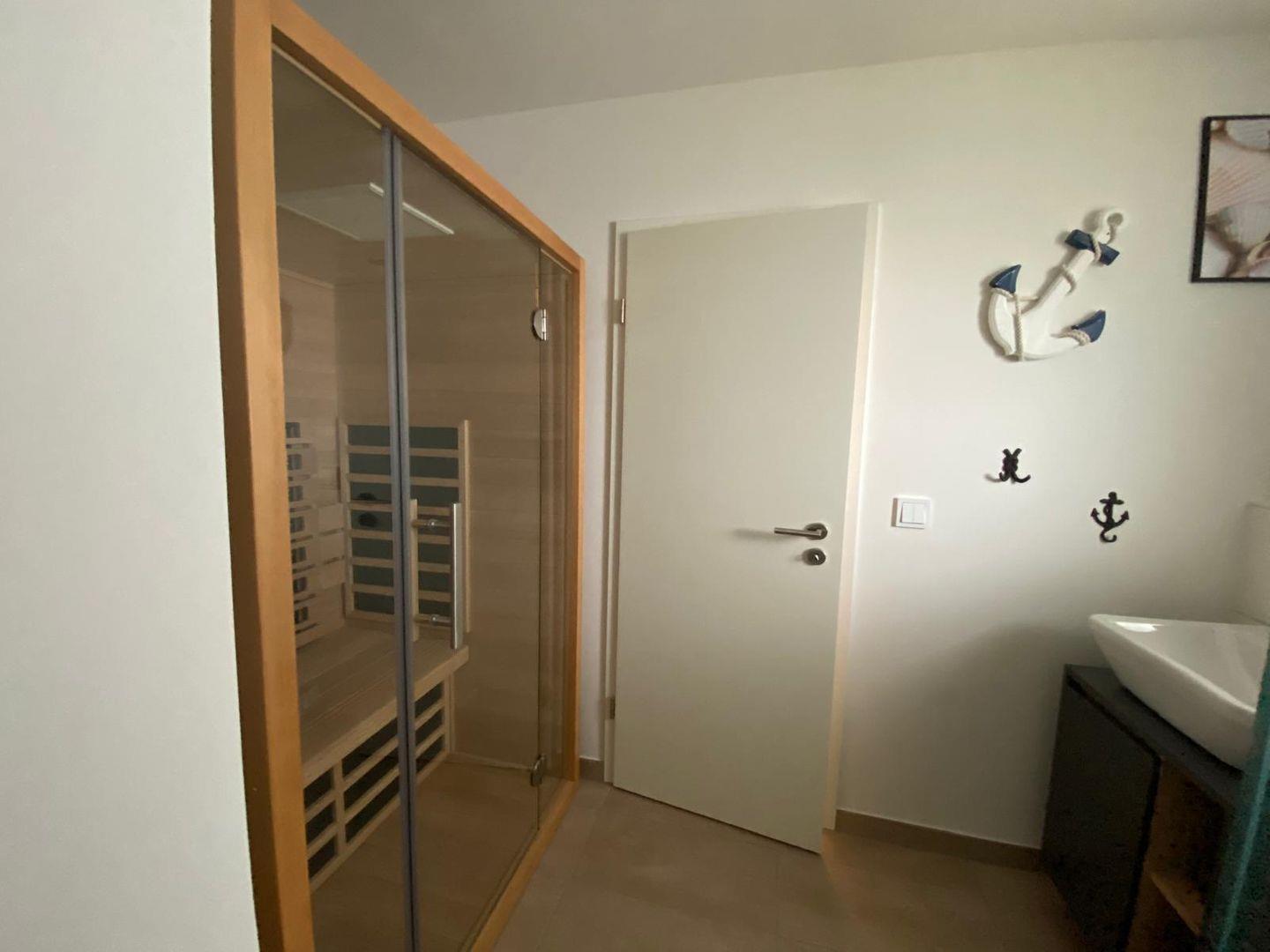 Das Badezimmer lädt nicht nur zur täglichen Erfrischung ein, sondern bietet mit Dusche, Fenster, Spiegel, Haartrockner und Handtuchheizkörper allen Komfort. Ein besonderes Highlight ist die integrierte Infrarotsauna – ideal zum Entspannen nach einem aktiven Urlaubstag.