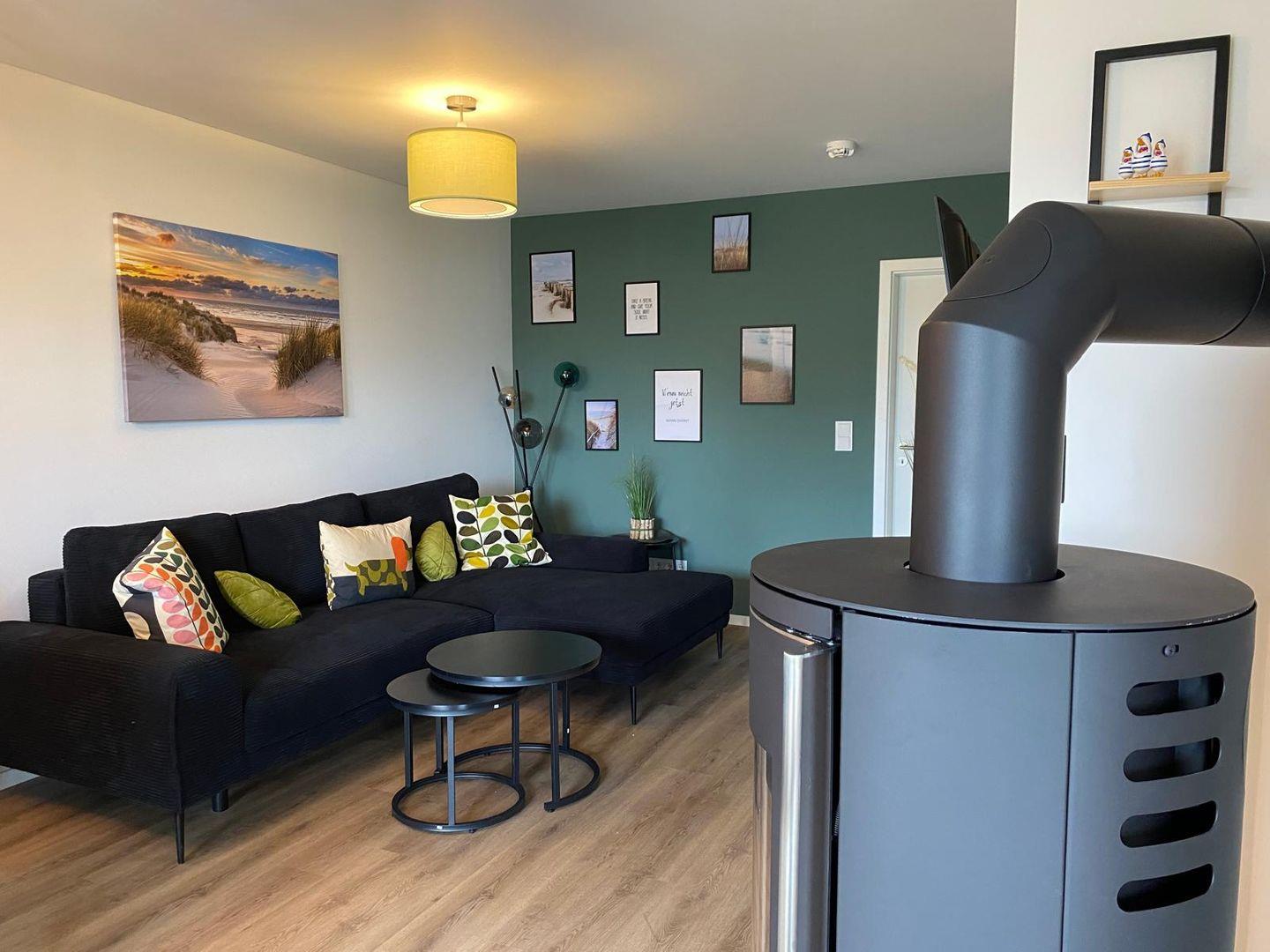 Die Ferienwohnung Tüddelbüddel bietet auf großzügigen 81 qm viel Platz für bis zu fünf Erwachsene und ein Kind und verbindet Komfort mit einer gemütlichen, wohnlichen Atmosphäre. Bereits beim Eintreten empfängt Sie der lichtdurchflutete, offen gestaltete Wohn- und Essbereich, der das Herzstück der Wohnung bildet. Hier können Sie gemeinsam kochen, essen, entspannen oder den Tag Revue passieren lassen. Der Kamin im Wohnzimmer sorgt besonders an kühleren Abenden für wohlige Wärme und eine behagliche Stimmung. Zusätzlich steht Ihnen hier ein moderner Smart-TV zur Verfügung, sodass auch gemütliche Filmabende auf der ausziehbaren Couch nicht zu kurz kommen.