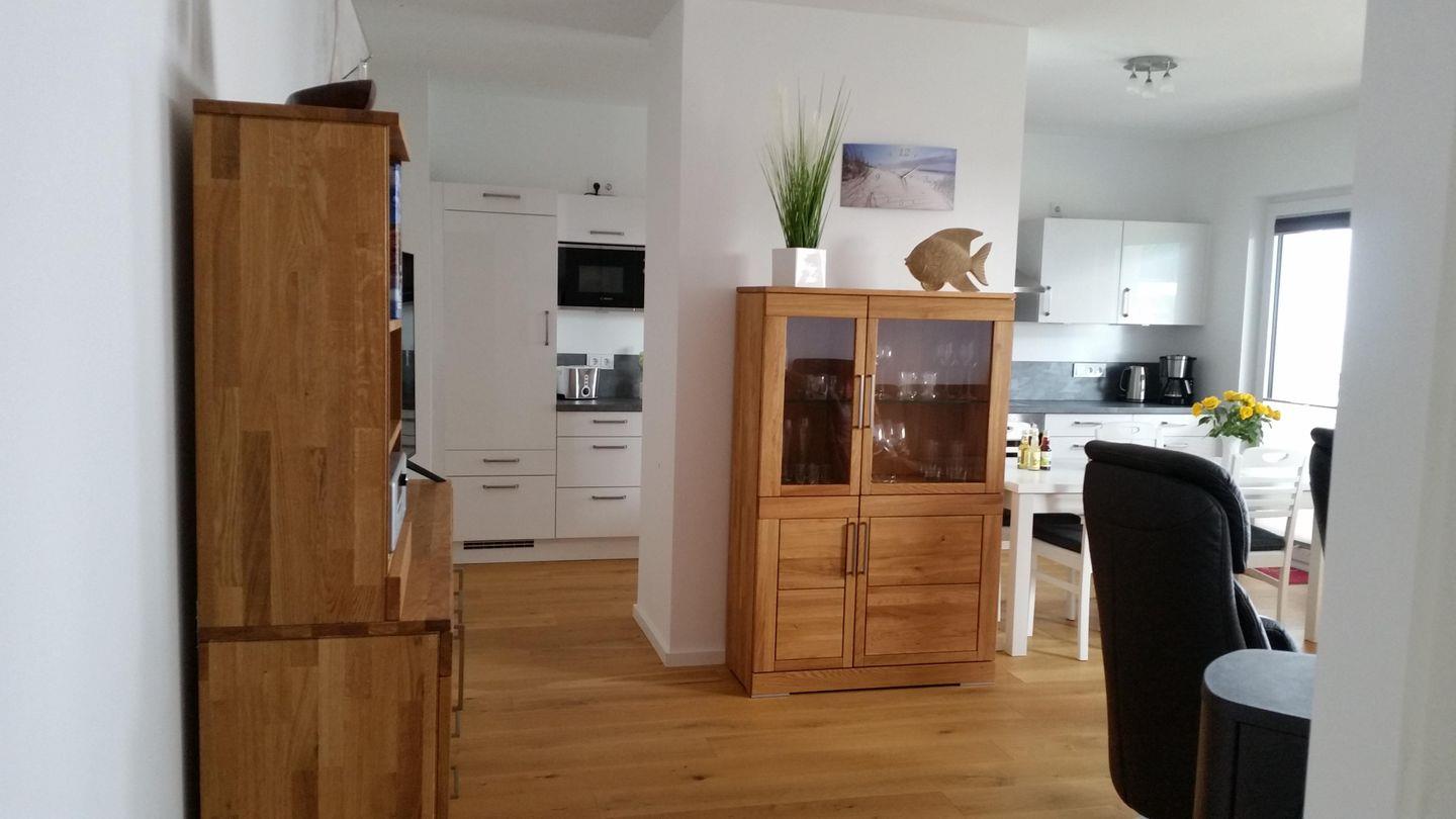 Modernes Apartment Sterntaucher mit Balkon, Kamin und Meerblick nahe dem Weidefelder Strand.