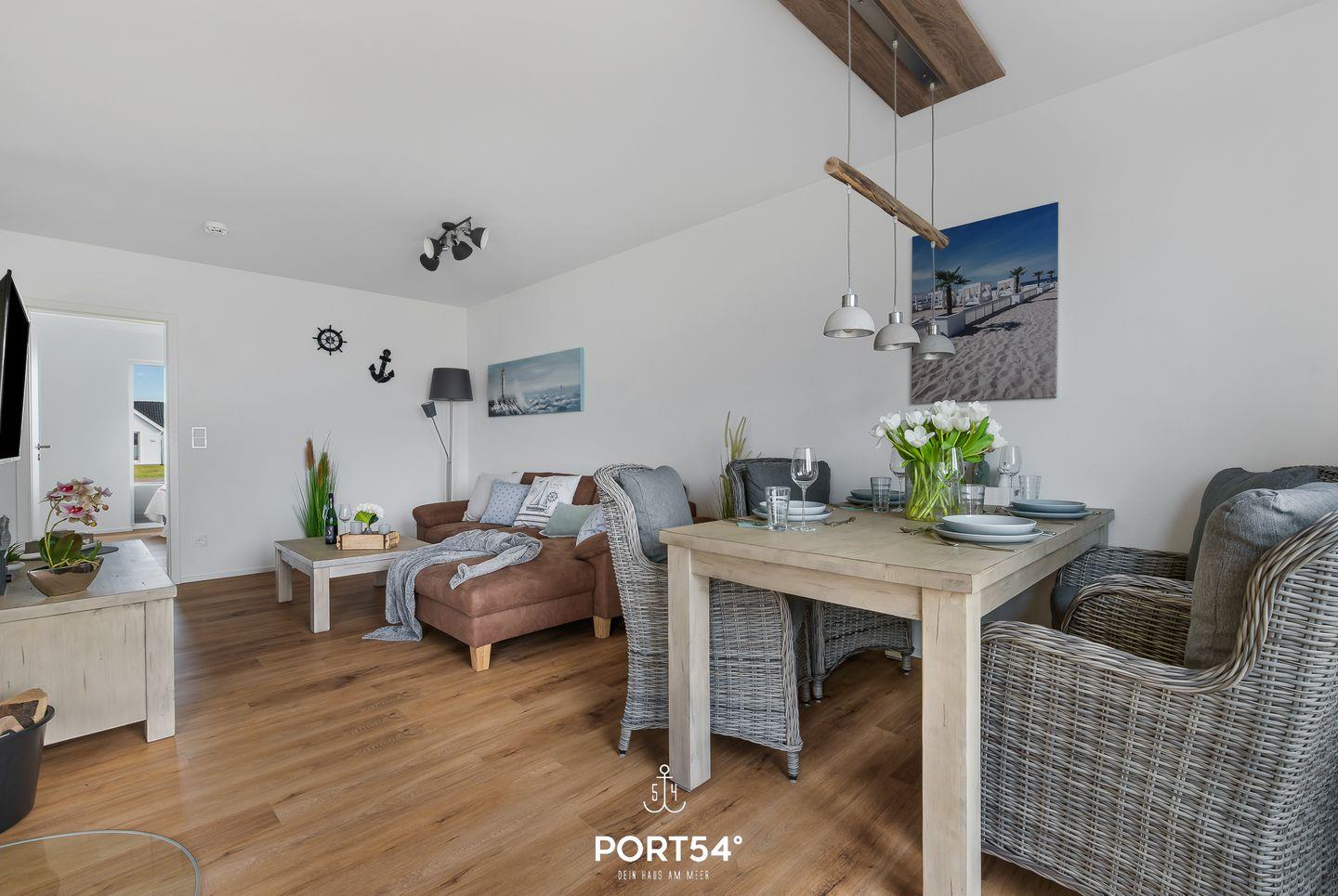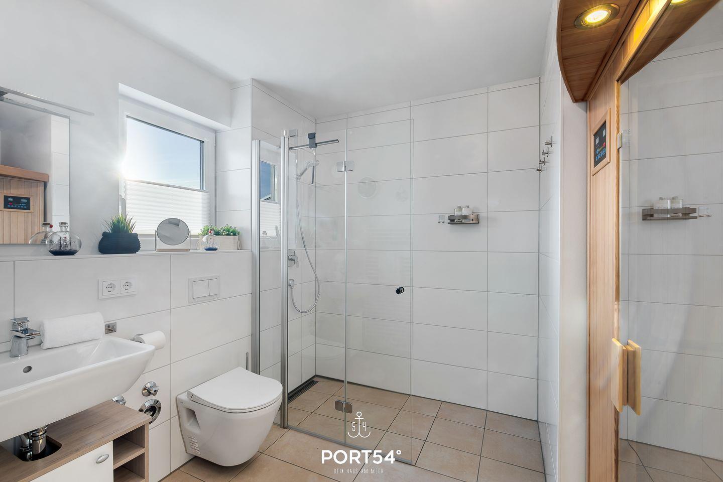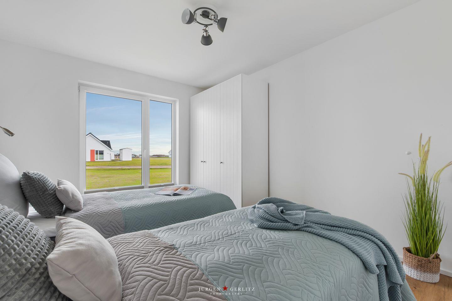 Gemütliche Doppelhaushälfte mit Sauna und Strandnähe! Auf ca.76m² bietet die "Weisse Düne II" mit 2 Schlafzimmern und einem großen offenen Wohn-/Essbereich viel Platz für bis zu 4 Personen. Durch die sehr gute Lage kommt sofort Urlaubsfeeling auf und sogar der Strand ist in wenigen Gehminuten zu erreichen. Das ebenerdige Haus hat einen modernen, offenen Wohn-/Essbereich mit einer angrenzenden vollausgestatteten Küche, die zudem über eine Filterkaffeemaschine und eine Nespressomaschine verfügt. Im Wohnbereich ist ein Kamin, vor dem Sie es sich in der kalten Jahreszeit gemütlich machen können. Die Küche ist hochwertig und voll ausgestattet, hier lässt sich hervorragend ein geselliger Kochabend veranstalten. Das eine der beiden Schlafzimmer verfügt über ein Doppelbett, das andere hat 2 Einzelbetten. Hier können Sie im Urlaub ausschlafen und dem Alltagsstress entfliehen. Im Badezimmer lässt es sich hervorragend in der der Infrarot-Sauna entspannen. Auf der angrenzenden Terrasse können Sie den Tag in Ruhe ausklingen lassen und die schönen Sonnenuntergänge genießen. Vor der Unterkunft parken Sie Ihren PKW kostenfrei. Außerdem gibt es einen abschließbaren Fahrradschuppen für Ihre Fahrräder vor dem Haus.