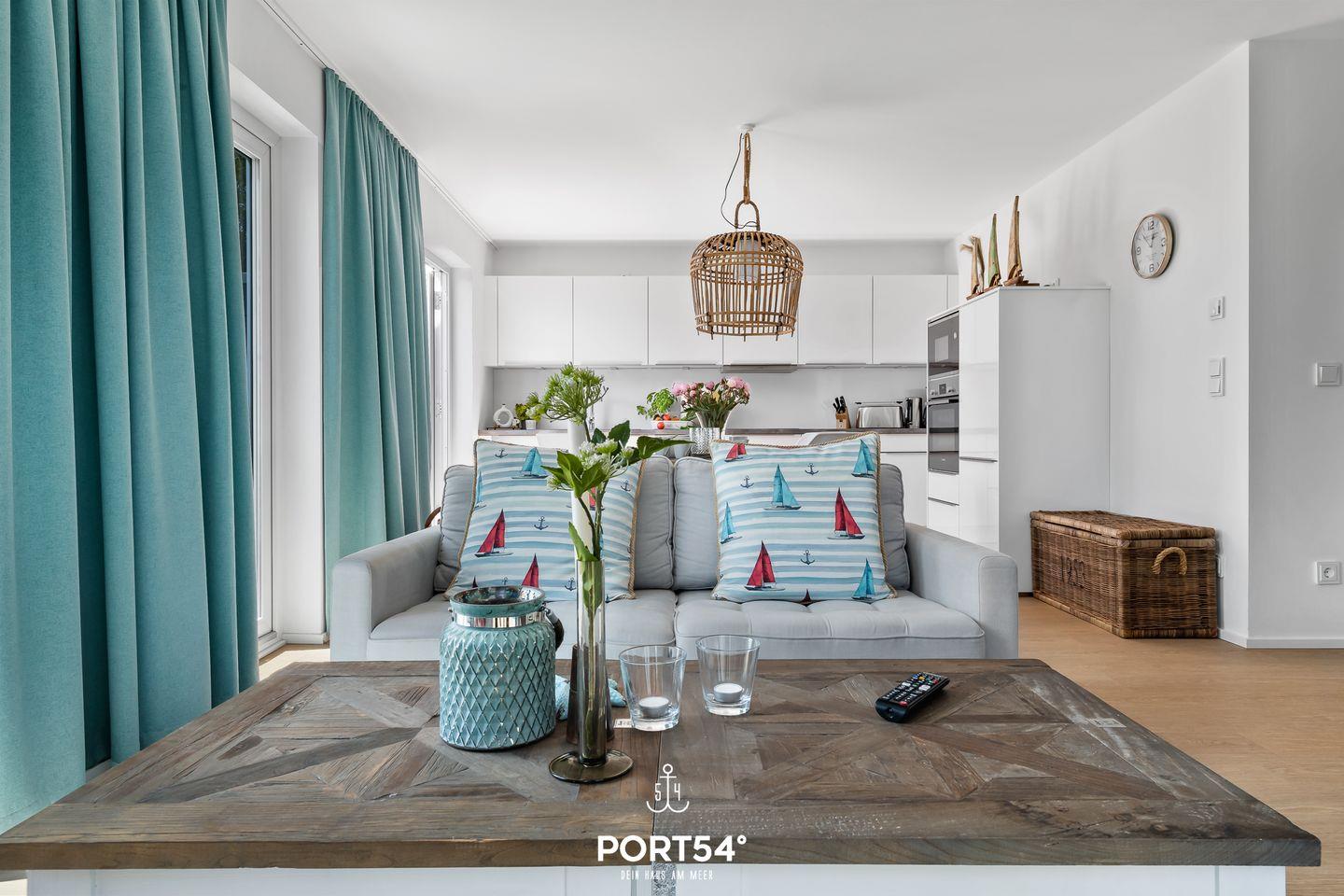 Die Wohnung „Kajüte 34“ bietet Dir auf knapp 84 m² ein gemütliches Ambiente für bis zu 4 Personen.