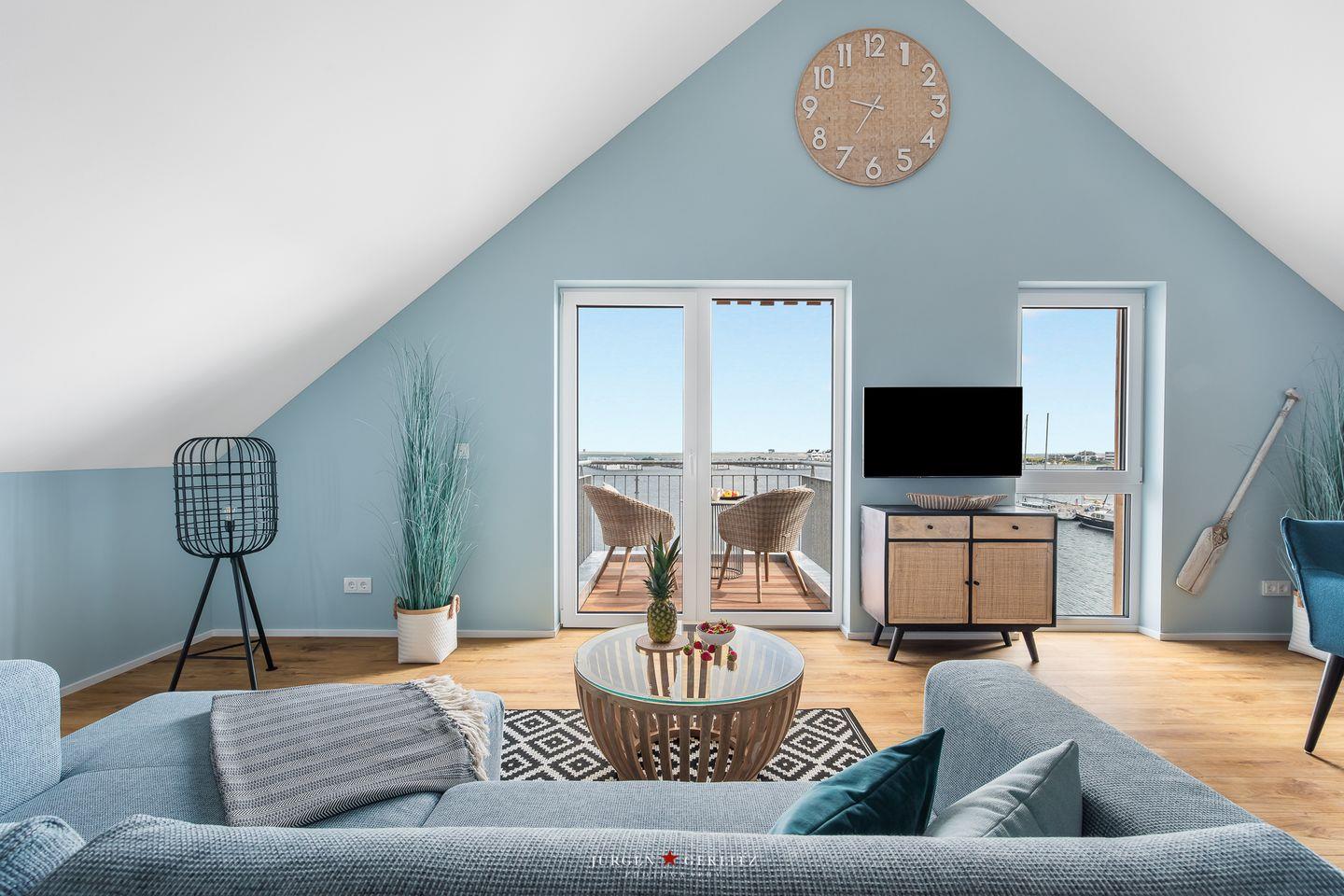 Genieße, in der exklusiven Ferienwohnung „Aloha Lounge“, einen unvergesslichen 180-Grad Panorama-Blick über das gesamte Hafenbecken von Olpenitz, den Yachthafen von Maasholm, die ein- und ausfahrenden Schiffe auf der Schlei und die Lotseninsel bis nach Dänemark!