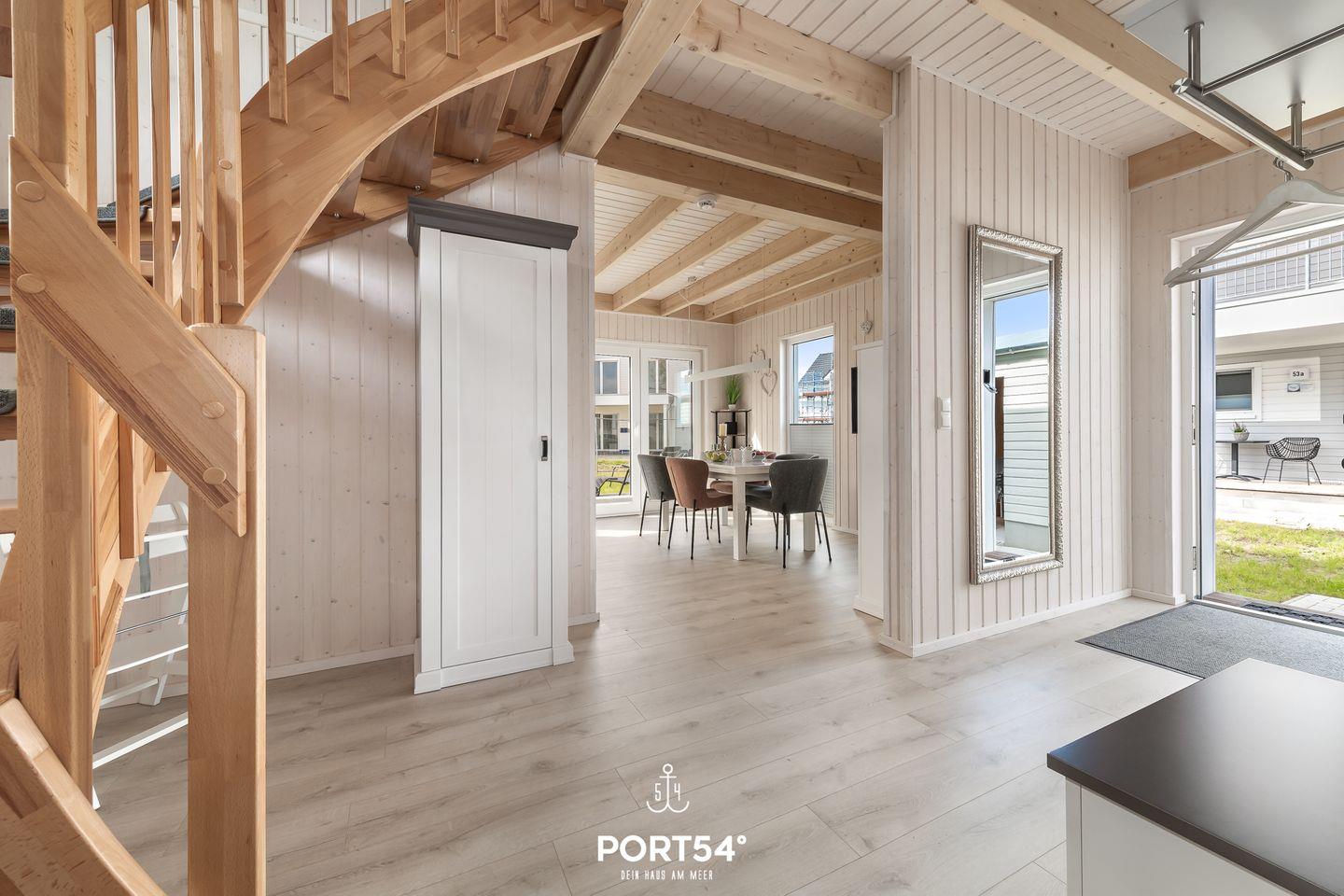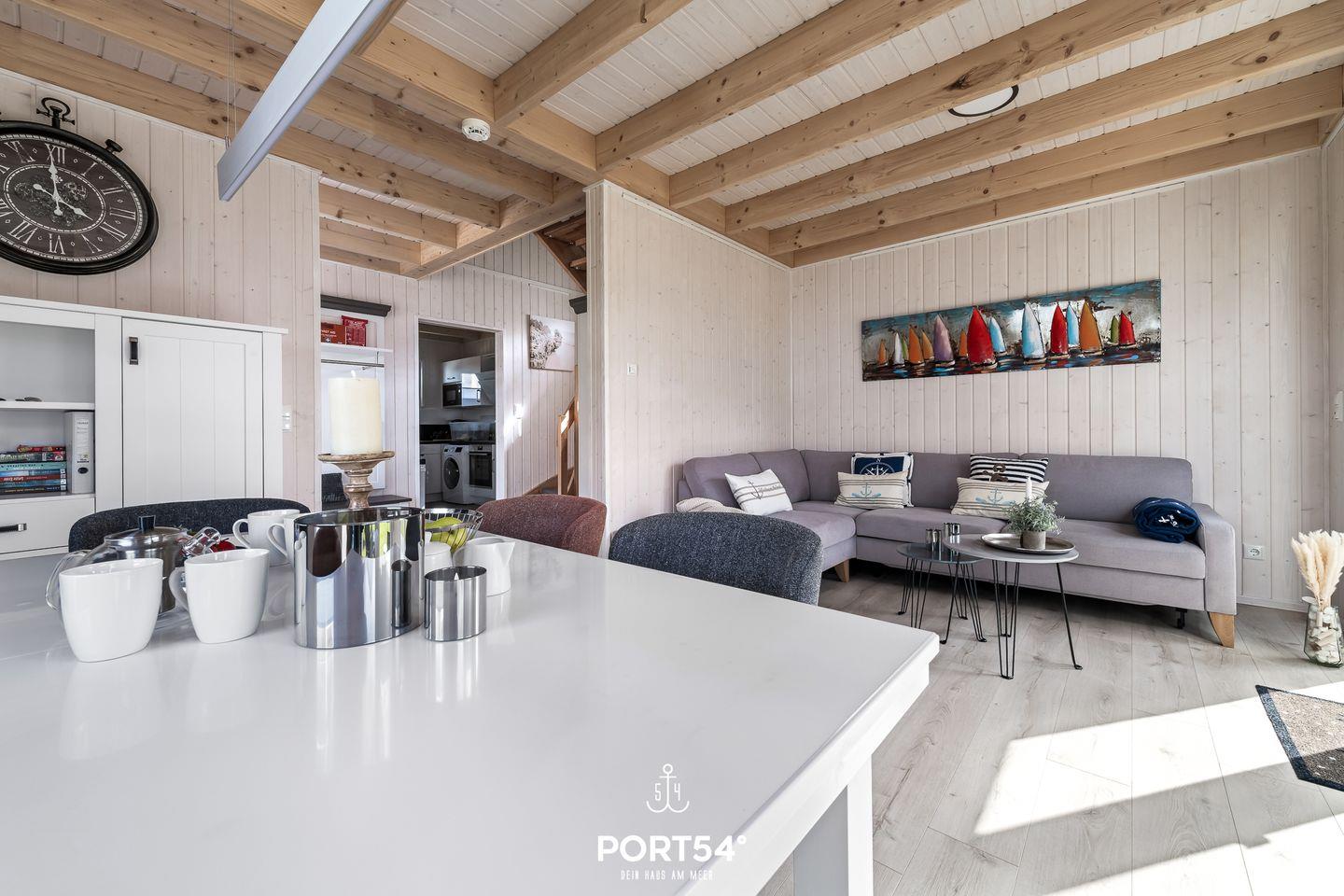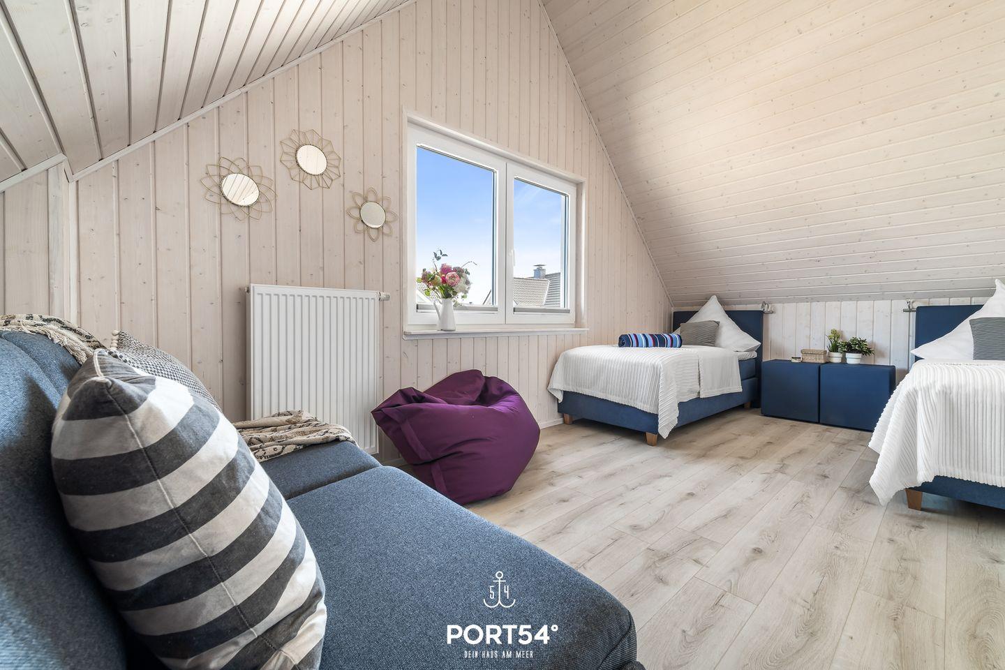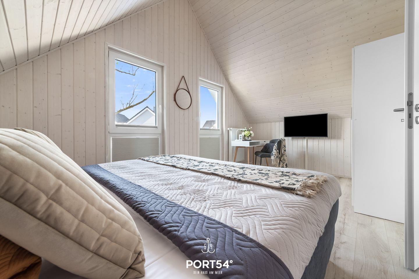 Willkommen in der "Marina Bay 54" in Olpenitz! Auf ca. 85m² bietet das Ferienhaus alles für einen erholsamen Urlaub an der Ostsee! Lassen Sie Ihre Urlaubstage auf dem Sofa ausklingen und zaubern Sie leckere Gerichte in der Küche. Für unsere kleinen Gäste stehen ein Hochstuhl und ein Kinderreisebett bereit. Das eine der beiden Schlafzimmer im 1. Obergeschoss bietet ein gemütliches Doppelbett (180x200cm), einen Schreibtisch und einen Flachbild-TV (mit Magenta TV). In dem anderen Schlafzimmer finden Sie zwei Einzelbetten (je 90x200cm), sowie eine Schlafcouch (140x200cm) vor. Für erholsame Nächte sind beide Schlafzimmer mit Insektenschutzgittern und Verdunkelungsmöglichkeiten ausgestattet. Das eine der beiden Badezimmer befindet sich im Erdgeschoss und verfügt über einen Handtuchtrockner, eine Dusche und das Highlight: eine Infrarotsauna! Wellness pur! Nach langen Strandspaziergängen können Sie sich hier wieder aufwärmen und entspannen. Das zweite Badezimmer im 1. Obergeschoss bietet einen Handtuchtrockner, einen Föhn und eine Badewanne. Vom Wohnzimmer aus gelangen Sie auf die Terrasse, wo Sie Ihren Morgenkaffee genießen und an lauen Abenden mit der ganzen Familie grillen können. An kalten Tagen lädt der Kamin zum aufwärmen ein und die Nintendo Switch verspricht Spielspaß für die ganze Familie! Die Liege und die Stuhlliege laden zum Lesen in der Sonne ein. Vor dem Haus ist ein Stellplatz vorhanden.