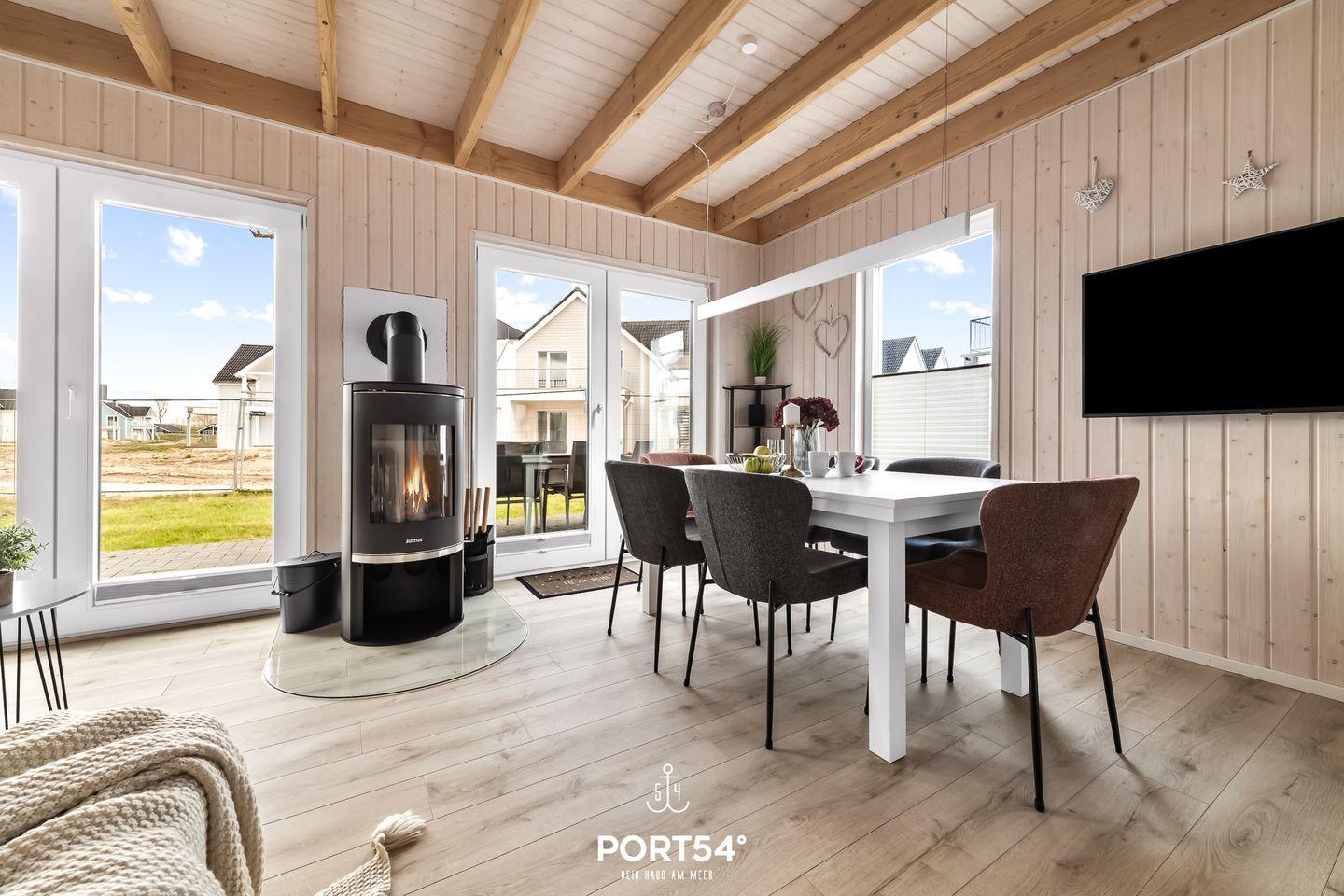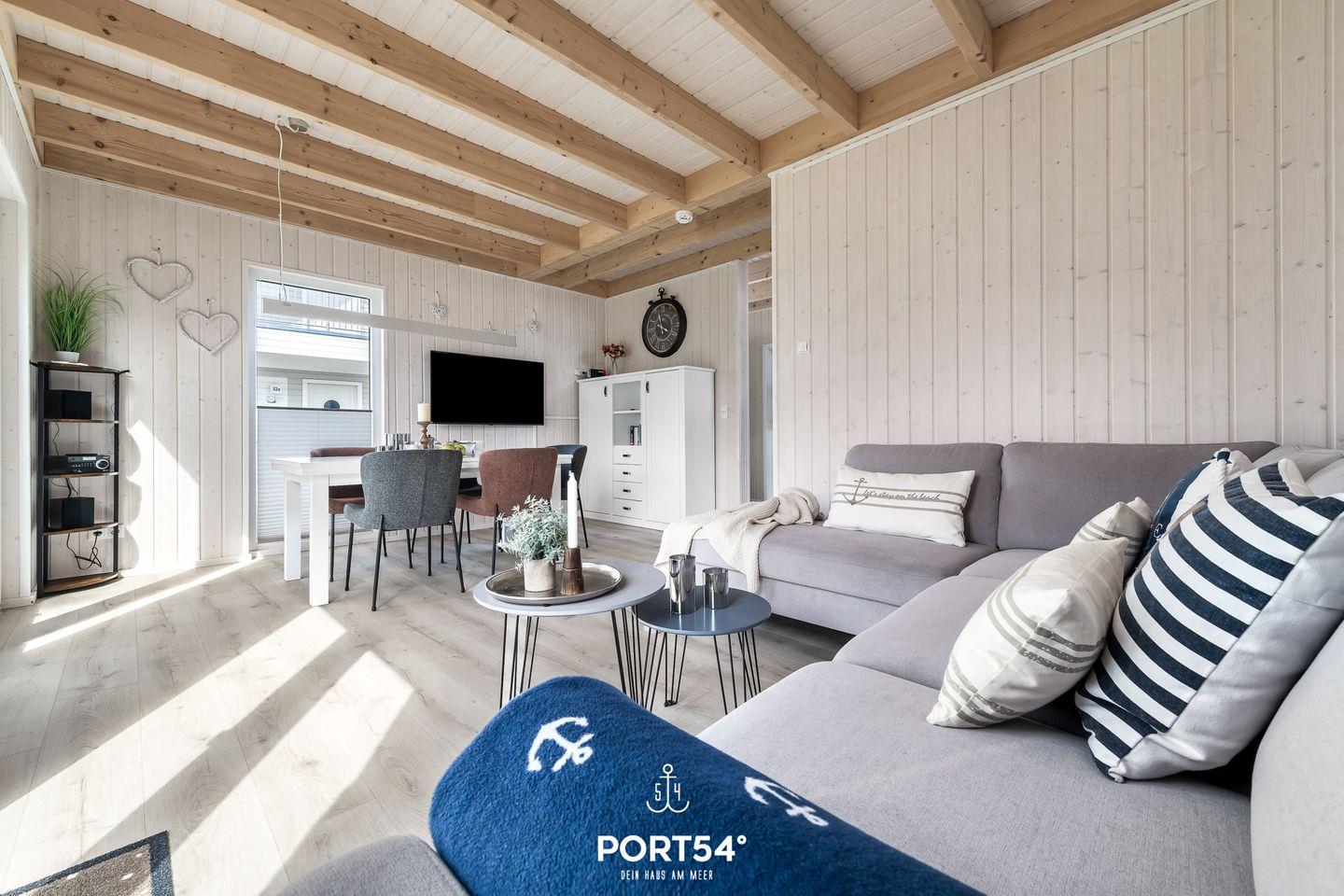 Dieses Ferienhaus mit 85m² bietet Platz bis 6 Personen & hat eine perfekt ausgestattete Küche, einen Kamin & eine große Terrasse. Es gibt 2 Schlafzimmer, eines mit einem Doppelbett & das andere verfügt über 2 Einzelbetten, sowie ein Schlafsofa. Ein Bad ist mit ebenerdigen Dusche & einer Infrarot-Sauna ausgestattet, das zweite mit einer Badewanne. Bitte beachten Sie, dass sich das OstseeResort Olpenitz derzeit noch im Aufbau befindet und es zu Bautätigkeiten kommen kann.