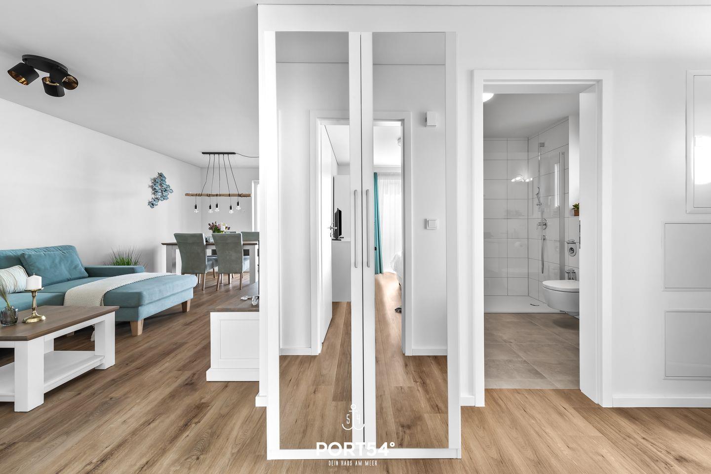 Die Wohnung "Selkie" bietet einen offenen Wohn- und Essbereich mit Kamin & angrenzender voll ausgestatteter Küche. Von hier aus gelangen Sie auf die möblierte Terrasse. Die 2 Schlafzimmer verfügen jeweils über ein Doppelbett. Im Bad erwartet Sie eine Infrarot-Sauna. Es gibt 2 PKW-Stellplätze und ein abschließbarer Fahrradschuppen. Bitte beachten Sie, dass der Aufbau des Ostsee Resort Olpenitz noch nicht abgeschlossen ist und es auch in der Nähe Ihrer Unterkunft zu Bautätigkeiten kommen kann.