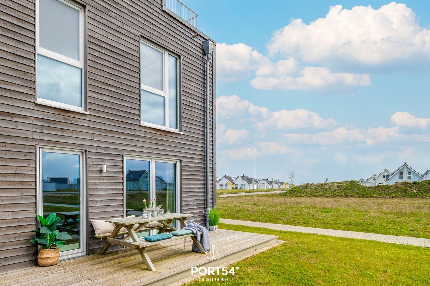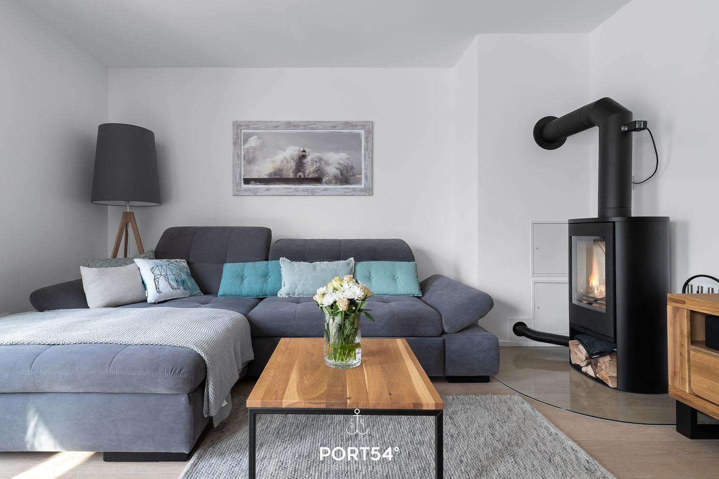 Exklusive Ferienwohnung am Hafeneck im Ostsee Resort Olpenitz mit Meerblick, Terrasse, Kamin und Infrarot-Sauna.