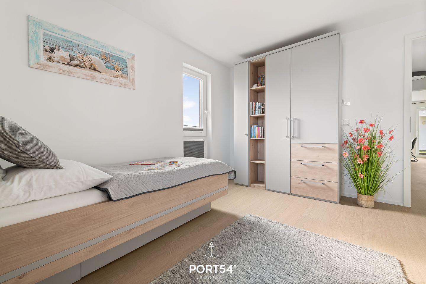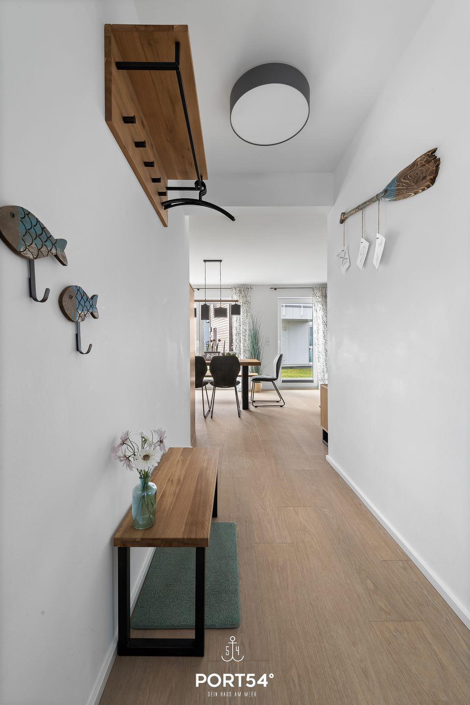 Die Ferienwohnung "am Hafeneck" befindet sich im neuerbauten OstseeResort Olpenitz. Herzlich willkommen in der exklusiven Ferienwohnung "Am Hafeneck" – einem 76m² großen Paradies mit atemberaubendem Wasserblick im Ostsee Resort Olpenitz! Der Wohnbereich der Wohnung strahlt eine behagliche Atmosphäre aus, besonders in der kalten Jahreszeit, wenn Sie es sich vor dem knisternden Kamin gemütlich machen können. Das Schlafsofa bietet zudem Platz für zwei weitere Personen, sodass gemeinsame Stunden noch gemütlicher werden. Von hier aus führt der Weg direkt auf die großzügige Terrasse, die mit bequemen Sitzgelegenheiten lockt – der ideale Ort für ein ausgiebiges Frühstück oder um die farbenprächtigen Sonnenaufgänge über dem Meer zu bestaunen. Die moderne Küche ist vollausgestattet und lädt zu gemeinsamen Kochabenden ein. Die Ferienwohnung bietet zwei Schlafzimmer – eins mit einem gemütlichen Doppelbett und das andere mit zwei Einzelbetten. Nach einem langen Spaziergang am Strand können Sie in der hauseigenen Infrarot-Sauna die wohlverdiente Erholung finden und Ihre Seele baumeln lassen. Die großzügige Terrasse, möbliert und mit einem wunderschönen Wasserblick gesegnet, wird schnell zu Ihrem Lieblingsplatz. Lehnen Sie sich zurück und genießen Sie hier die strahlenden Sonnenstunden, umgeben von der frischen Ostseeluft. Ein eigener PKW-Stellplatz steht Ihnen zur Verfügung, ebenso wie eine praktische Wallbox zum bequemen Laden Ihres Elektroautos.