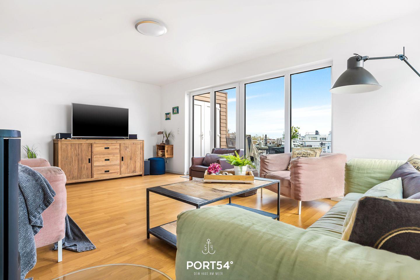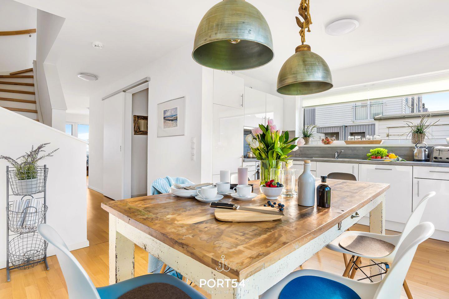 Der Wohn- & Essbereich bietet einen atemberaubenden Ausblick. Die Küche ist voll ausgestattet. Highlight des Hauses ist die finnische Sauna. Nach dem Saunagang können Sie auf einer der drei Terrassen für jede Tageszeit und Windrichtungen den Schlei- und Ostseeblick genießen.
