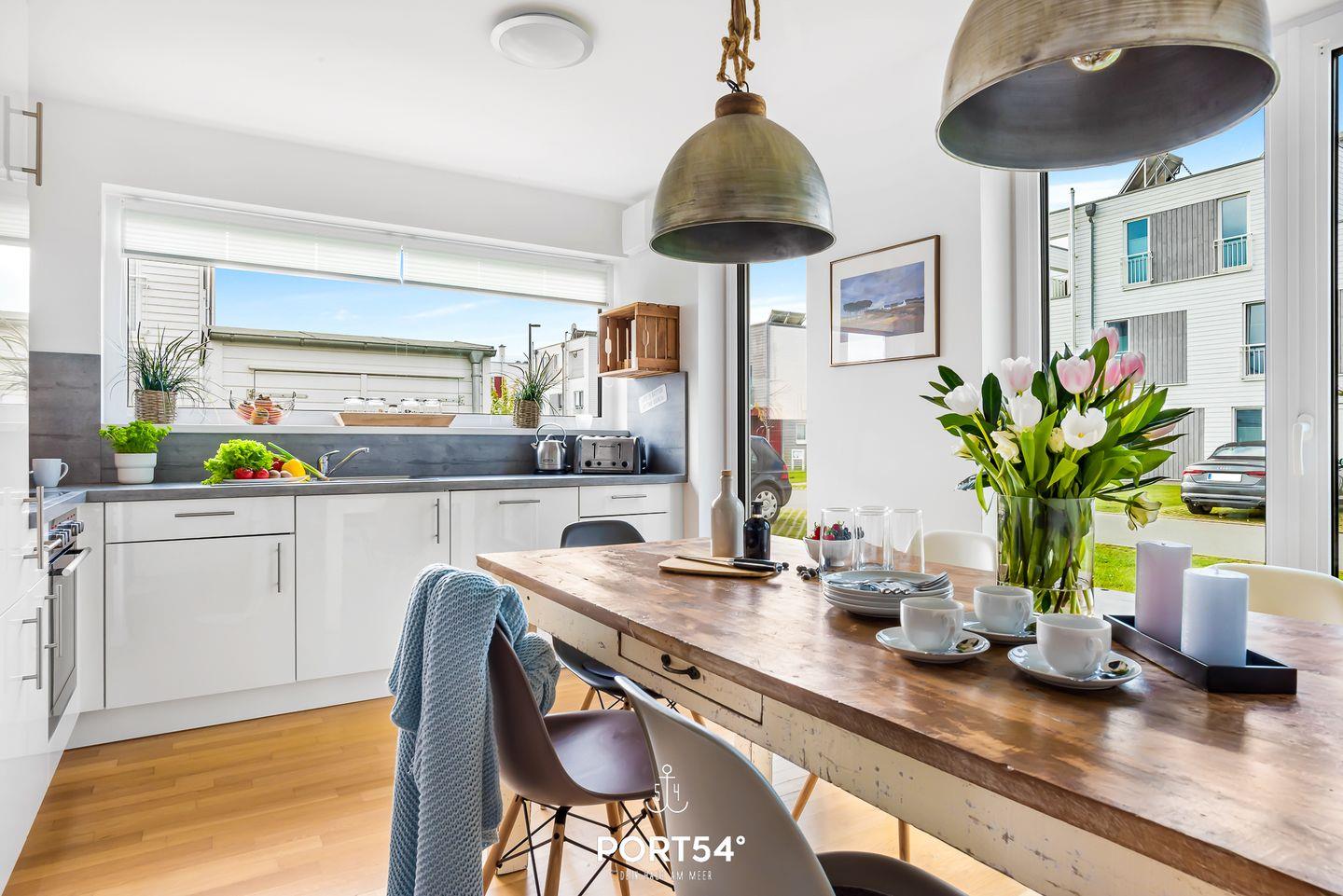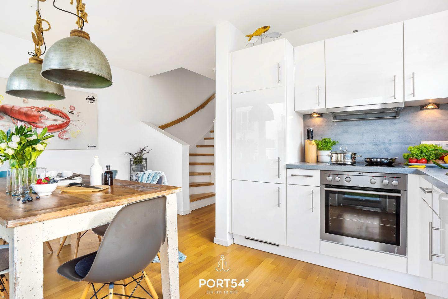 Die traumhafte Doppelhaushälfte "Harbour House" steht als letztes Haus am Schleiufer und bietet allen Luxus, den man sich wünschen kann! Nach einer Komplettsanierung- und renovierung bietet das Haus eine zentrale Lüftungsanlage in allen Zimmern, und größten Komfort für Allergiker. Nach Betreten befinden Sie sich im lichtdurchfluteten, dezent und zeitlos gestaltetem Wohn- & Essbereich. Dieser bietet dank seiner bodentiefen Panoramafenster einen atemberaubenden Ausblick über die Schleimündung und die Ostsee. Auf der anderen Seite erstreckt sich ein wunderbares Hafenkino. Die vollausgestattete Küche hält alles bereit für einen ausgiebigen Kochabend. Ein weiteres Highlight des Hauses ist die finnische Sauna - lassen Sie doch den Abend bei einem Wellnessprogramm mit Meerblick ausklingen. Nach dem Saunagang können Sie auf einer der drei Bangkirai-Terrassen für jede Tageszeit und Windrichtungen das Schleispektakel und den Ostseeblick genießen. Unser Lieblingsplatz im Winter ist eingekuschelt vor dem Kamin oder in der finnischen Sauna mit Ausblick aufs Wasser. Im Sommer empfehlen wir einen Grillabend auf der Dachterrasse bei einem Glas Wein. Es befindet sich Platz für 2 Fahrzeuge vor der Unterkunft, sowie ein abschließbarer Fahrradschuppen.