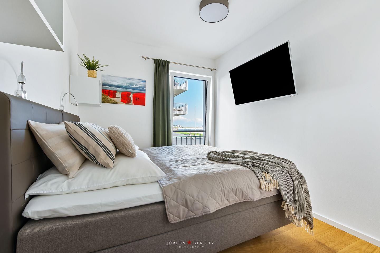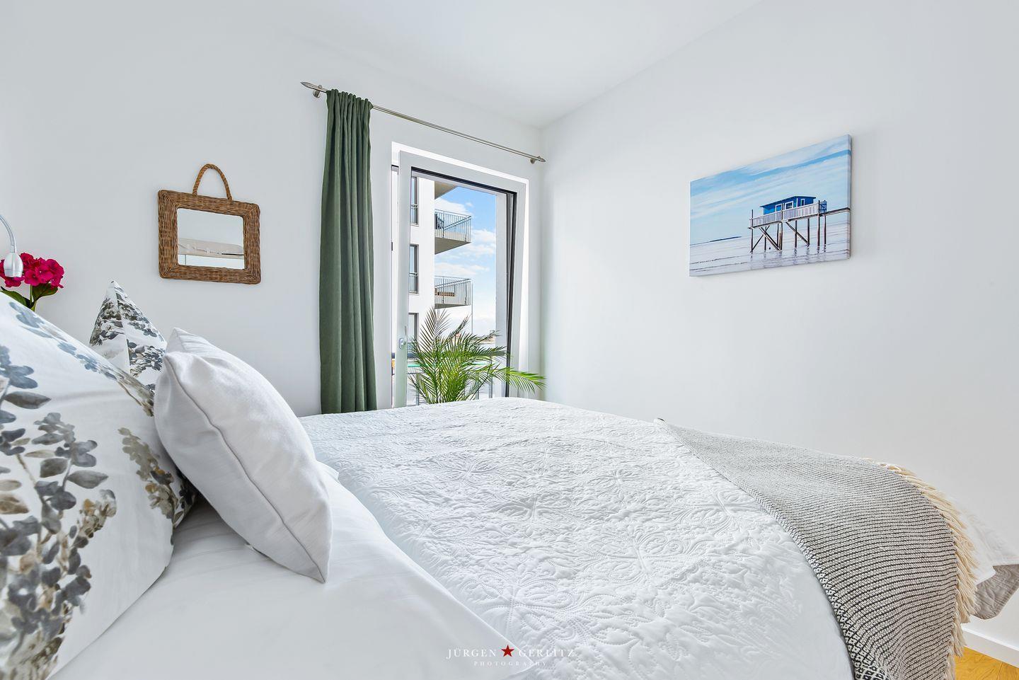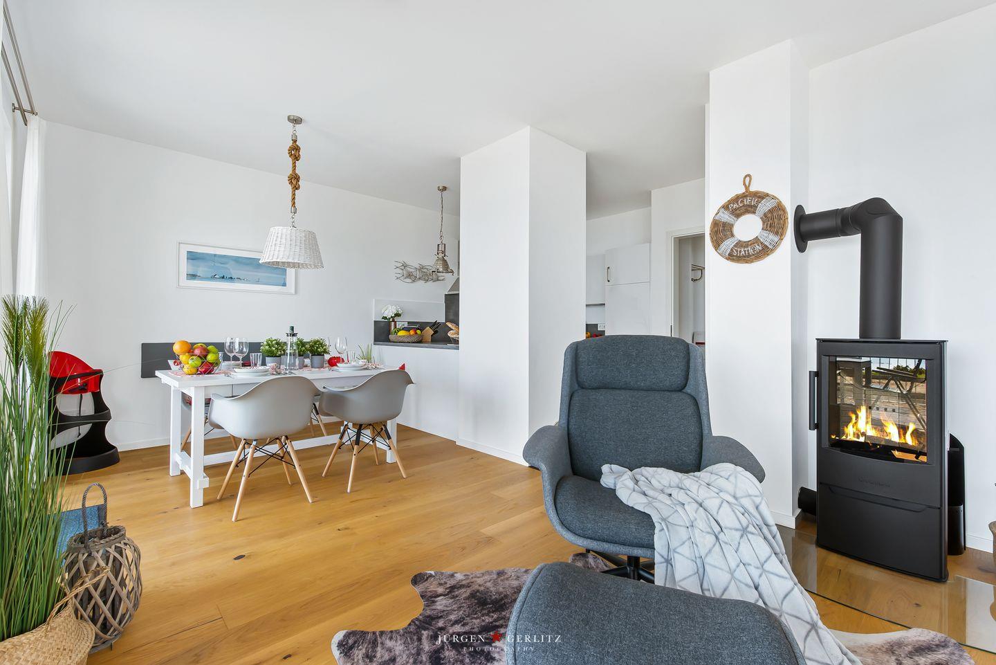 Unmittelbar an der Ostsee und am Weidefelder Sandstrand gelegen befindet sich dieses hochwertig ausgestattete Ferienapartment. Im "Himmel & Meer" ist Wohlfühlen garantiert! Genießen Sie den atemberaubenden Blick auf die Wasserkulisse von Schlei und Ostsee vom gesamten Wohnbereich, der großzügigen Terrasse und seitlich aus den Schlafzimmern. Vorbeifahrende Segelschiffe, Ostseebrise und Möwen vermitteln maritimes Flair und versprechen pure Entspannung. Mit bodentiefer Fensterfront gestaltet sich der großzügige Wohn- und Essbereich lichtdurchflutet und überzeugt mit einem traumhaften “Himmel & Meer” Weitblick ... was will man mehr? Das stilvolle Interieur und die hochwertige Ausstattung bieten jeglichen Urlaubskomfort. Die gemütliche Sitzlandschaft im Wohnbereich lädt zum Entspannen ein. Auch in der dunklen Jahreszeit, wenn die Ostsee vor der Fensterfront ihr Temperament zeigt, genießen Sie die wohlige Atmosphäre bei prasselndem Kaminfeuer. Die Ferienwohnung ist mit Parkettboden ausgestattet, verfügt über Fußbodenheizung in allen Bereichen und einen Kaminofen. Für das Entertainment sorgen zwei Smart TVs mit Home Entertainment Programm. Die zwei Schlafzimmer sind mit hochwertigen Boxspringbetten (1 Doppel-Boxspringbett und 2 Einzel-Boxspringbetten) ausgestattet. Die Einzelbetten lassen sich zu einem Doppelbett zusammenschieben. Mit den Verdunklungsgardinen können Sie im Urlaub ausgiebig ausschlafen.