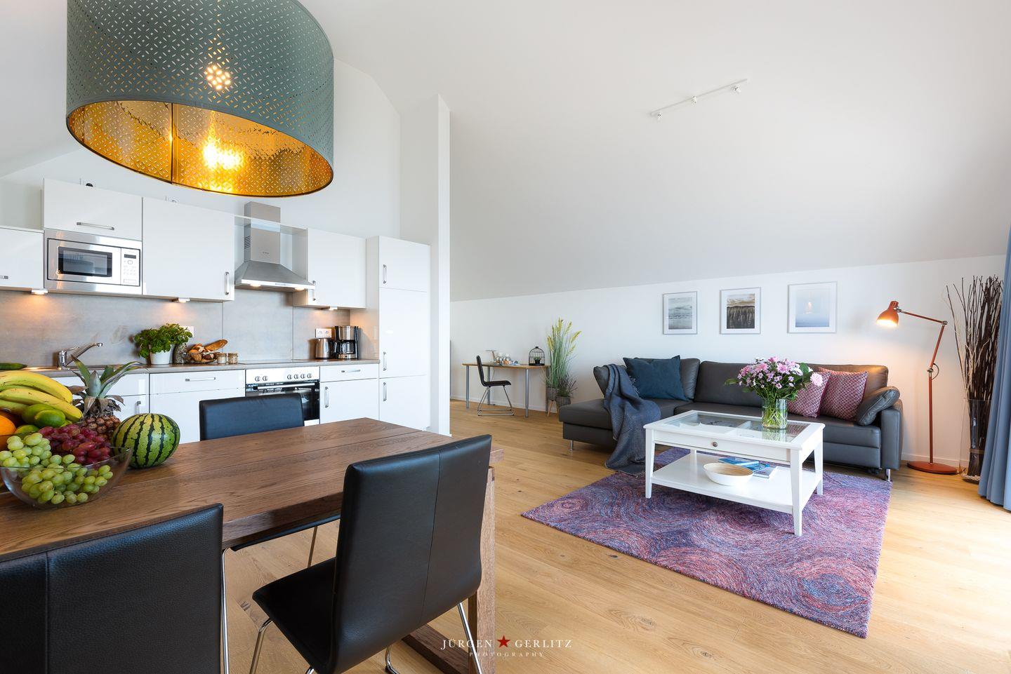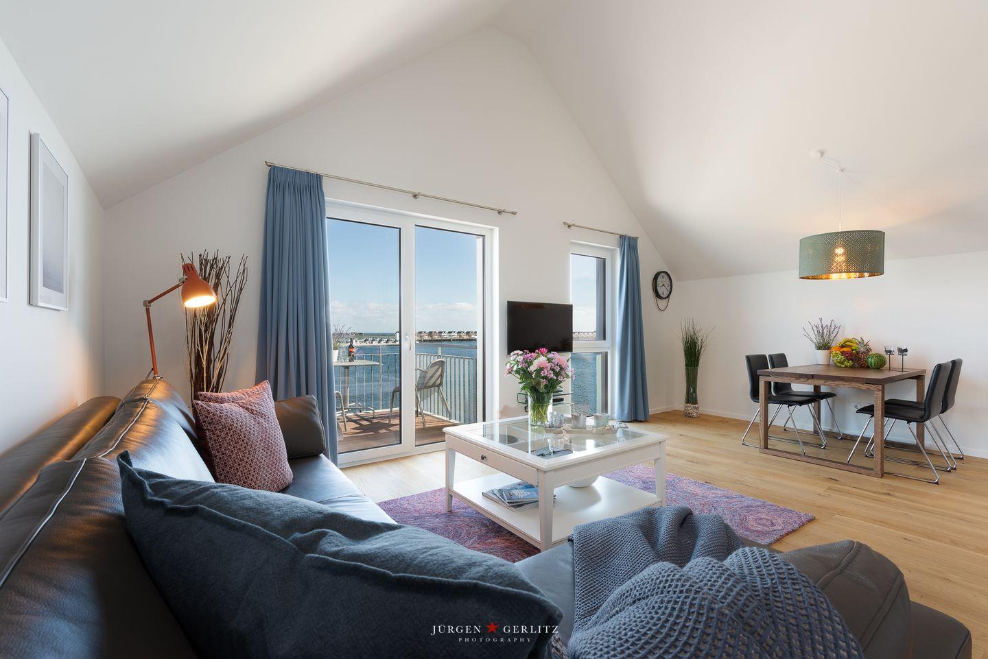 Diese exklusive Ferienwohnung „Mehrblick“ liegt nur wenige Meter vom Wasser entfernt. Mit knapp 66 m² bietet sie Dir ein Schlafzimmer mit Doppelbett, einen offenen Wohn-/Essbereich mit einer voll ausgestatteten Küche, einen TV sowie ein Schlafsofa. Das Duschbad ist hochwertig und modern ausgestattet. Das Highlight der Wohnung ist der schöne Balkon mit Wasserblick. Vor dem Haus steht Dir ein eigener, kostenfreier Parkplatz zur Verfügung.