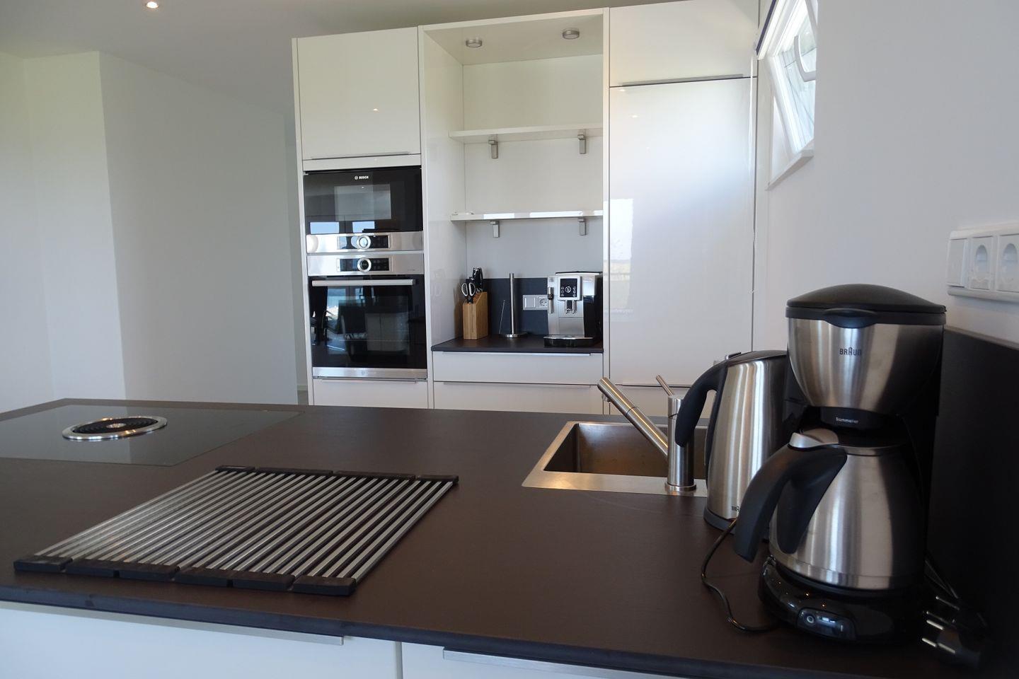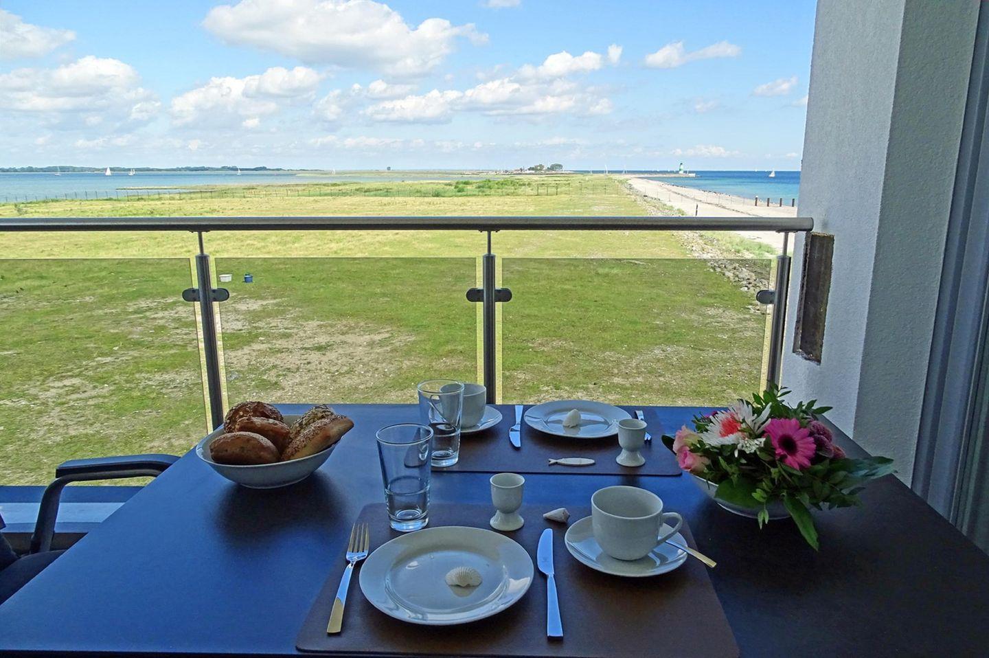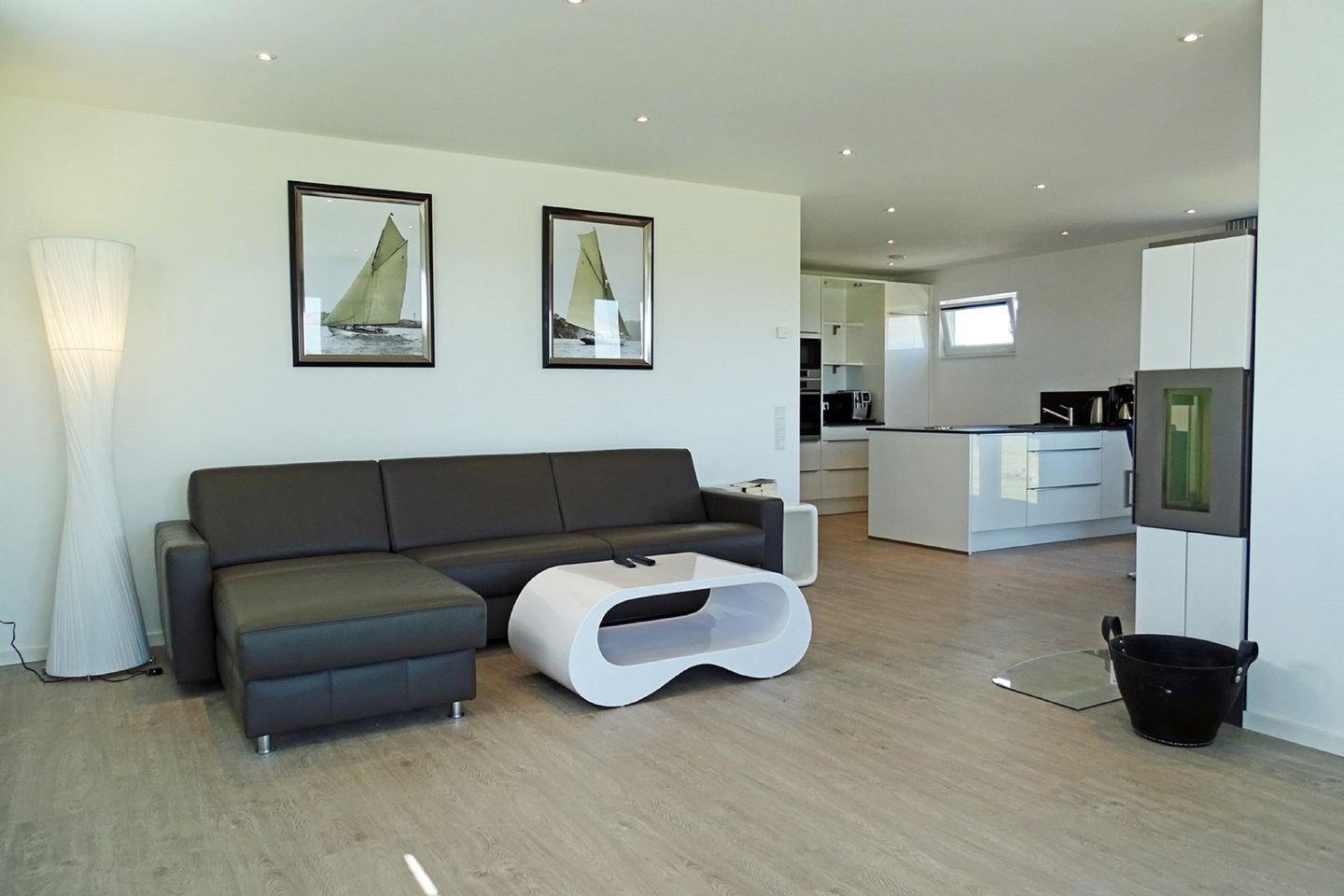 Willkommen in der "Brandung" in Olpenitz mit direktem Meerblick! Die luxuriöse Penthouse-Ferienwohnung bietet Platz für 4 Personen und verspricht einen erholsamen und entspannten Urlaub an der Ostsee! In dem Wohnbereich können Sie es sich vor dem Fernseher gemütlich machen. Von dort haben Sie Zugang zu den beiden Balkonen, die nach Nordosten und Südwesten ausgerichtet sind. Die Balkone laden zu traumhaften Sonnenstunden mit wunderschönem Ausblick auf die Ostsee und den Hafen ein. Bei "Schietwetter" können Sie es sich vor dem Kamin gemütlich machen und die Seele baumeln lassen. Die vollausgestattete Küche mit Kochinsel verspricht gesellige Kochabende mit der ganzen Familie. An lauen Sommerabenden kann auf den Balkonen dank des Weber Elektrogrills bei frischer Ostseeluft gegrillt werden. Die Ferienwohnung bietet ein komfortables Schlafzimmer mit einem Doppelbett. Für erholsame Urlaubsnächte gibt es außerdem Verdunkelungsmöglichkeiten und Insektenschutzgitter. Das Sofa im Wohnzimmer kann zu einer Schlafcouch (mit Matratze und Lattenrost) ausgezogen werden und bietet dann eine Liegefläche von 180x200cm. Im Badezimmer erwartet Sie unter anderem ein Handtuchtrockner, ein Föhn, eine ebenerdige Dusche, eine Badewanne und das absolute Highlight: eine finnische Sauna! Hier können Sie sich nach langen Spaziergängen aufwärmen und dem Alltagsstress entfliehen. In einem separaten Raum befindet sich die Toilette. Im Badezimmer gibt es einen Waschtrockner, sodass auch längeren Urlauben nichts mehr im Weg steht!