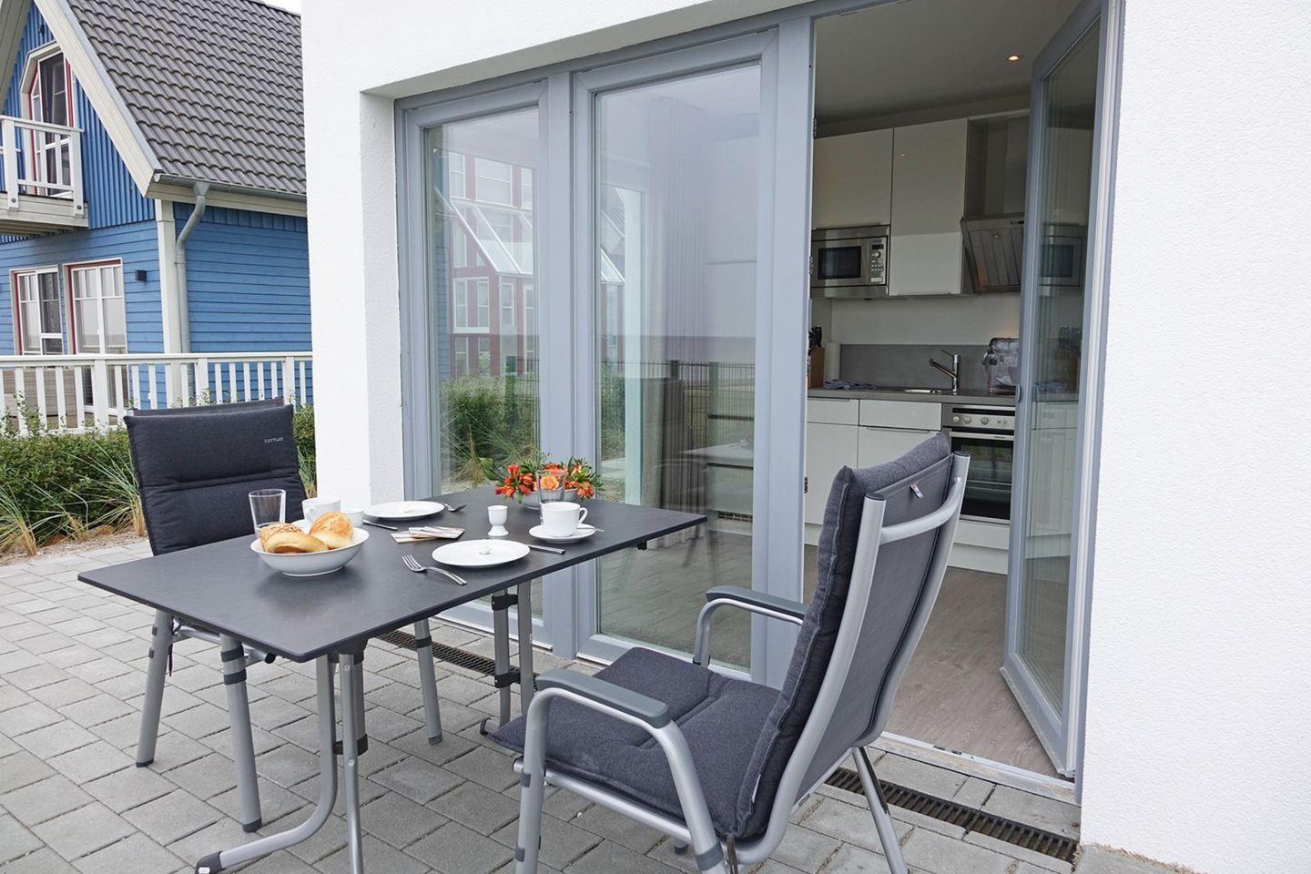 Luxuriöse Ferienwohnung Austernfischer direkt am Wasser mit Kamin, Terrasse und barrierefreiem Zugang in Olpenitz.