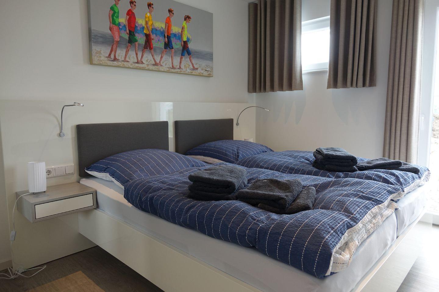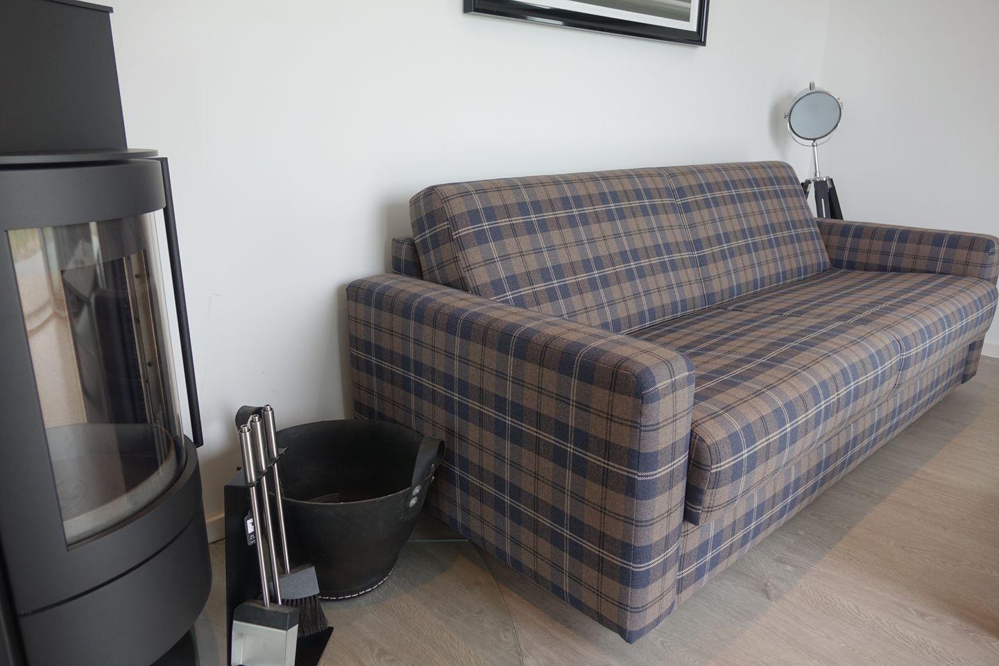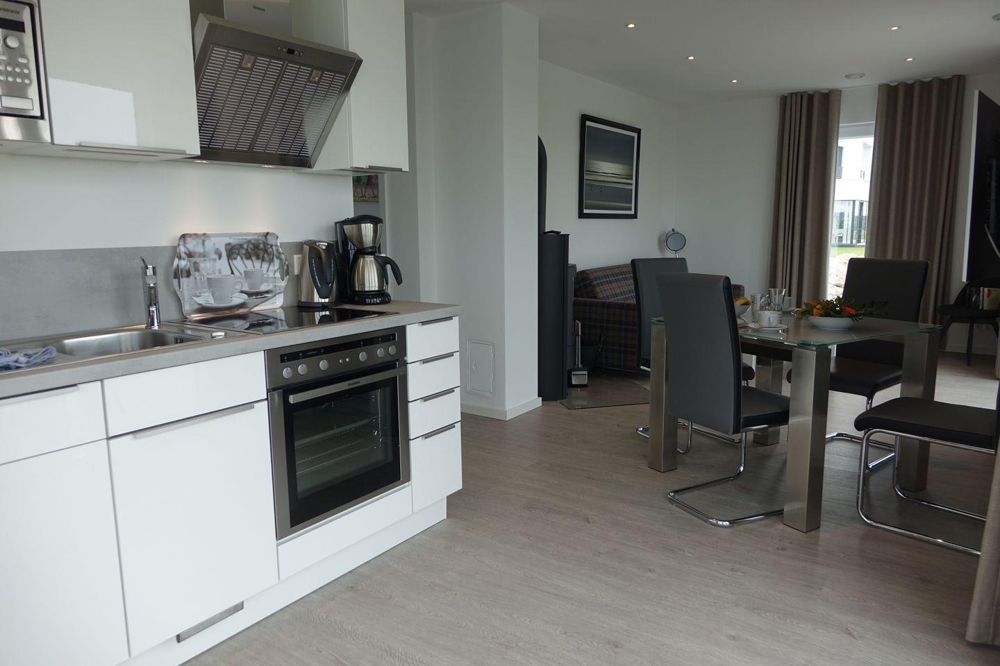 In dem Wohnbereich können Sie es sich vor dem Kamin gemütlich machen & in der vollausgestatteten Küche können leckere Gerichte zubereitet werden. An lauen Sommerabenden kann dank des Weber Elektrogrills gegrillt werden. Die Ferienwohnung bietet ein komfortables Schlafzimmer mit einem Doppelbett. Im Badezimmer erwartet Sie ein Handtuchtrockner, ein Föhn und eine ebenerdige Dusche. Ein eigener Stellplatz mit E-Ladestation und ein abschließbarer Fahrradschuppen befinden sich vor dem Haus.