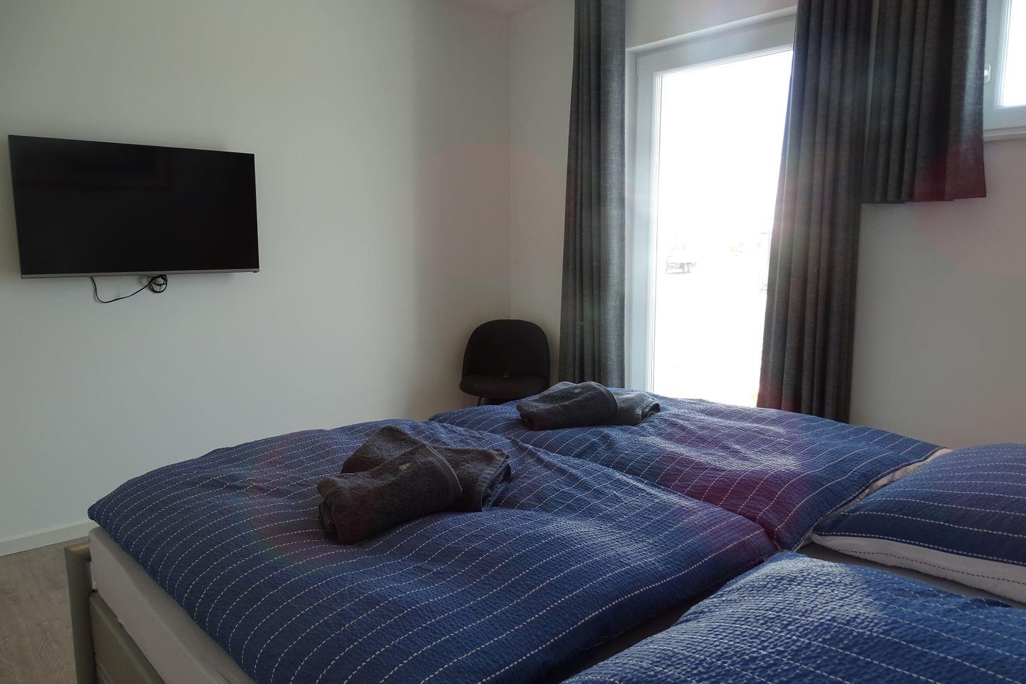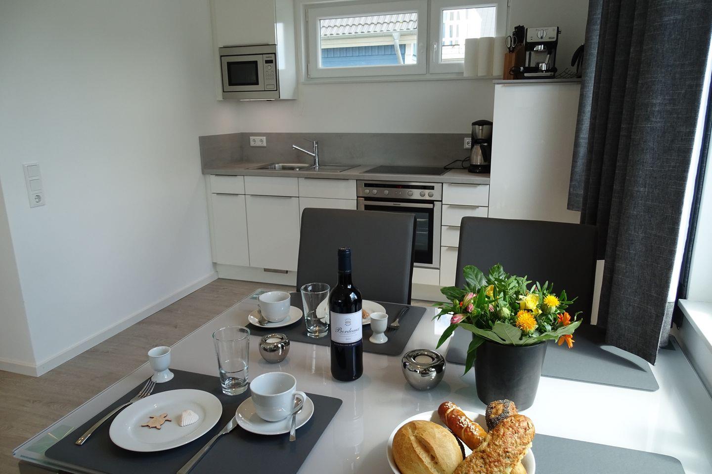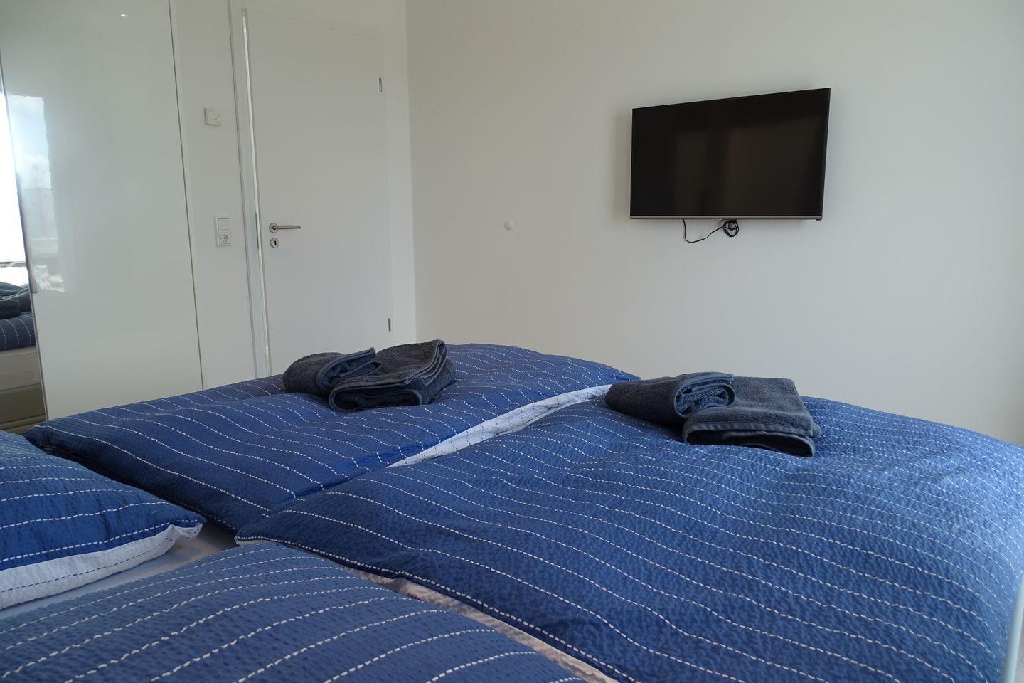In dem Wohnbereich können Sie es sich vor dem Fernseher gemütlich machen. Die Küche voll ausgestattet. Die Ferienwohnung bietet ein komfortables Schlafzimmer mit einem Doppelbett. Das Sofa im Wohnbereich kann zu einem Schlafsofa ausgezogen werden und bietet Platz für eine dritte Person. Im Badezimmer erwartet Sie eine Dusche und eine finnische Sauna! Ein eigener Stellplatz mit E-Ladestation und ein abschließbarer Fahrradschuppen befinden sich vor dem Haus.
