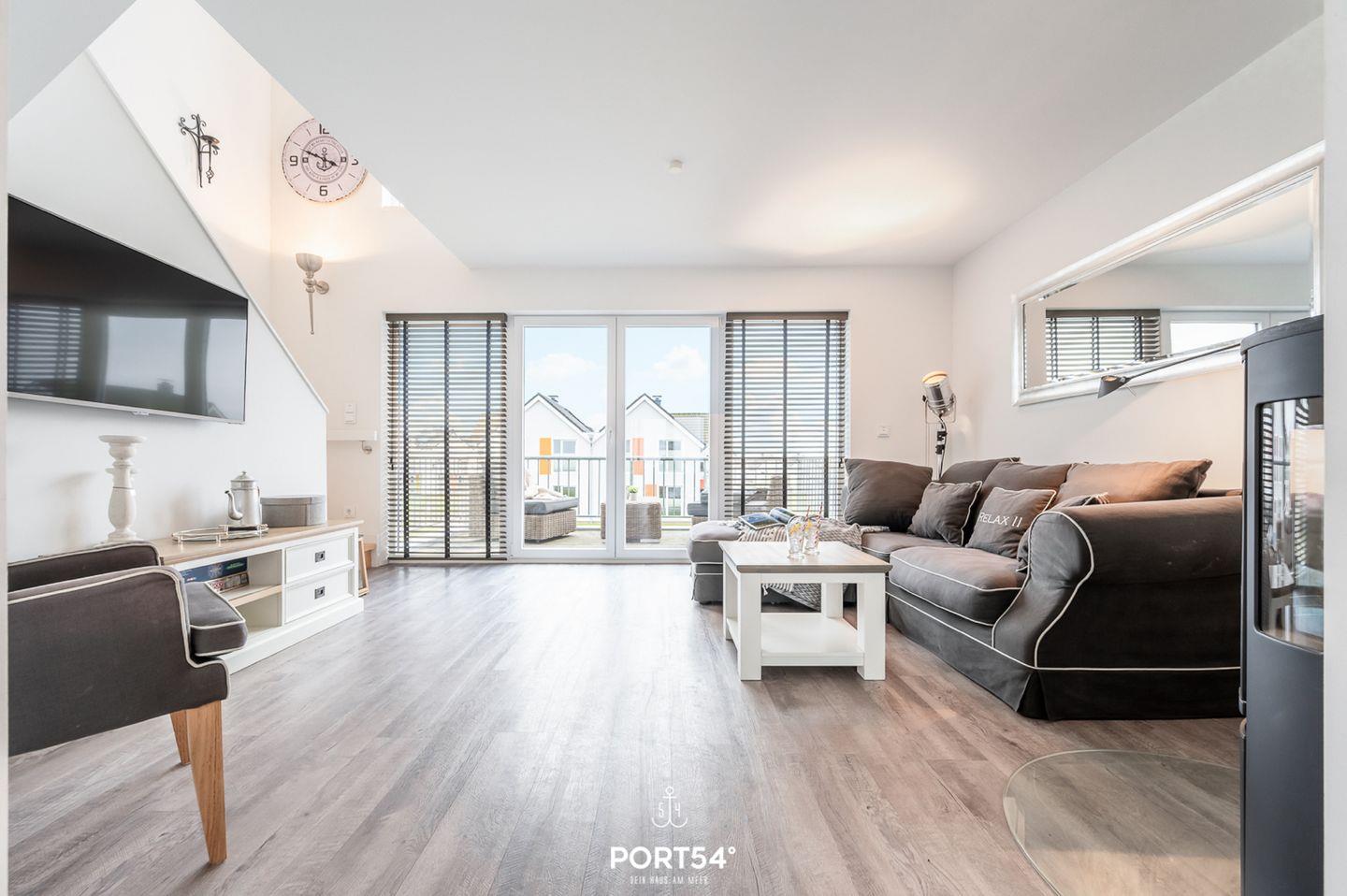 Moderne Ferienwohnung "Relax" in Olpenitz mit Sauna, Kamin, Balkon und direktem Wasserblick für entspannte Urlaubstage.