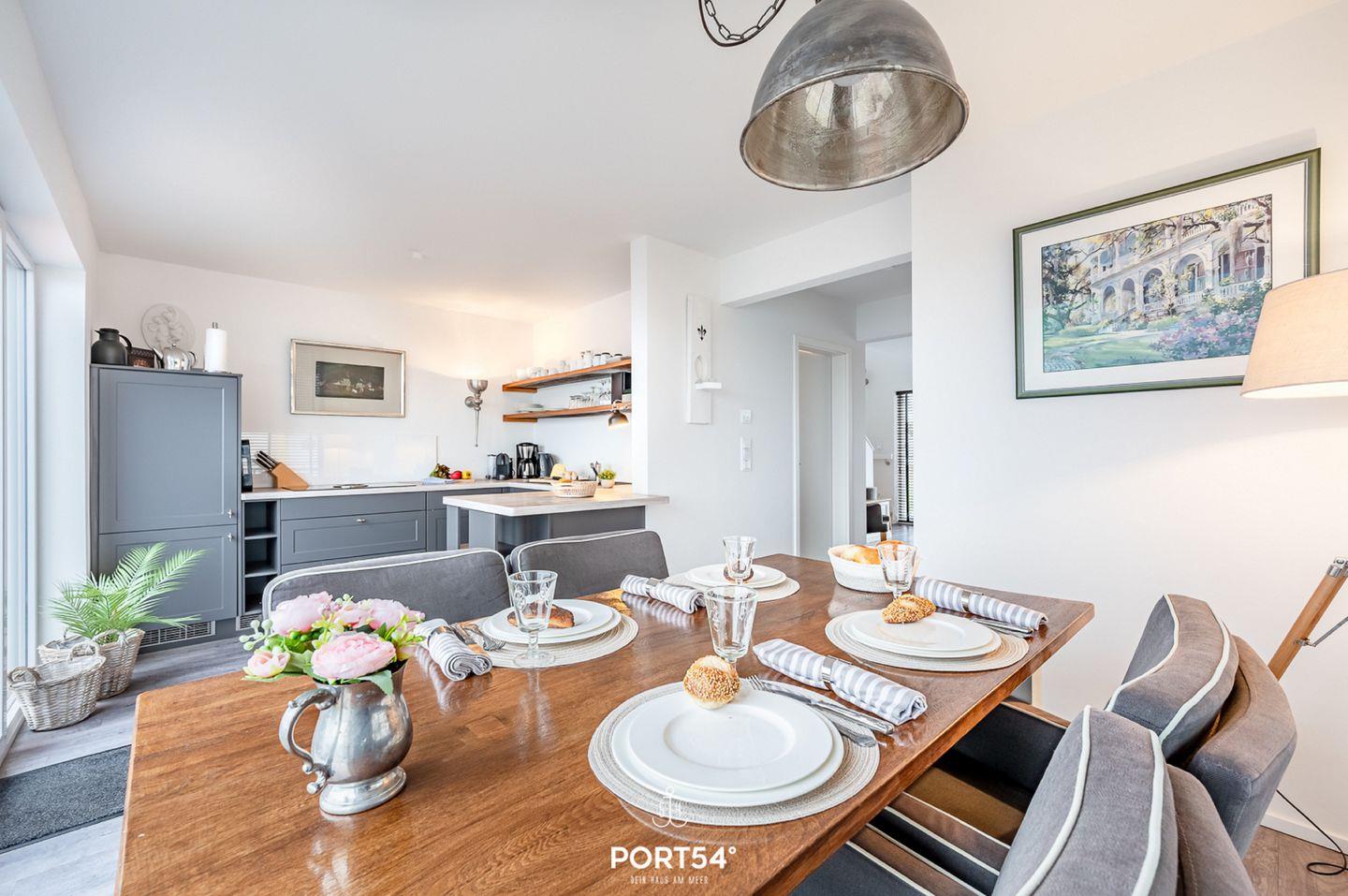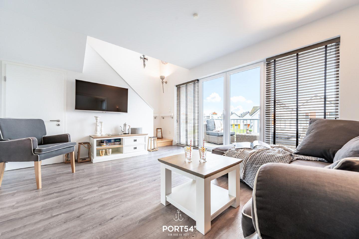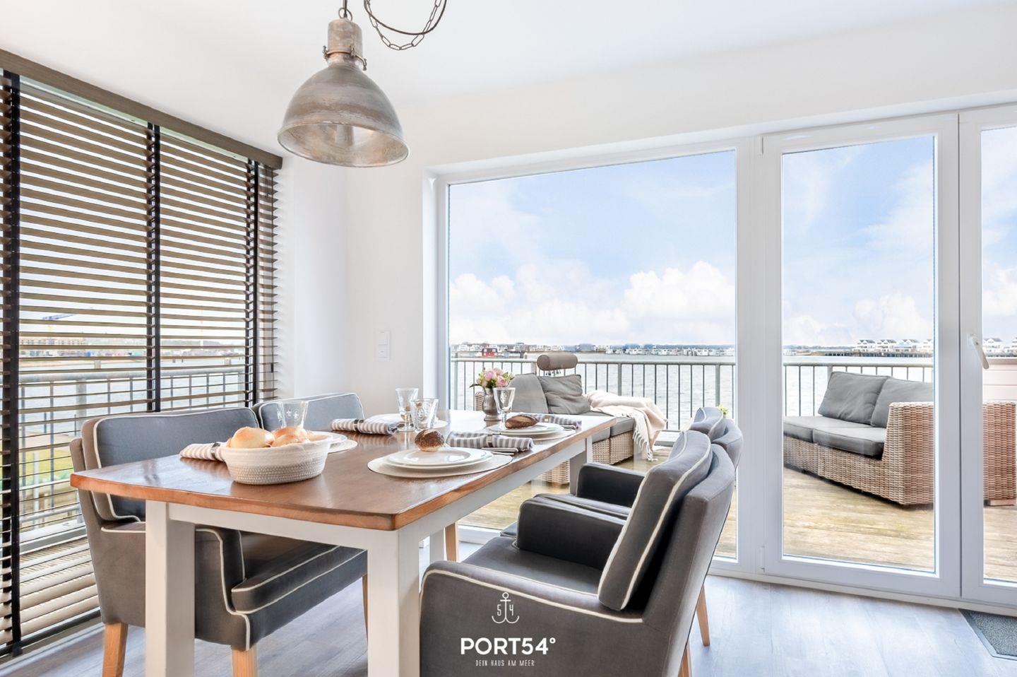 Der großzügige Balkon in Richtung Wasserseite lädt Dich zu sonnenverwöhnten Stunden ein und bietet Dir einen malerischen Blick auf den Hafen von Olpenitz. Hier kannst Du Deine Urlaubstage ausklingen lassen, die Meeresbrise genießen und spektakuläre Sonnenuntergänge erleben.