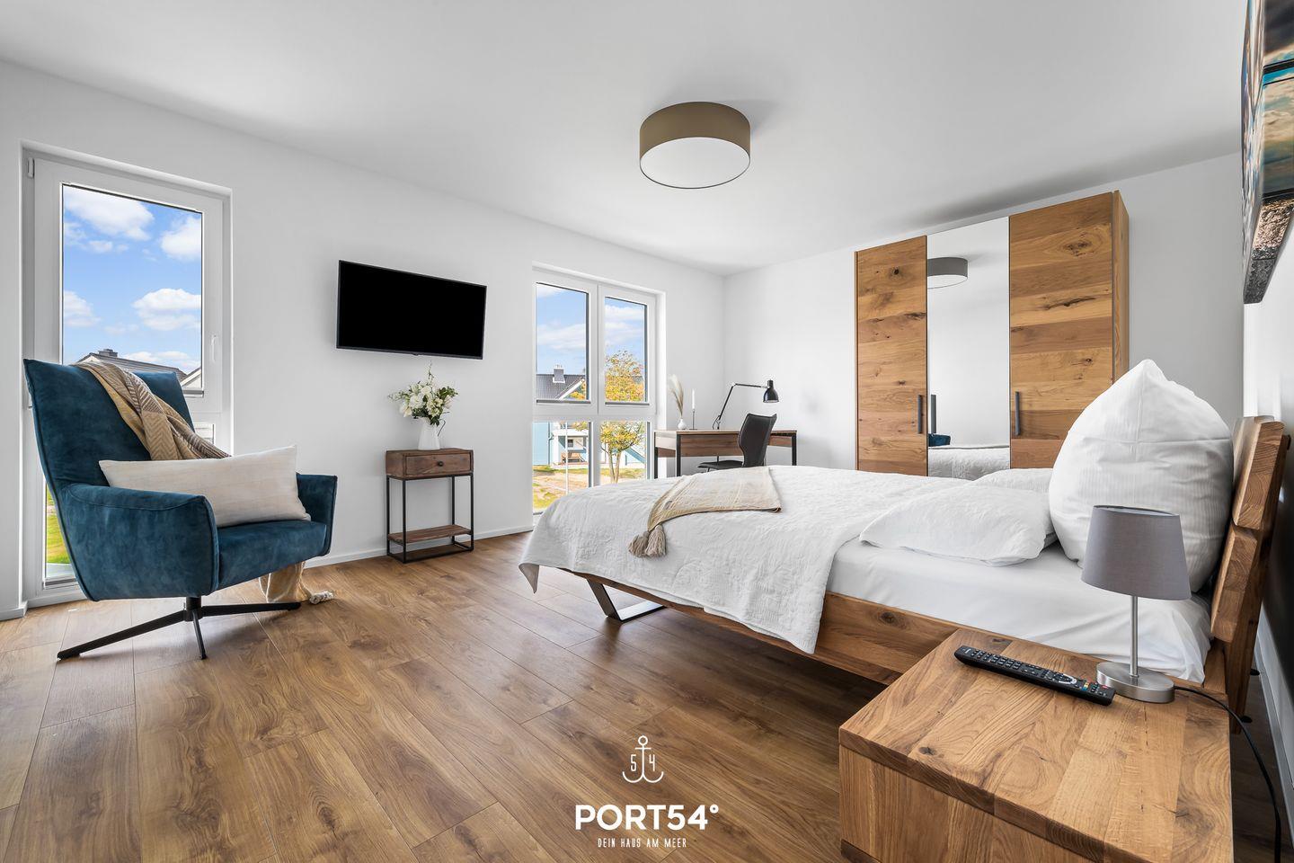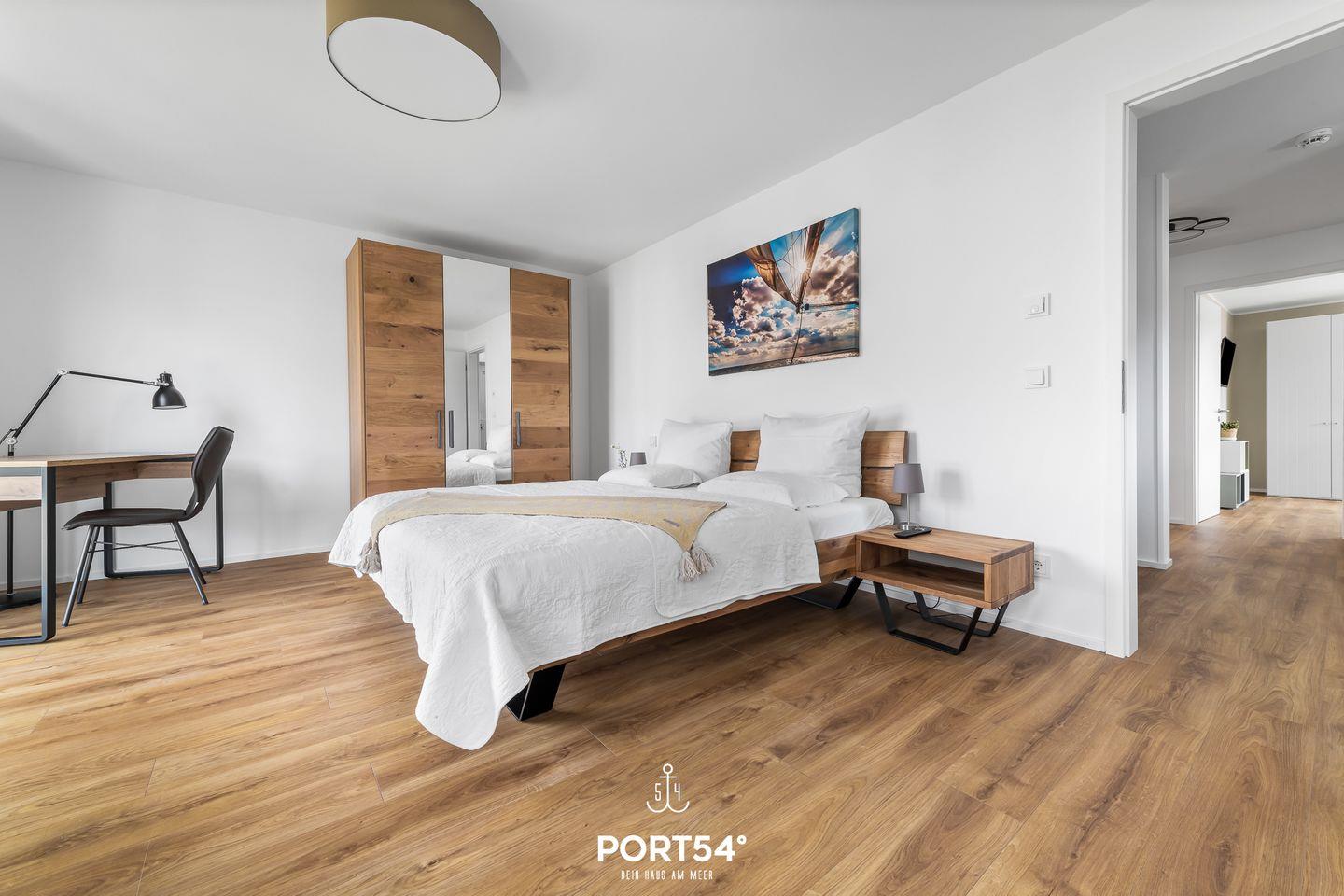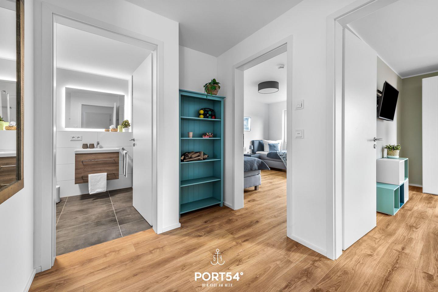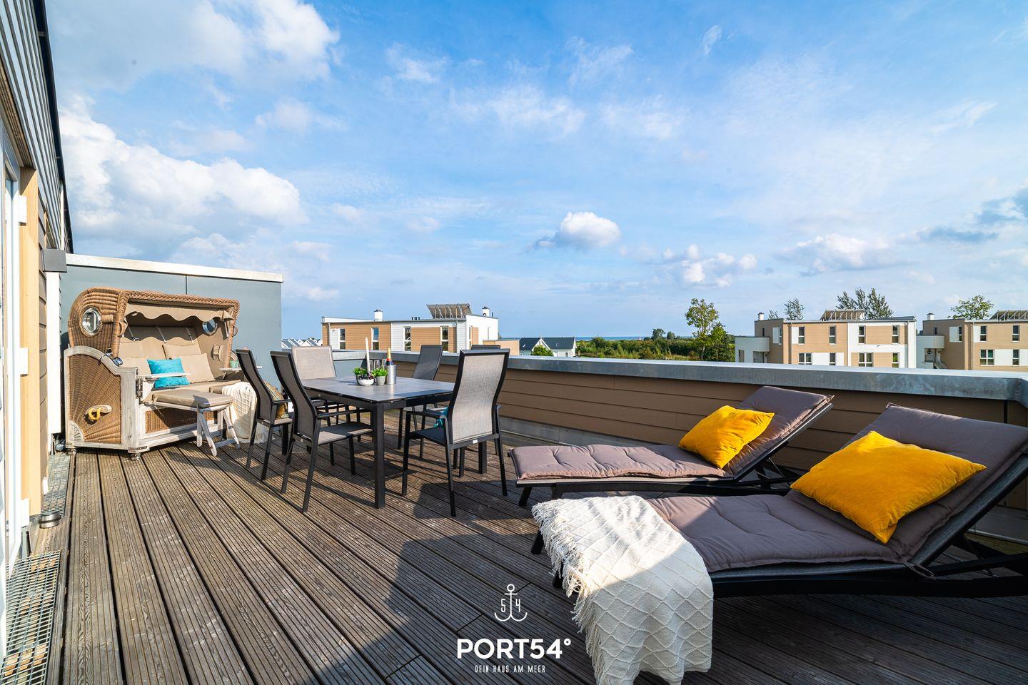 Herzlich Willkommen in der Ferienwohnung "Janus' Shelter" in Olpenitz! Die großzügige und hochwertig ausgestattete Maisonette-Ferienwohnung im 1. und 2. Obergeschoss bietet Ihnen einen unvergesslichen Urlaub an der Ostsee! Auf 130m² bietet "Janus' Shelter" Platz für 6 Personen und verspricht schöne Stunden im hohen Norden. Beim Betreten der lichtdurchfluteten Ferienwohnung kommt direkt Urlaubsfeeling auf! Im offen gestalteten Wohnzimmer mit Kamin und Zugang zur großzügigen Dachterrasse befindet sich eine gemütliche Sitzecke zum entspannten Lesen oder Ausruhen. Der geräumige Essbereich mit seiner bequemen Sitzbank ist der ideale Ort für gesellige Abende mit Blick auf die Ostsee. Die Küche ist modern und mit allem ausgestattet, was Sie für gesellige Kochabende benötigen. Der Bistrotisch mit Platz für 4 Personen lädt zum gemeinsamen Kochen ein. Für unsere kleinen Gäste stellen wir ein Kinderreisebett und einen Kinderhochstuhl bereit. Die drei gemütlichen Schlafzimmer laden zu erholsamen Urlaubsnächten ein. Alle sind mit einem Flachbild-Fernseher mit Magenta-TV ausgestattet. Das größte Schlafzimmer ist mit Wildeiche-Massivholzmöbeln eingerichtet und bietet neben einem Schreibtisch noch eine gemütliche Leseecke. Das Doppelbett ist 180cm x 200cm groß. Das zweite Schlafzimmer verfügt über ein 160cm x 200cm großes Boxspringbett. Die zwei einzelnen Boxspringbetten im dritten Schlafzimmer können auf Anfrage auch als Doppelbett gestellt werden. Falls dies gewünscht wird, vermerken Sie dies bitte unbedingt bei Ihrer Buchung. Auf der gleichen Etage befindet sich das Hauptbad mit bodengleicher Dusche und einer Infrarot-Sauna für Wellnessliebhaber. Das zweite Badezimmer auf der oberen Etage lädt zum Entspannen in der Badewanne ein. Das absolute Highlight der Wohnung ist die 28m² große Dachterrasse. Hier können Sie im Strandkorb oder auf den Sonnenliegen ausruhen oder beim geselligen Beisammensein rund um den großzügigen Tisch den Blick auf die Ostsee und das Wolkenpanorama genießen. Auch ein Elektrogrill steht bereit. Zwei eigene PKW-Stellplätze, eine E-Ladesäule und ein Fahrradschuppen befinden sich direkt vor der Unterkunft. Der Schuppen ist abschließbar und bietet Unterstellmöglichkeiten für Fahrräder oder Strand- und Sportgeräte. Der Weidefelder Sandstrand ist zu jeder Jahreszeit ein reizvolles Ausflugsziel. Mit Strandkörben, Restaurant, Kiosk und einer Wassersportschule bietet er alle Möglichkeiten für einen ausgiebigen Strandtag, aber auf dem langen Strandabschnitt auch Rückzugsorte, um Meer und Sonne - vielleicht bei einem Glas Wein oder Bier - zu genießen. Der maritim gestaltete Minigolfplatz ist ebenfalls in unmittelbarer Nähe und der Yachthafen mit angrenzender Hafenpromenade ist von Janus' Shelter in wenigen Minuten zu Fuß erreichbar.