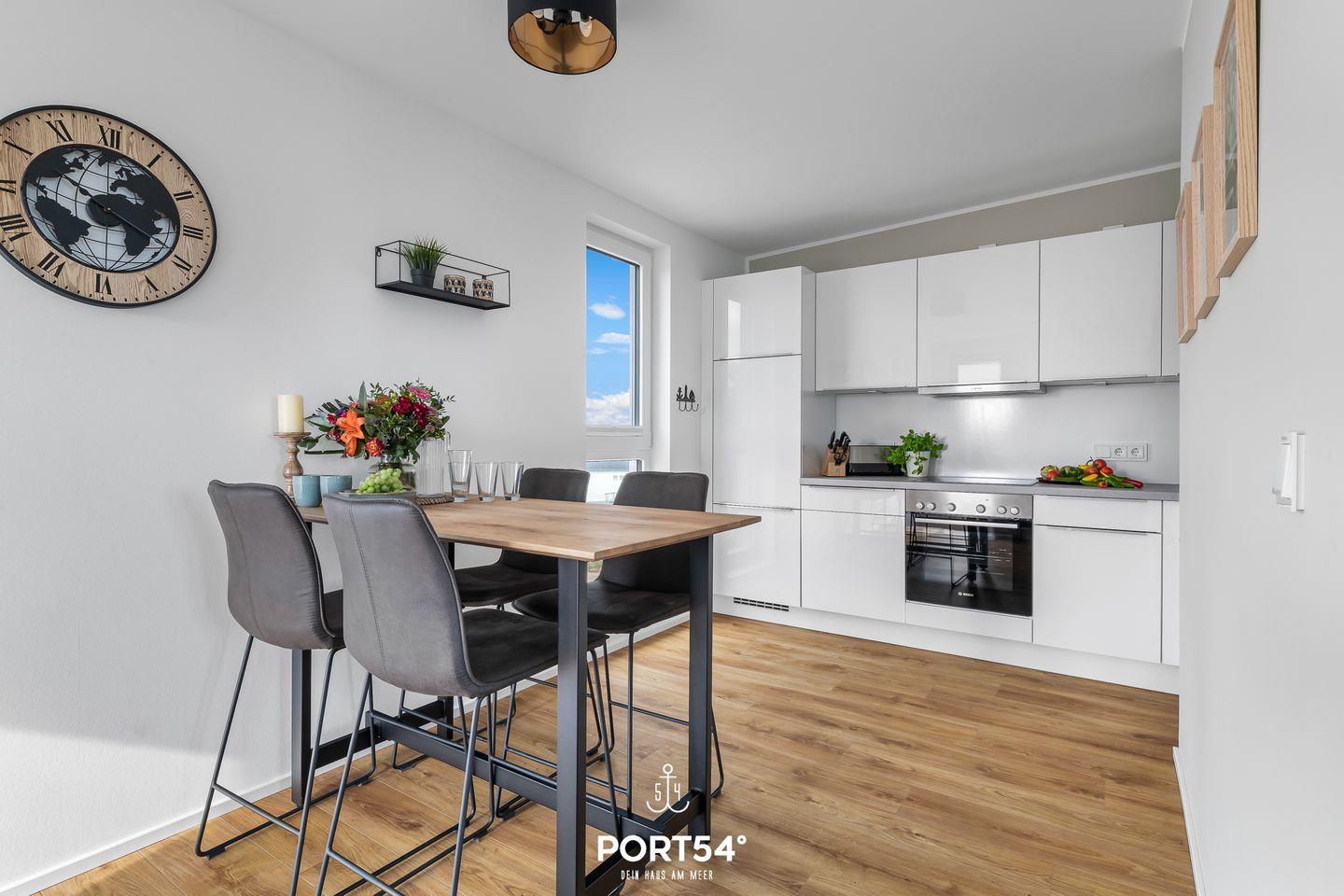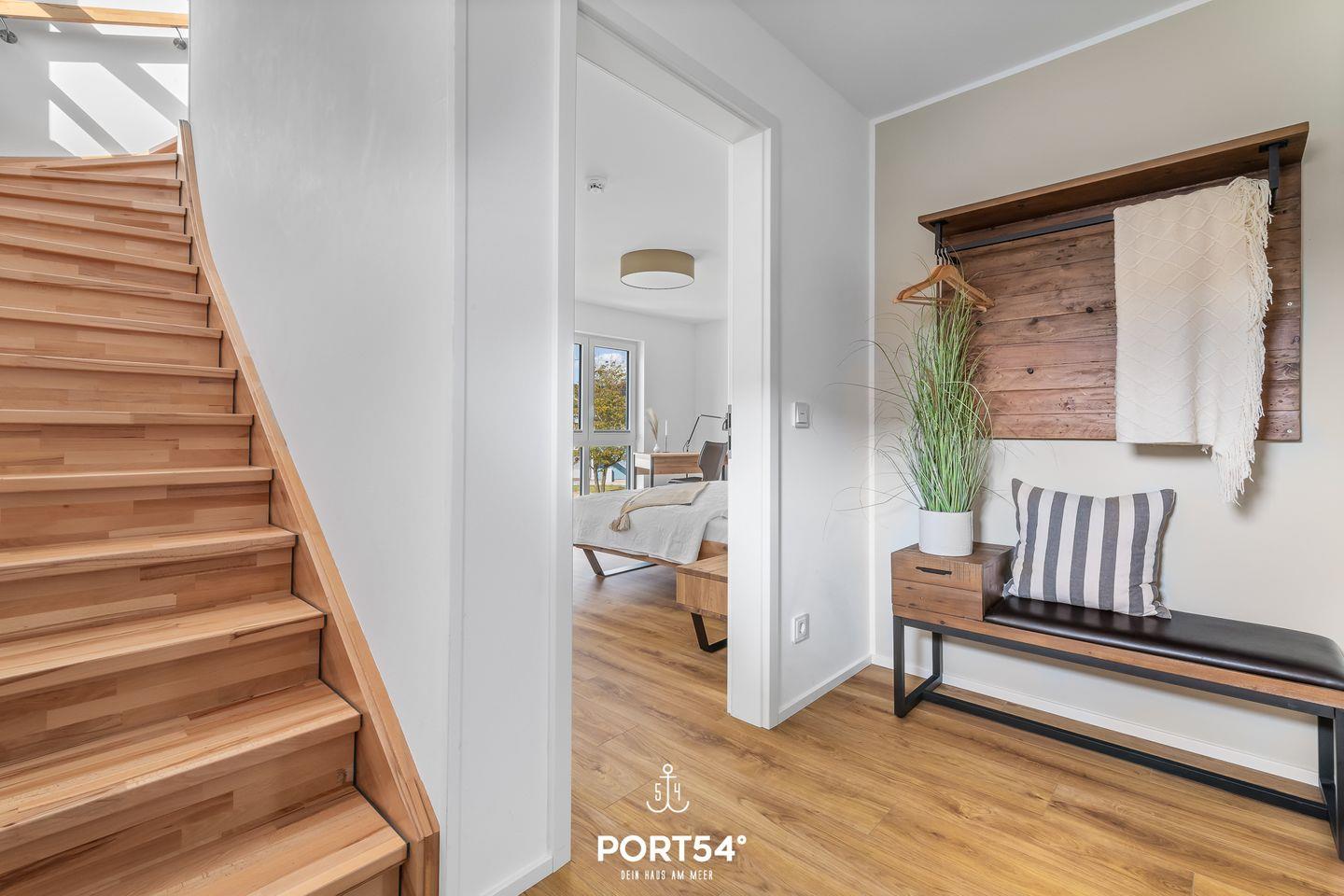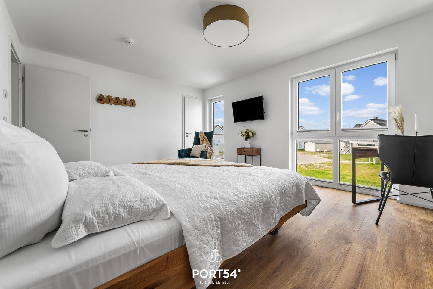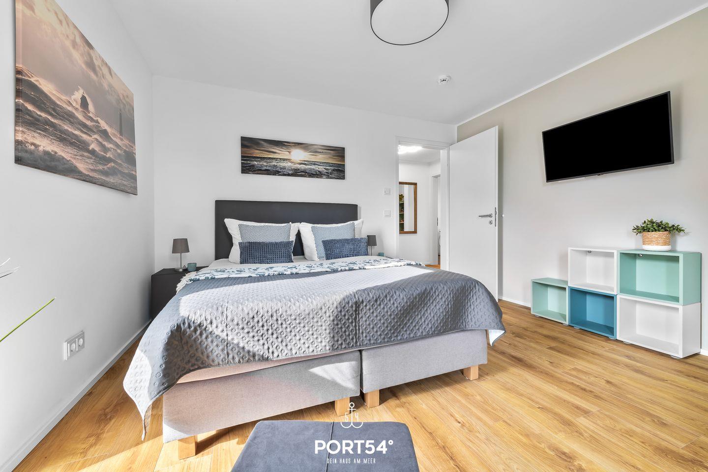 Herzlich Willkommen in der Ferienwohnung "Janus' Shelter" in Olpenitz! Die großzügige und hochwertig ausgestattete Maisonette-Ferienwohnung im 1. und 2. Obergeschoss bietet Ihnen einen unvergesslichen Urlaub an der Ostsee! Auf 130m² bietet "Janus' Shelter" Platz für 6 Personen und verspricht schöne Stunden im hohen Norden. Beim Betreten der lichtdurchfluteten Ferienwohnung kommt direkt Urlaubsfeeling auf! Im offen gestalteten Wohnzimmer mit Kamin und Zugang zur großzügigen Dachterrasse befindet sich eine gemütliche Sitzecke zum entspannten Lesen oder Ausruhen. Der geräumige Essbereich mit seiner bequemen Sitzbank ist der ideale Ort für gesellige Abende mit Blick auf die Ostsee. Die Küche ist modern und mit allem ausgestattet, was Sie für gesellige Kochabende benötigen. Der Bistrotisch mit Platz für 4 Personen lädt zum gemeinsamen Kochen ein. Für unsere kleinen Gäste stellen wir ein Kinderreisebett und einen Kinderhochstuhl bereit. Die drei gemütlichen Schlafzimmer laden zu erholsamen Urlaubsnächten ein. Alle sind mit einem Flachbild-Fernseher mit Magenta-TV ausgestattet. Das größte Schlafzimmer ist mit Wildeiche-Massivholzmöbeln eingerichtet und bietet neben einem Schreibtisch noch eine gemütliche Leseecke. Das Doppelbett ist 180cm x 200cm groß. Das zweite Schlafzimmer verfügt über ein 160cm x 200cm großes Boxspringbett. Die zwei einzelnen Boxspringbetten im dritten Schlafzimmer können auf Anfrage auch als Doppelbett gestellt werden. Falls dies gewünscht wird, vermerken Sie dies bitte unbedingt bei Ihrer Buchung. Auf der gleichen Etage befindet sich das Hauptbad mit bodengleicher Dusche und einer Infrarot-Sauna für Wellnessliebhaber. Das zweite Badezimmer auf der oberen Etage lädt zum Entspannen in der Badewanne ein. Das absolute Highlight der Wohnung ist die 28m² große Dachterrasse. Hier können Sie im Strandkorb oder auf den Sonnenliegen ausruhen oder beim geselligen Beisammensein rund um den großzügigen Tisch den Blick auf die Ostsee und das Wolkenpanorama genießen. Auch ein Elektrogrill steht bereit. Zwei eigene PKW-Stellplätze, eine E-Ladesäule und ein Fahrradschuppen befinden sich direkt vor der Unterkunft. Der Schuppen ist abschließbar und bietet Unterstellmöglichkeiten für Fahrräder oder Strand- und Sportgeräte. Der Weidefelder Sandstrand ist zu jeder Jahreszeit ein reizvolles Ausflugsziel. Mit Strandkörben, Restaurant, Kiosk und einer Wassersportschule bietet er alle Möglichkeiten für einen ausgiebigen Strandtag, aber auf dem langen Strandabschnitt auch Rückzugsorte, um Meer und Sonne - vielleicht bei einem Glas Wein oder Bier - zu genießen. Der maritim gestaltete Minigolfplatz ist ebenfalls in unmittelbarer Nähe und der Yachthafen mit angrenzender Hafenpromenade ist von Janus' Shelter in wenigen Minuten zu Fuß erreichbar.