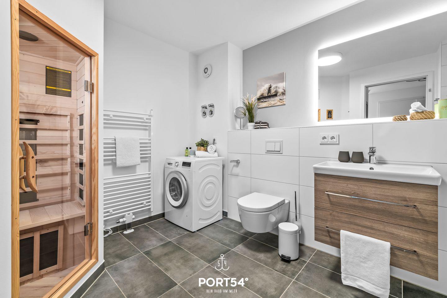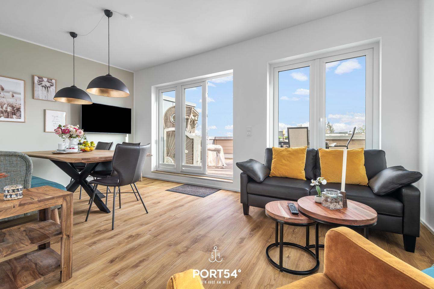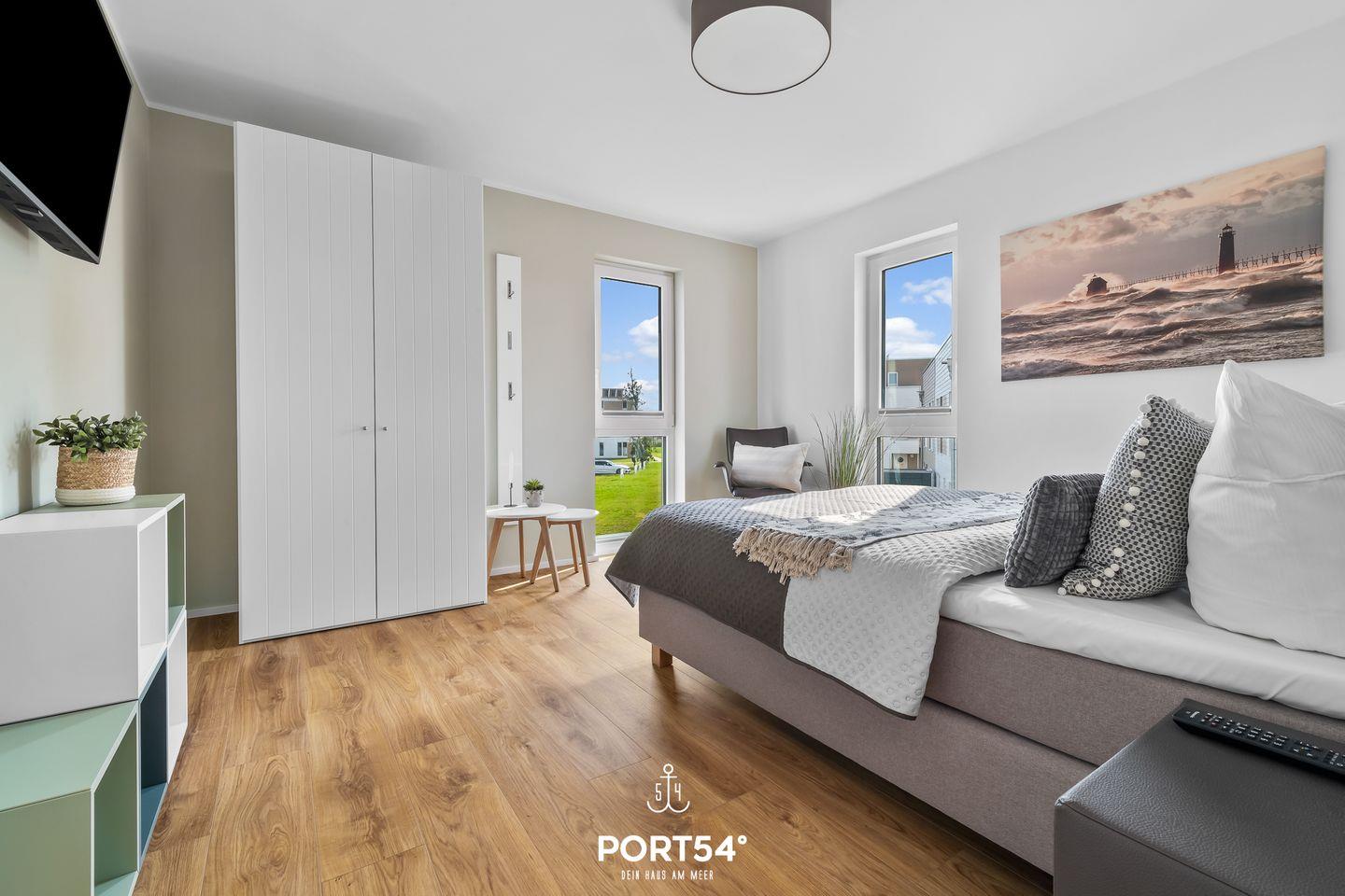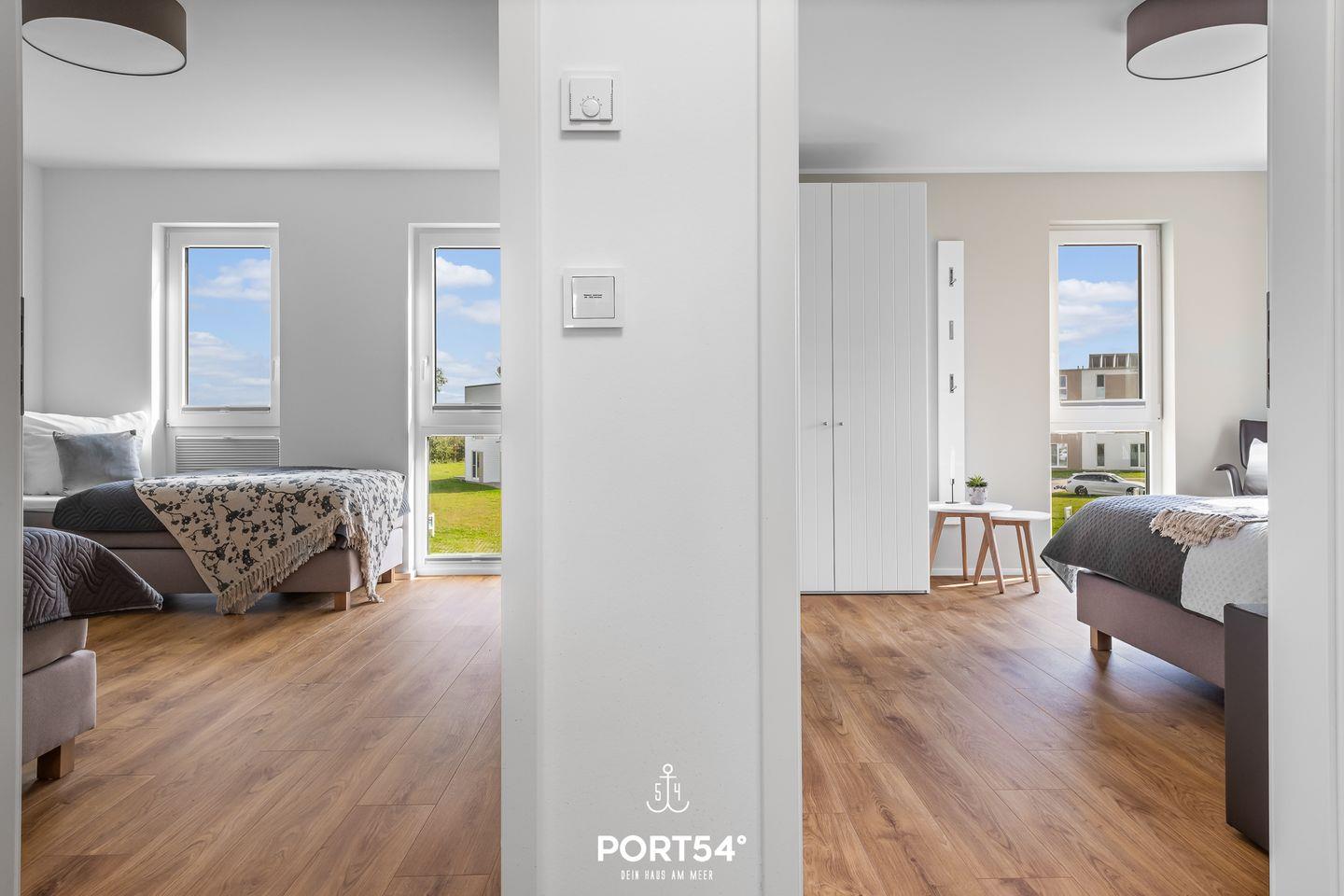 Herzlich Willkommen in der Ferienwohnung "Janus' Shelter" in Olpenitz! Die großzügige und hochwertig ausgestattete Maisonette-Ferienwohnung im 1. und 2. Obergeschoss bietet Ihnen einen unvergesslichen Urlaub an der Ostsee! Auf 130m² bietet "Janus' Shelter" Platz für 6 Personen und verspricht schöne Stunden im hohen Norden. Beim Betreten der lichtdurchfluteten Ferienwohnung kommt direkt Urlaubsfeeling auf! Im offen gestalteten Wohnzimmer mit Kamin und Zugang zur großzügigen Dachterrasse befindet sich eine gemütliche Sitzecke zum entspannten Lesen oder Ausruhen. Der geräumige Essbereich mit seiner bequemen Sitzbank ist der ideale Ort für gesellige Abende mit Blick auf die Ostsee. Die Küche ist modern und mit allem ausgestattet, was Sie für gesellige Kochabende benötigen. Der Bistrotisch mit Platz für 4 Personen lädt zum gemeinsamen Kochen ein. Für unsere kleinen Gäste stellen wir ein Kinderreisebett und einen Kinderhochstuhl bereit. Die drei gemütlichen Schlafzimmer laden zu erholsamen Urlaubsnächten ein. Alle sind mit einem Flachbild-Fernseher mit Magenta-TV ausgestattet. Das größte Schlafzimmer ist mit Wildeiche-Massivholzmöbeln eingerichtet und bietet neben einem Schreibtisch noch eine gemütliche Leseecke. Das Doppelbett ist 180cm x 200cm groß. Das zweite Schlafzimmer verfügt über ein 160cm x 200cm großes Boxspringbett. Die zwei einzelnen Boxspringbetten im dritten Schlafzimmer können auf Anfrage auch als Doppelbett gestellt werden. Falls dies gewünscht wird, vermerken Sie dies bitte unbedingt bei Ihrer Buchung. Auf der gleichen Etage befindet sich das Hauptbad mit bodengleicher Dusche und einer Infrarot-Sauna für Wellnessliebhaber. Das zweite Badezimmer auf der oberen Etage lädt zum Entspannen in der Badewanne ein. Das absolute Highlight der Wohnung ist die 28m² große Dachterrasse. Hier können Sie im Strandkorb oder auf den Sonnenliegen ausruhen oder beim geselligen Beisammensein rund um den großzügigen Tisch den Blick auf die Ostsee und das Wolkenpanorama genießen. Auch ein Elektrogrill steht bereit. Zwei eigene PKW-Stellplätze, eine E-Ladesäule und ein Fahrradschuppen befinden sich direkt vor der Unterkunft. Der Schuppen ist abschließbar und bietet Unterstellmöglichkeiten für Fahrräder oder Strand- und Sportgeräte. Der Weidefelder Sandstrand ist zu jeder Jahreszeit ein reizvolles Ausflugsziel. Mit Strandkörben, Restaurant, Kiosk und einer Wassersportschule bietet er alle Möglichkeiten für einen ausgiebigen Strandtag, aber auf dem langen Strandabschnitt auch Rückzugsorte, um Meer und Sonne - vielleicht bei einem Glas Wein oder Bier - zu genießen. Der maritim gestaltete Minigolfplatz ist ebenfalls in unmittelbarer Nähe und der Yachthafen mit angrenzender Hafenpromenade ist von Janus' Shelter in wenigen Minuten zu Fuß erreichbar.