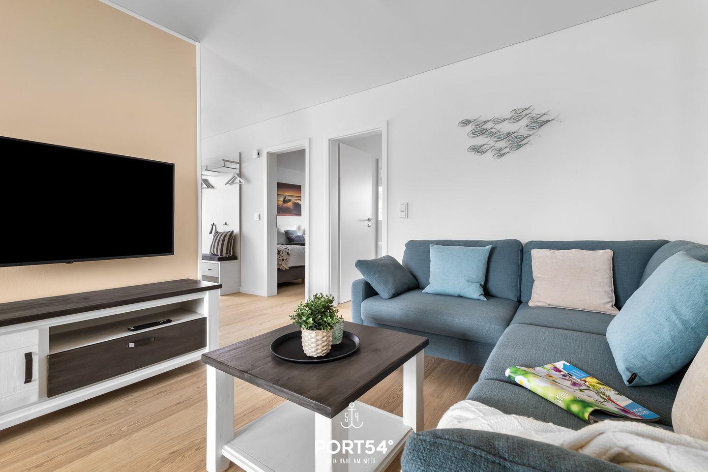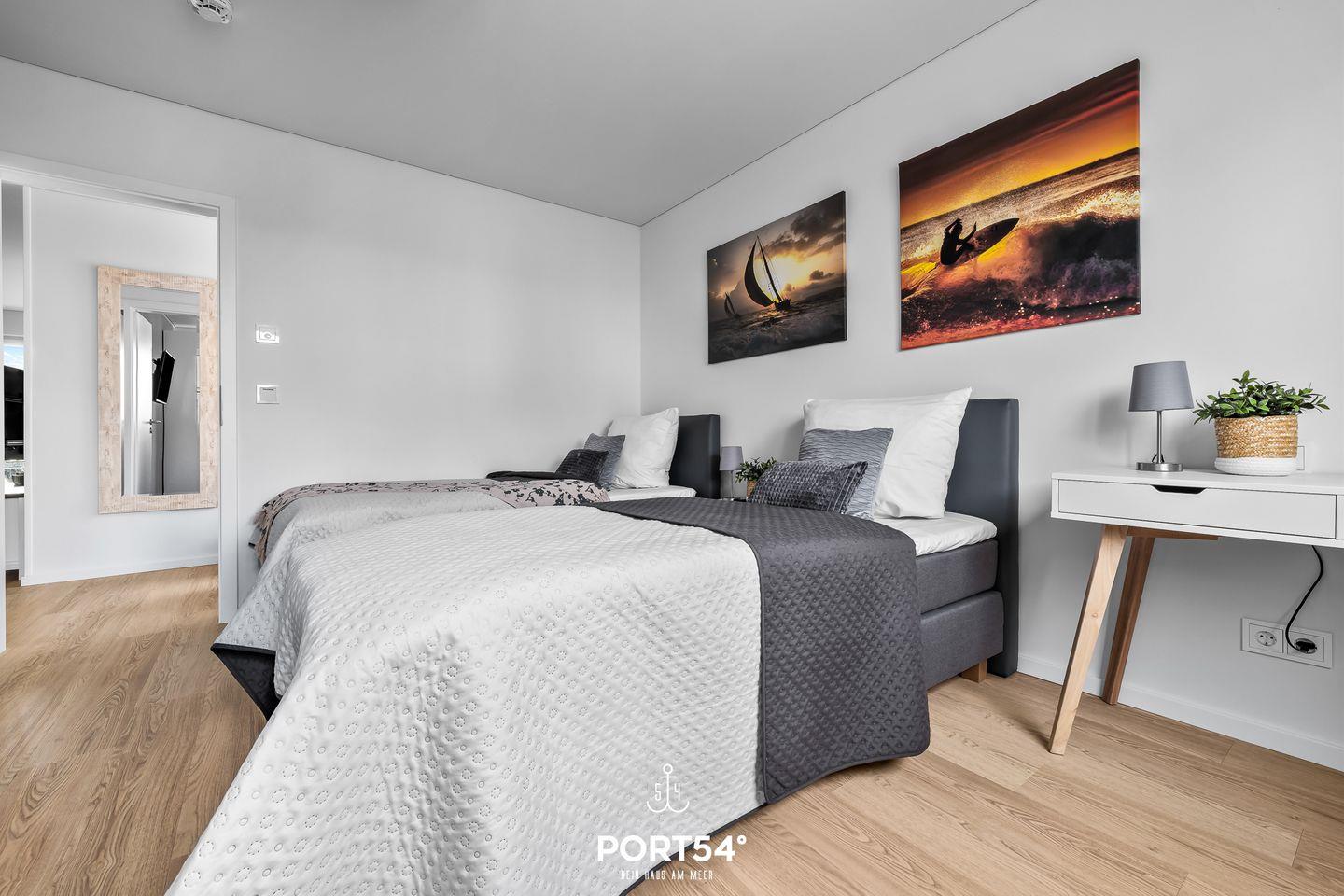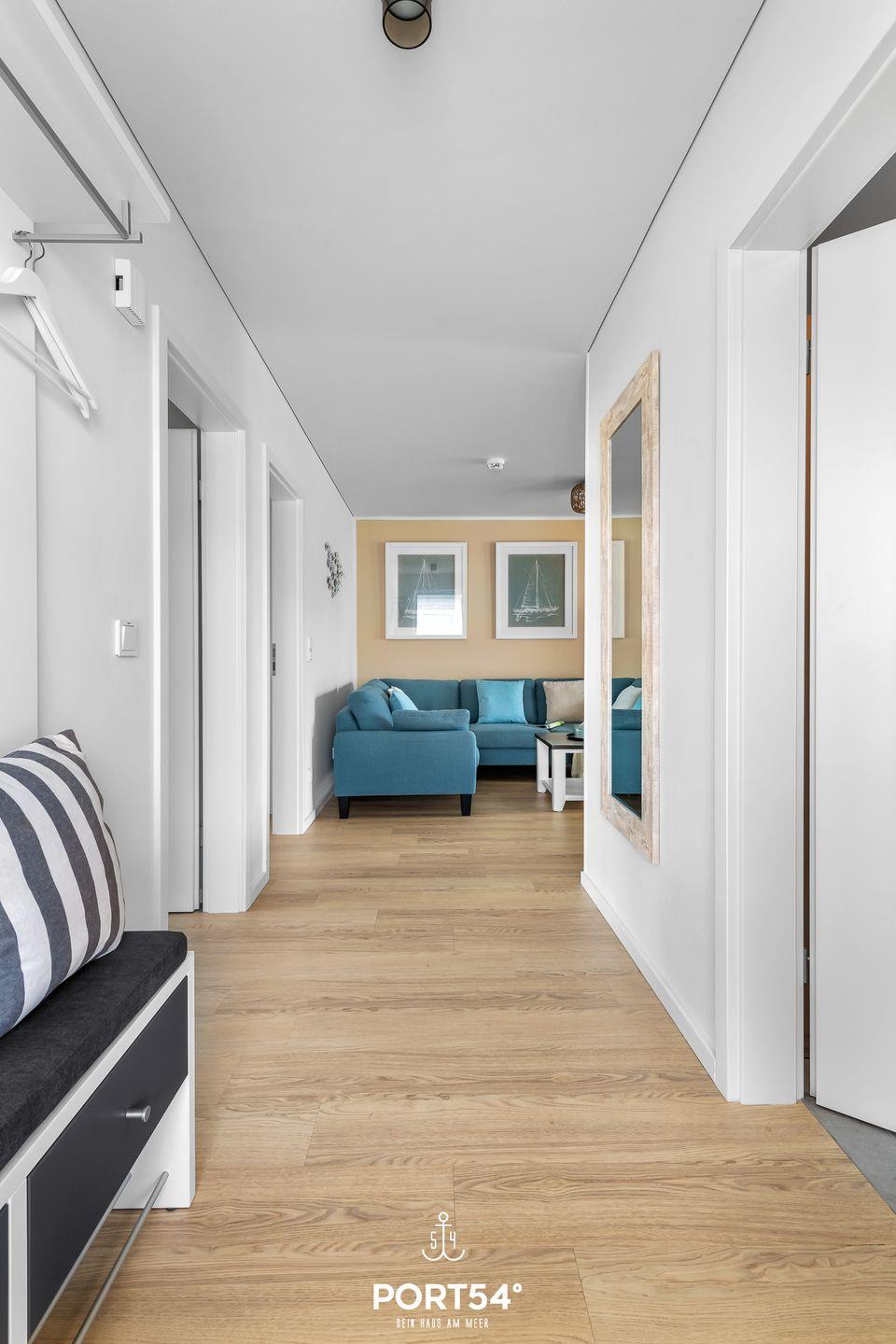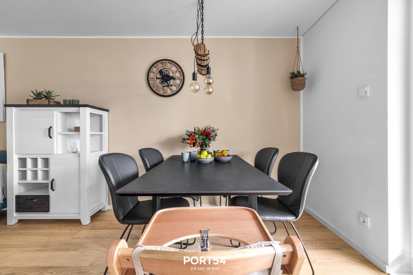 Im Erdgeschoss gelegen erwartet Sie eine großzügige Ferienwohnung mit vielen Annehmlichkeiten für einen Traumurlaub in Ostseenähe. Das Wohnzimmer verfügt über einen Kaminofen und einen Flatscreen-TV. Hier können Sie es sich mit Ihrer Lieblingsserie gemütlich machen und Ihren Urlaub in vollen Zügen genießen, während der Kamin eine gemütliche Atmosphäre und Wärme spendet. Die moderne Küche ist voll ausgestattet, sodass hier leckere Urlaubsgerichte gezaubert werden können. Der angeschlossene Essbereich bietet Platz für 4 Personen. In der Wohnung gibt es 2 Schlafzimmer. Das eine Zimmer verfügt über ein großes Boxspring-Doppelbett. In dem anderen Schlafzimmer stehen 2 bequeme Einzelboxspringbetten zur Verfügung, die zu einem Doppelbett zusammengeschoben werden können. Hier befindet sich außerdem ein Schreibtisch. Beide Schlafzimmer sind mit Flachbild-TV's ausgestattet, sodass auch fürs nächtliche Entertainment gesorgt ist. Das Badezimmer hat eine ebenerdige Dusche und als Highlight eine Infrarot-Sauna - nach langen Spaziergängen kann man sich dort wunderbar entspannen und aufwärmen. Ihre Vierbeiner sind herzlich Willkommen - wie auch kleine Gäste: wir stellen einen Kinderhochstuhl, ein Kinderreisebett und einen Tritt bereit. Weitere Highlights des Hauses sind die zwei überdachten Terrassen mit Gartenmöbeln und einem Elektro-Grill. Entspannten Grill-Abenden auf der Terrasse an der frischen Ostseeluft steht somit nichts mehr im Wege! Der Weidefelder Strand befindet sich in fußläufiger Nähe - und bietet neben Strandkörben auch ein Restaurant und einen Kiosk. Im Strandkorb mit einem Glas Wein den Sonnenuntergang anschauen - was will man Mee(h)r? Fürs Entertainment im Urlaub ist in Olpenitz ebenfalls gesorgt - der Minigolfplatz ist innerhalb weniger Gehminuten zu erreichen. Unternehmungslustige kommen hier auf jeden Fall auf ihre Kosten, denn auch die Surfschule in Weidefeld ist ein beliebtes Ausflugsziel und bietet Wassersportkurse für jedermann an. Ein kostenfreier Parkplatz inkl. E-Ladestation befindet sich direkt vor der Unterkunft. Mitgebrachte oder ausgeliehene Fahrräder können im abschließbaren Fahrradschuppen untergestellt werden.
