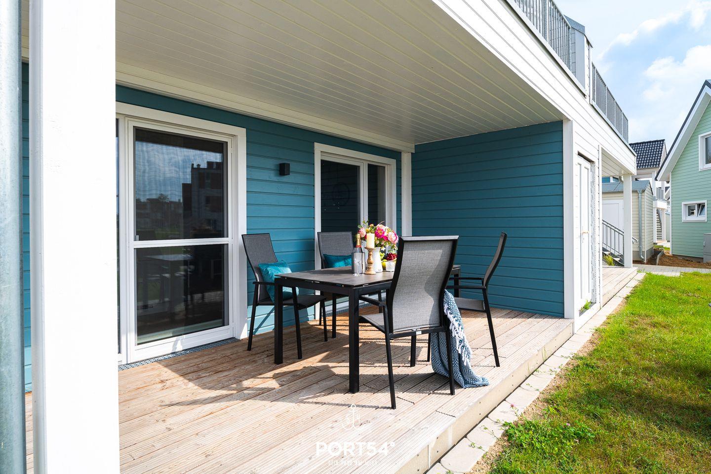 "Luna's Shelter" bietet zwei Schlafzimmer, ein Badezimmer und einen offenen Wohnbereich mit integrierter Küche und Essbereich, sowie eine Terrasse. Das eine Schlafzimmer bietet ein gemütliches Doppelbett und das andere zwei komfortable Einzelbetten. Ein Stellplatz mit Ladestation sowie ein Fahrradschuppen sind vor dem Haus vorhanden. Bitte beachten Sie, dass sich das OstseeResort Olpenitz derzeit noch im Aufbau befindet und es zu Bautätigkeiten in der Nähe Ihrer Unterkunft kommen kann.