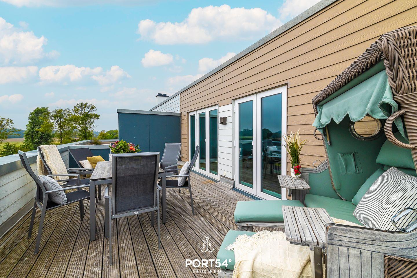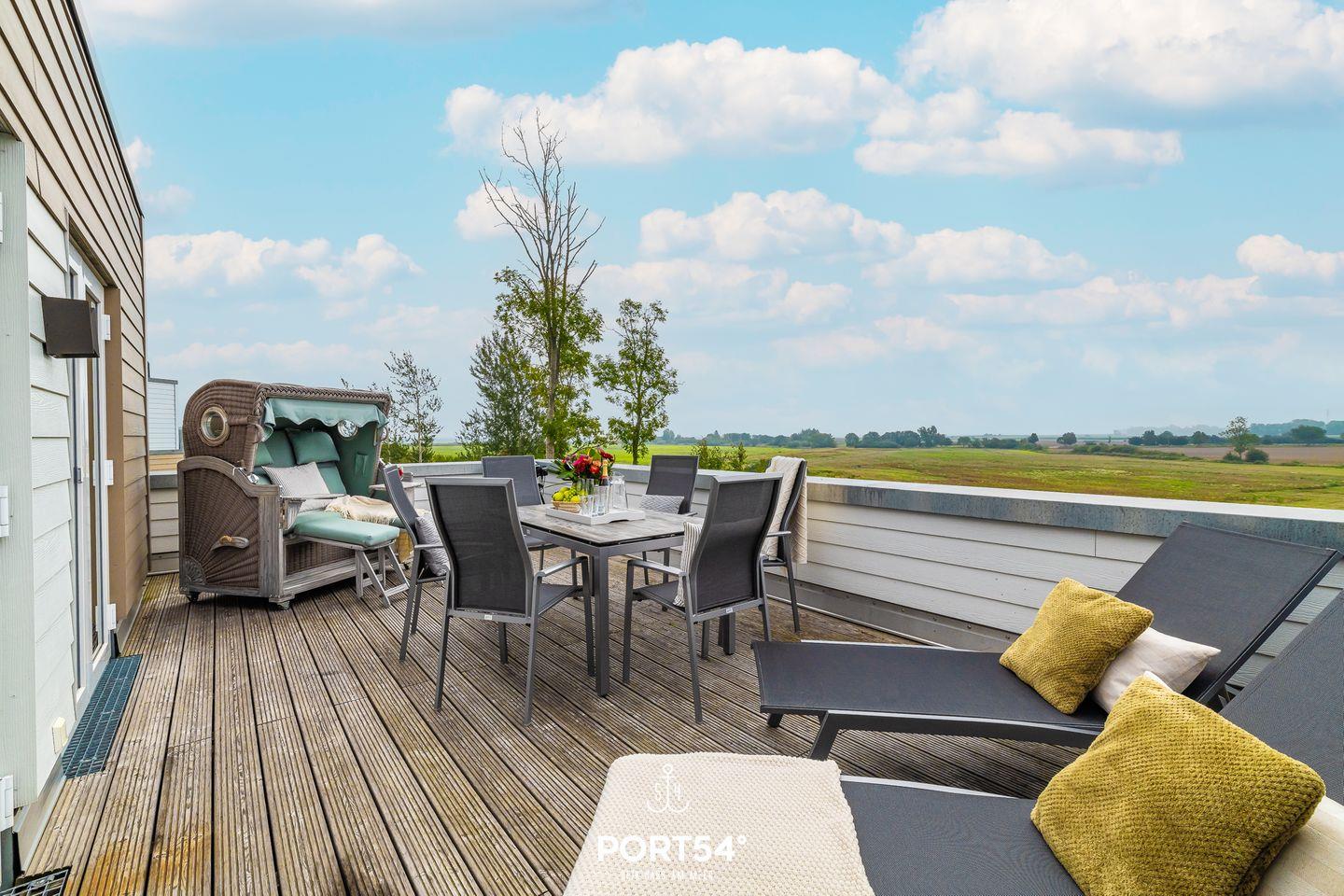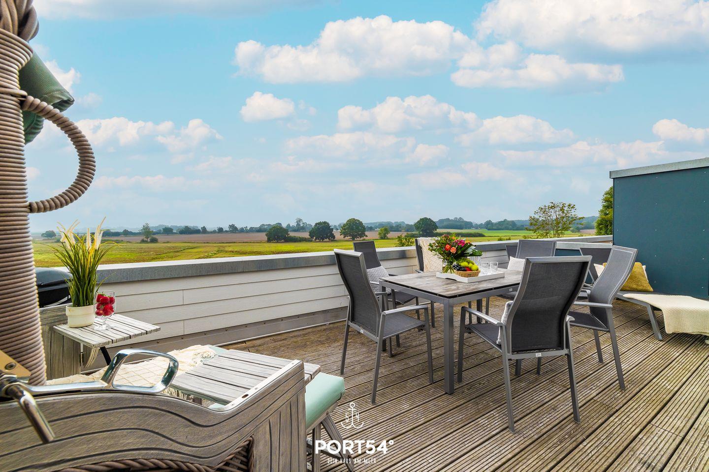 Die Ferienwohnung 'Wilde Aussicht' in Olpenitz bietet auf 130m² mit Kamin, Sauna und Dachterrasse perfekten Ostseeurlaub.