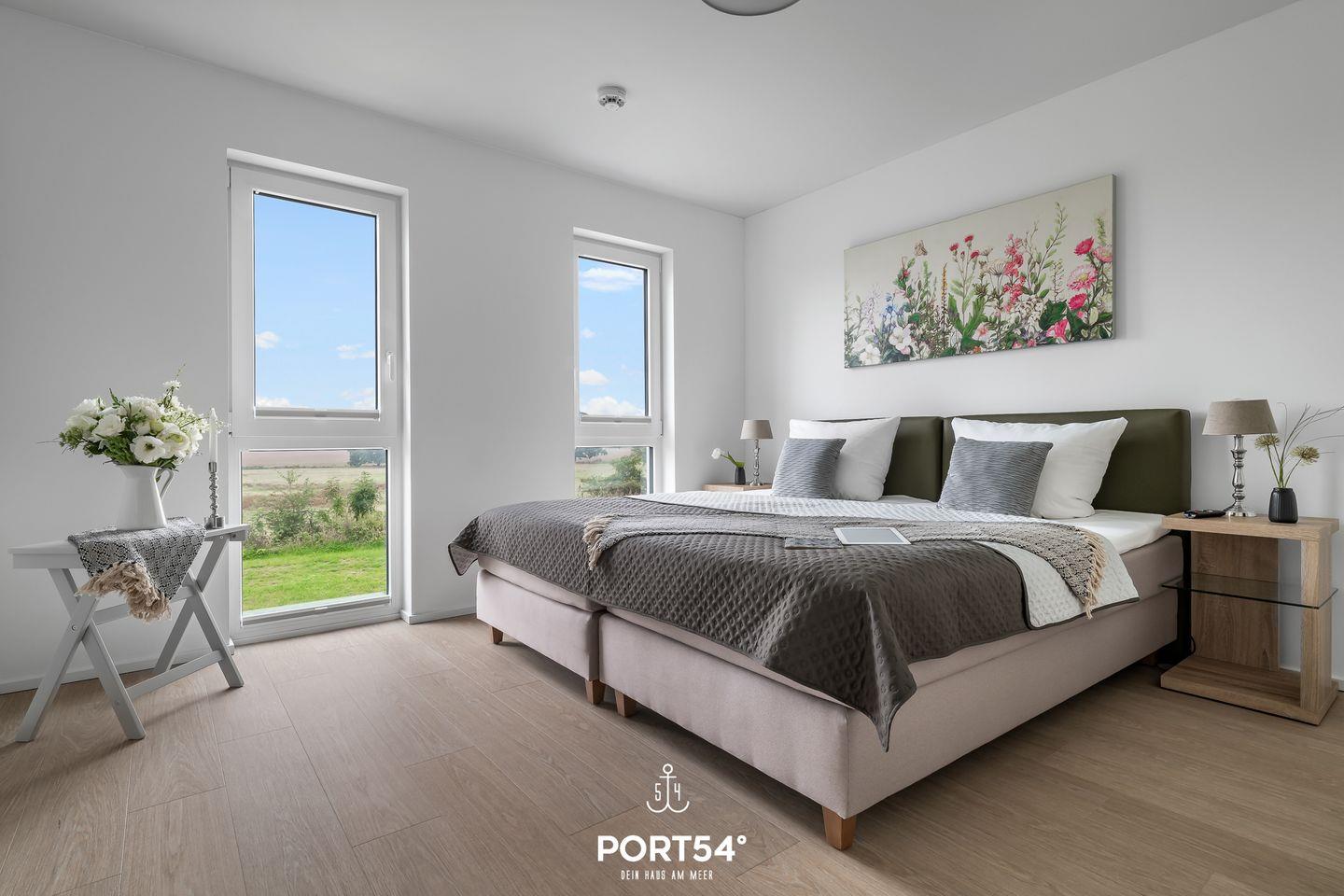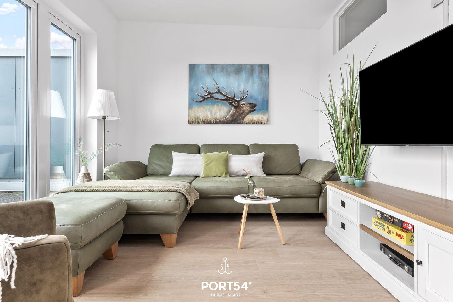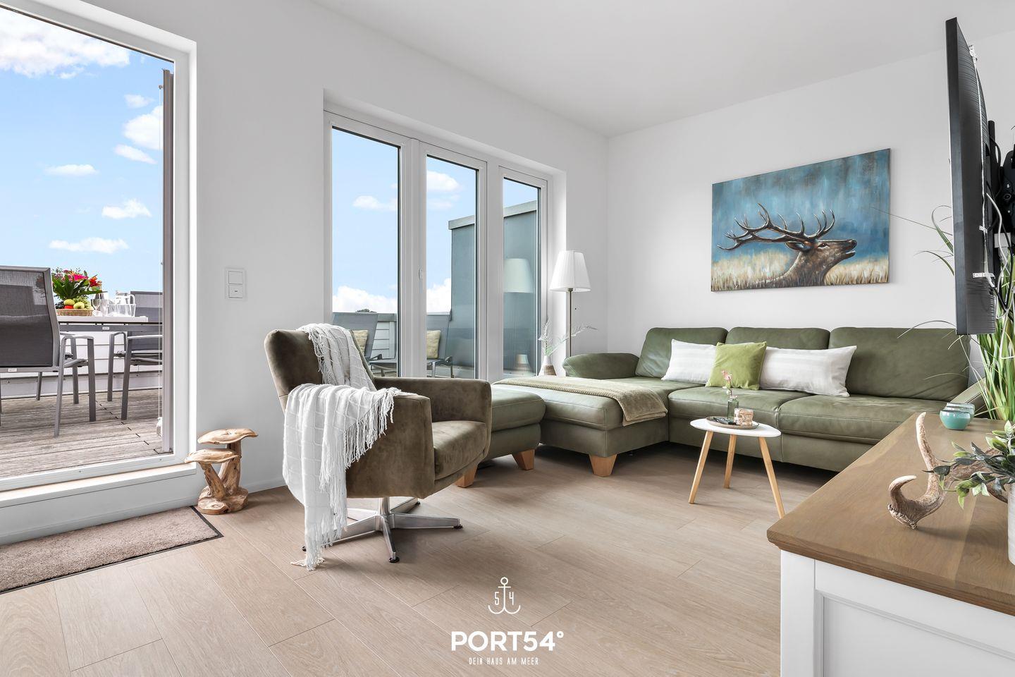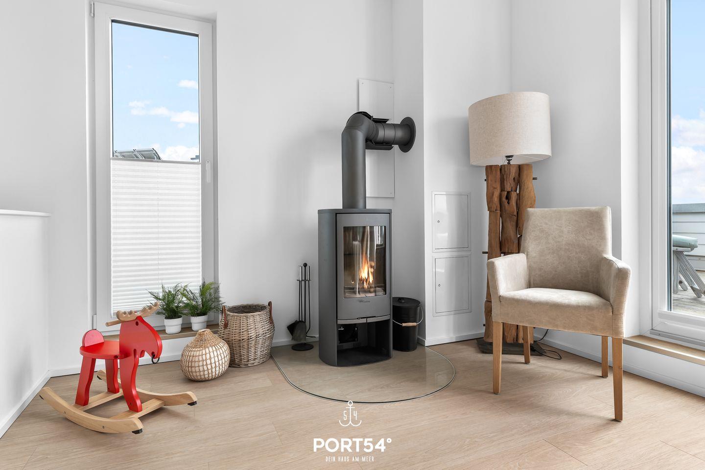 Die Ferienwohnung 'Wilde Aussicht' in Olpenitz bietet auf 130m² mit Kamin, Sauna und Dachterrasse perfekten Ostseeurlaub.