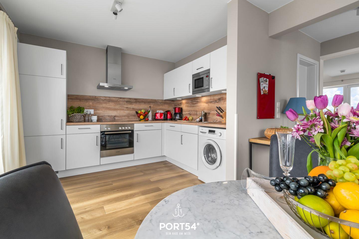Die Ferienwohnung „Harbourviews“ befindet sich im neuerbauten Ostsee Resort Olpenitz, nur wenige Schritte vom Wasser entfernt! Der lichtdurchflutete Wohnbereich lädt an kalten Abenden zu einem Kaminabend ein. Die einladende Sitzlandschaft verspricht Entspannung und Behaglichkeit – hier fühlst Du Dich einfach zu Hause. Die großzügige Wohnküche mit Essplatz für 6 Personen ist mit allem, was das Herz begehrt, ausgestattet.