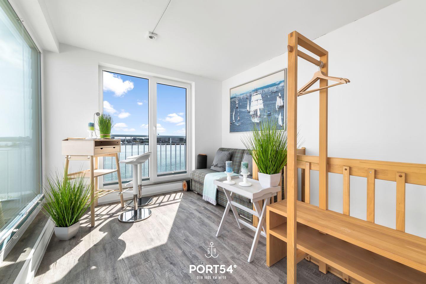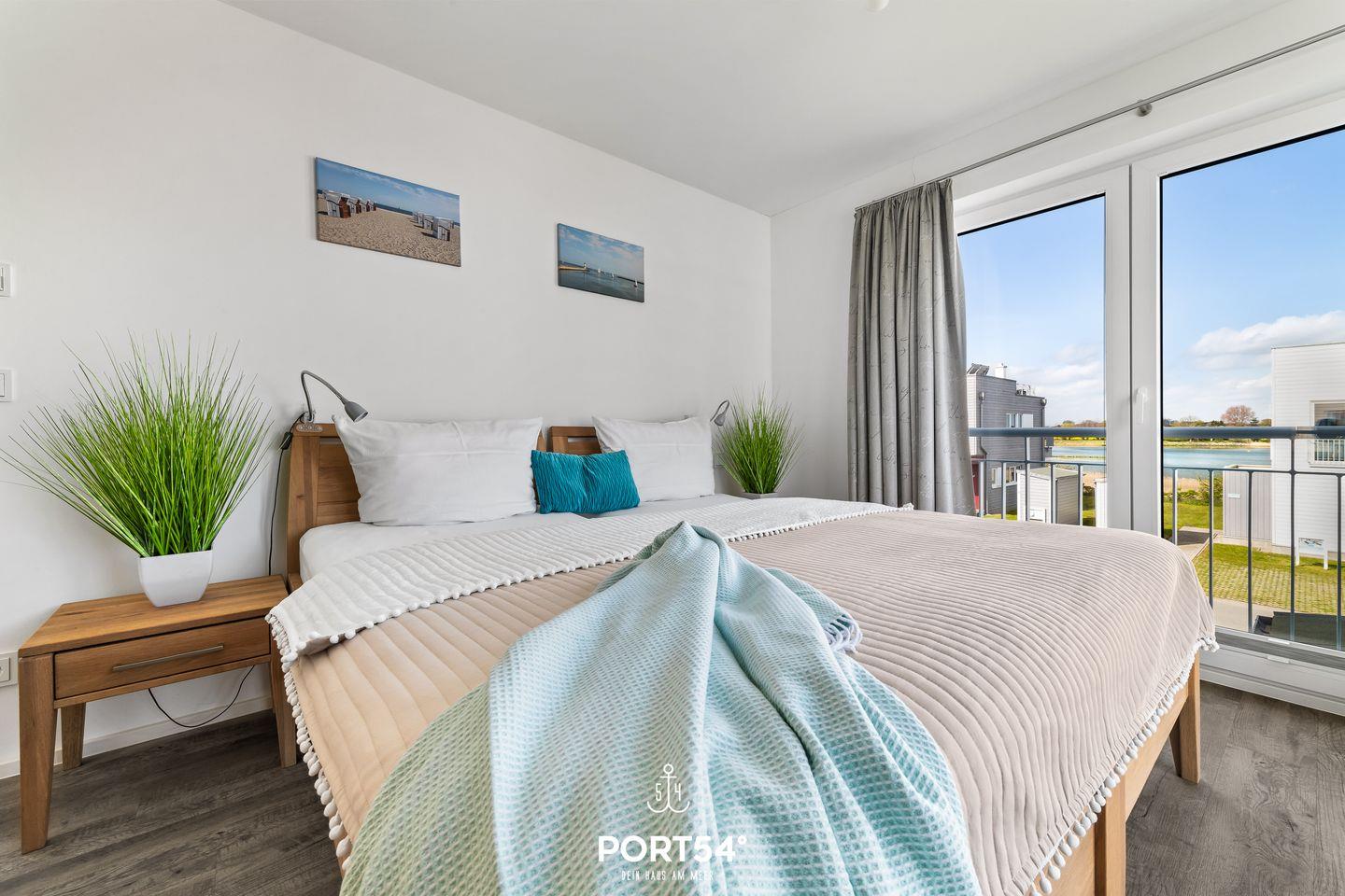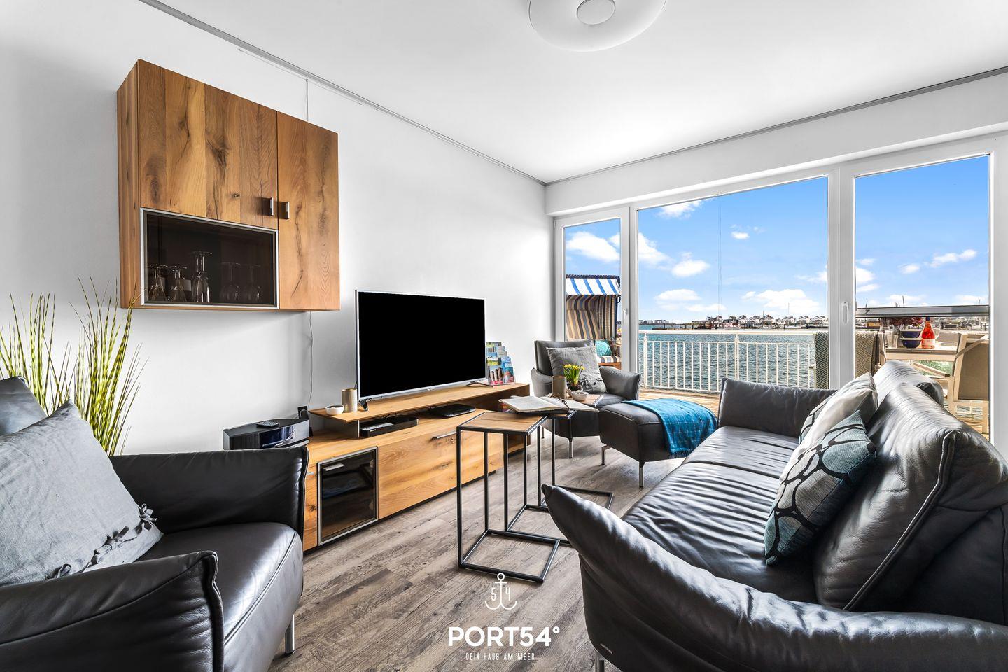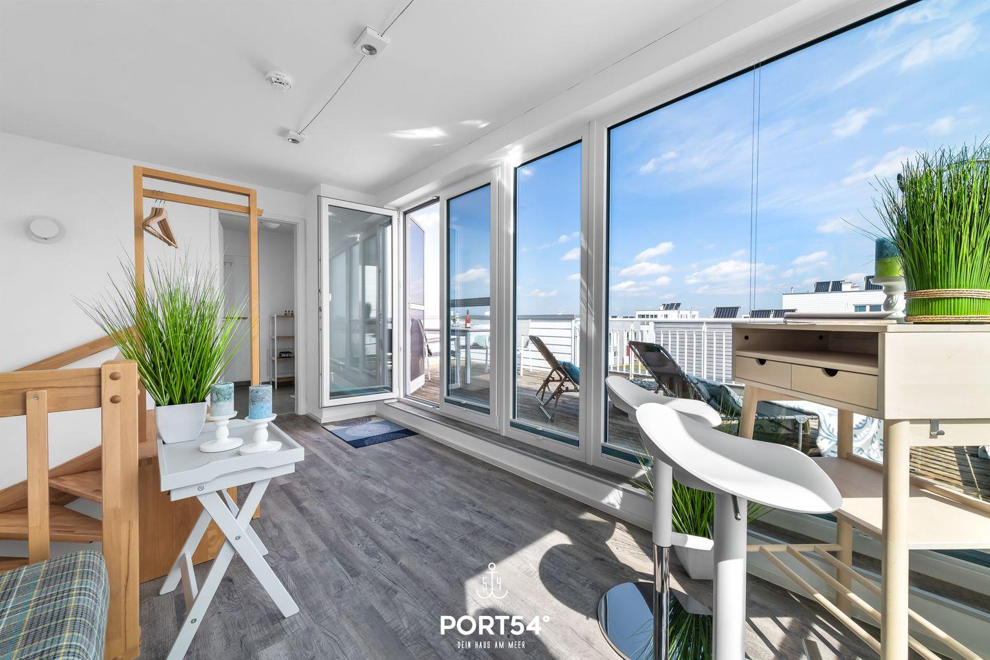Der Wohn- und Essbereich bietet einen Blick auf den Hafen. Die Küche ist voll ausgestattet. Beide Schlafzimmer haben Wasserblick. Ein Highlight des Hauses ist das Studio, das mit einer Schlafcouch ausgestattet. Vom Studio aus erreichen Sie die Dachterrasse sowie Sauna und Dusche. Die Whirlwanne im Badezimmer verspricht Entspannung pur.