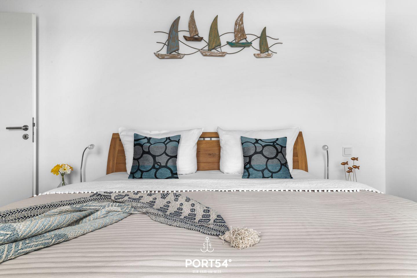 Das Ferienhaus „Bredablick“ direkt am Wasser auf einer schmalen Landzunge zwischen Schlei und Ostsee gelegen, bietet einen traumhaften Blick, von Maasholm über Schleimünde, Marina und Ostsee und bei schönem Wetter bis Dänemark. Nur wenige Meter vom Naturschutzgebiet Schleimünde entfernt bietet das Ferienhaus auf 127m² viel Platz für bis zu 6 Personen. Im Erdgeschoss finden Sie einen großzügigen Wohn- und Essbereich, eine offene Küche und ein Gäste-WC vor. Der Kaminofen lädt zum Verweilen ein und durch bodentiefe Fenster haben Sie einen wunderschönen Blick auf den Hafen. Von hier aus gelangen Sie auch auf die große Terrasse. Ausgestattet mit bequemen Gartenmöbeln, einem Elektro-Grill und einem Strandkorb - der perfekte Ort für gemütliche und entspannte Stunden. Die reichhaltig ausgestattete Küche lässt das gemeinsame Kochen auch im Urlaub zu einem besonderen Erlebnis werden. Im Gäste-WC befindet sich auch der Trockner und die Waschmaschine untergebracht. Von den beiden Schlafzimmern im Obergeschoss, die für 4 Personen Platz bieten, haben Sie einen idyllischen Wasserblick. Das Hauptschlafzimmer ist mit einem großen Doppelbett ausgestattet und zur Marina ausgerichtet. Das zweite Schlafzimmer bietet Ihnen zwei Einzelbetten, welche Sie problemlos auch aneinanderschieben und somit gemeinsam den Blick auf die Schlei genießen können. Bei der Auswahl der Möbel wurde sehr auf die Qualität geachtet und hochwertige Vollholzmöbel ausgewählt. Die Whirlwanne im Vollbad lädt zur Entspannung ein - lehnen Sie sich zurück und lassen Sie den Alltagsstress hinter sich. Weitere Entspannungsmöglichkeiten sind im Dachgeschoss zu finden. Hier befindet sich die finnische Sauna, mit angrenzender Dusche. In dem Studio ist eine komfortable Schlafcouch für zwei Personen vorhanden. Von hier aus erreichen Sie die großzügige Dachterrasse, von der Sie den Sonnenuntergang bestaunen können. Die Dachterrasse ist ein absolutes Highlight. Relaxen Sie auf den Sonnenliegen, oder lassen Sie Ihren Blick über die Schlei und den gesamten Hafen des Resorts vom zweiten Strandkorb des Hauses aus schweifen. Für unsere kleinen Gäste stellen wir ein Kinderreisebett (inkl. Matratze, Decke, Kissen und Bettwäsche) zur Verfügung. Dank des schnellen Internets können Sie hier auch wunderbar im Homeoffice arbeiten. Für Sportbegeisterte ist eine Isomatte für Ihre Übungen vorhanden. Ein hauseigener Safe ermöglicht es Ihnen Ihre Wertsachen sicher unterzubringen. Ihr Vierbeiner darf gern mitreisen und erhält ein kleines Willkommensgeschenk. Zwei kostenfreie Parkplätze, die PKW E-Ladesäule und ein abschließbarer Fahrradschuppen sind direkt vor der Unterkunft. Im Sommer können Sie wunderbar den Abend im Strandkorb ausklingen lassen bei einem Glas Apfelsecco, den Sie bei Ihrer Anreise als Willkommensgeschenk erhalten!