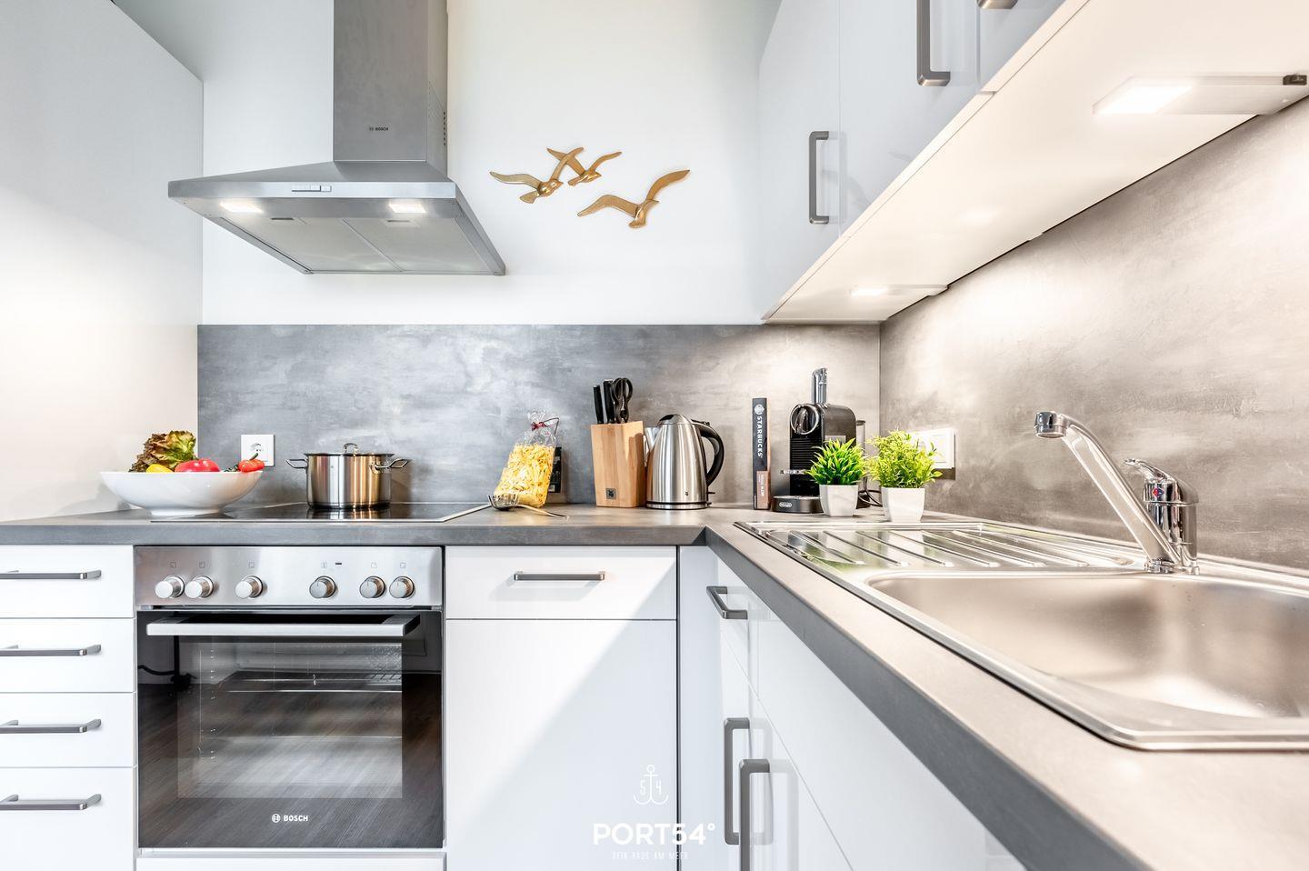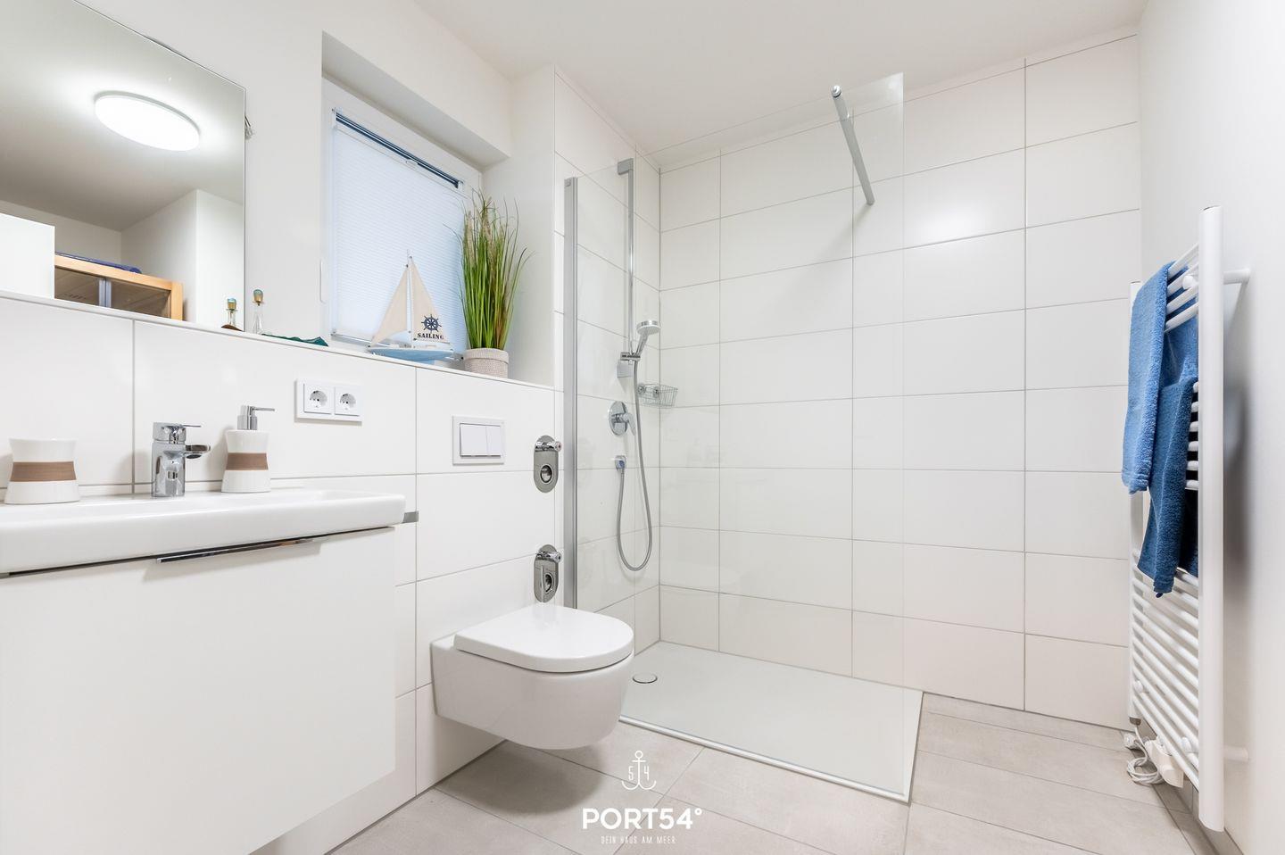 Machen Sie es sich im Wohnbereich auf dem Sofa gemütlich und lassen Ihre Abende vor dem Flachbild-TV ausklingen, während der Kamin für eine angenehme Wärme und Gemütlichkeit sorgt. Angrenzend befindet sich der Essbereich, der mit äußerst bequemen Stühlen ausgestattet ist. Die offene Küche ist bestens ausgestattet und beherbergt eine Waschmaschine. Von der Küche und dem Essbereich aus gelangen Sie zur überdachten Terrasse, auf der Sie morgens Ihren Kaffee im Strandkorb genießen können oder unvergessliche Grillabende erleben können. Im Tageslicht-Duschbad finden Sie das Highlight der Ferienwohnung: eine Infrarot-Sauna zum Aufwärmen und Entspannen. Die zwei Schlafzimmer überzeugen mit einer stimmigen Einrichtung und sind mit einem Boxspring- Doppelbett (180×200cm) und das andere mit zwei Boxspring-Einzelbetten (90×200cm) ausgestattet. Beide Schlafzimmer verfügen jeweils über einen Kleiderschrank, Verdunkelungsmöglichkeiten und einen Flachbild-TV. Für unsere kleinen Gäste stellen wir gerne ein Reisebettchen zur Verfügung. Ein kostenloser PKW-Stellplatz ist vor dem Haus vorhanden. Ihre Fahrräder können im abschließbaren Schuppen abgestellt werden.