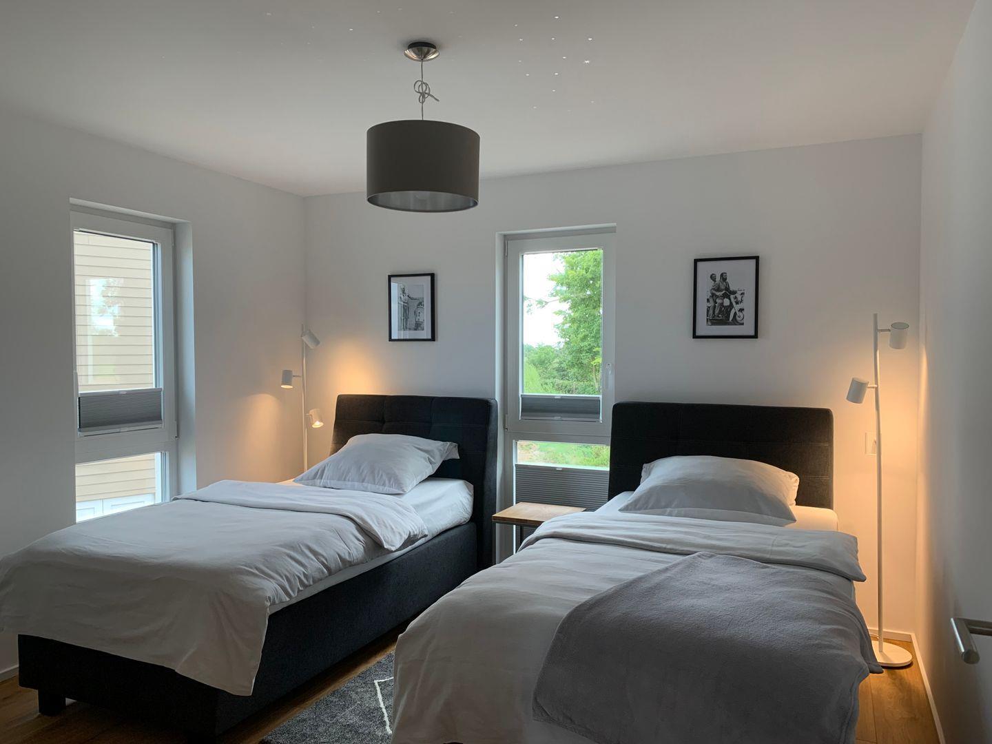 In der Wohnung stehen Ihnen insgesamt drei geschmackvoll eingerichtete Schlafzimmer zur Verfügung, die eine ruhige Atmosphäre bieten. Zwei der Schlafzimmer bieten gemütliche Boxspring-Doppelbetten, während das dritte Schlafzimmer über zwei bequeme Boxspring-Einzelbetten verfügt. Die zwei gut ausgestatteten Badezimmer sind ein weiteres Highlight der Unterkunft. Eines der Badezimmer ist mit einer bodengleichen Dusche und einer Infrarotsaunaausgestattet, das andere verfügt über eine entspannende Badewanne – ideal, um nach einem aktiven Tag am Strand zu relaxen.