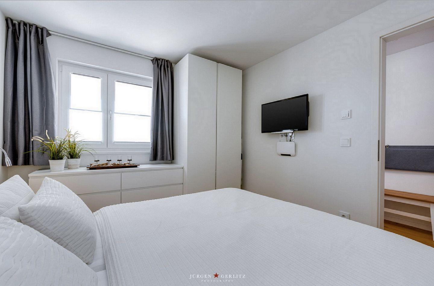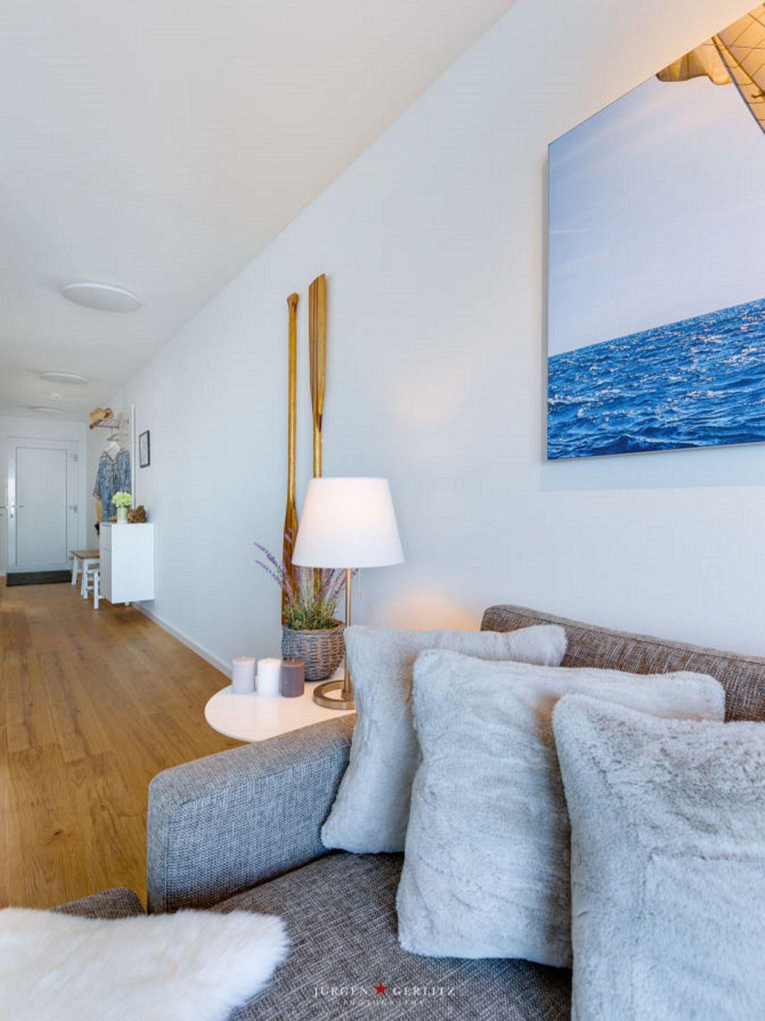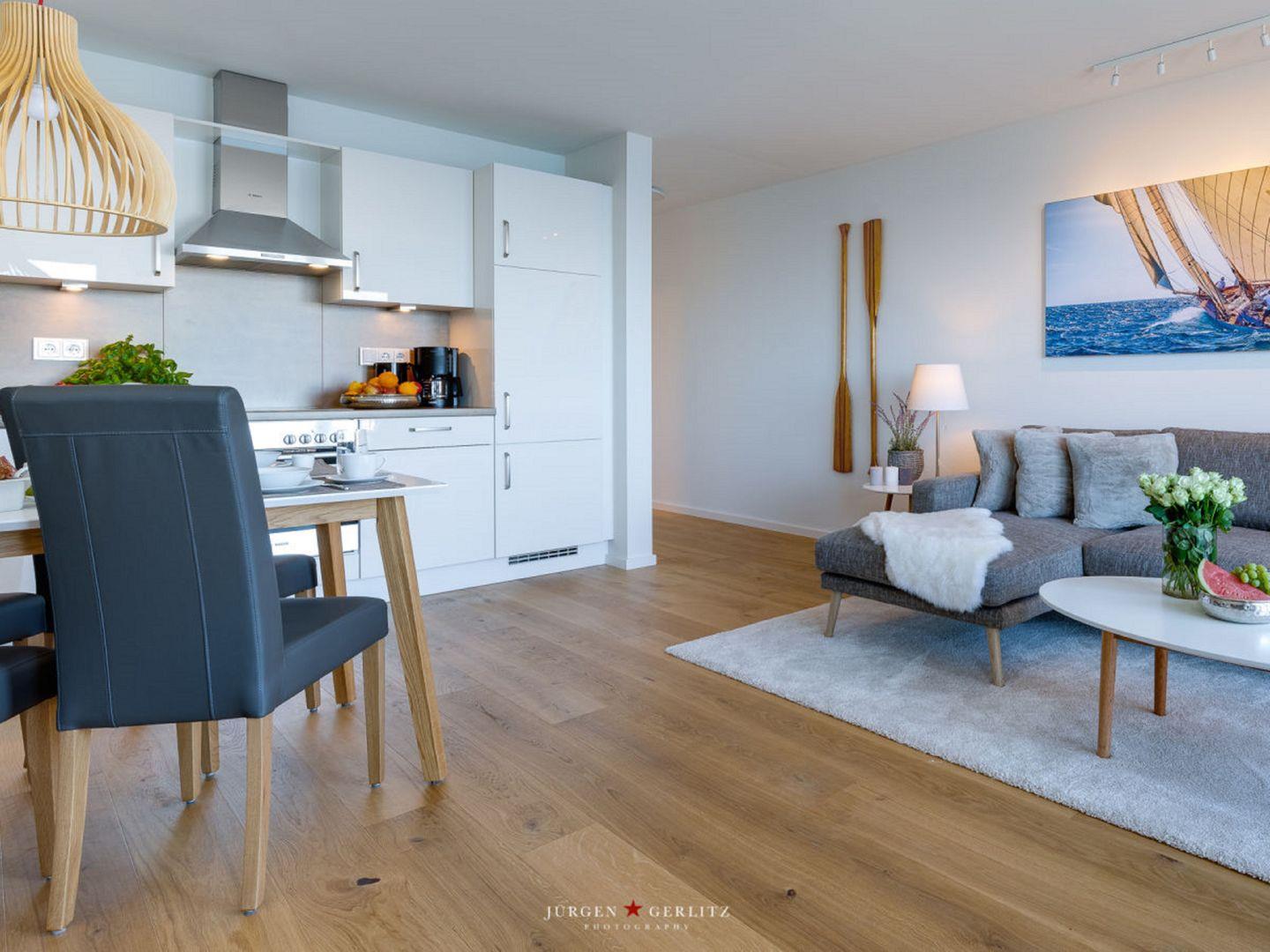 Willkommen in der Ferienwohnung "Knurrhahn"! Dies moderne Wohnung hat einiges zu bieten – einen offenen Wohn-/Essbereich, ein kuscheliges Schlafzimmer, ein modernes Badezimmer und einen Balkon mit einem Wasserblick, der einfach unvergesslich ist! Auf dem Sofa im Wohnbereich können Sie herrlich relaxen, sei es bei spannenden Abenden vor dem Flachbild-TV oder eingekuschelt mit einem guten Buch. Die vollausgestattete Küche lässt Hobbykoch-Herzen höher schlagen - hier können leckere Gerichte zubereitet werden. Auf dem Nord-Ost-Balkon können Sie einen wunderschönen Ausblick auf den Hafen Olpenitz genießen und die Abende bei einem Glas Wein ausklingen lassen. Das gemütliche Schlafzimmer mit TV und Doppelbett (180x200cm) verspricht erholsame Nächte und Entspannung pur. Das Badezimmer punktet mit einer ebenerdigen Dusche.