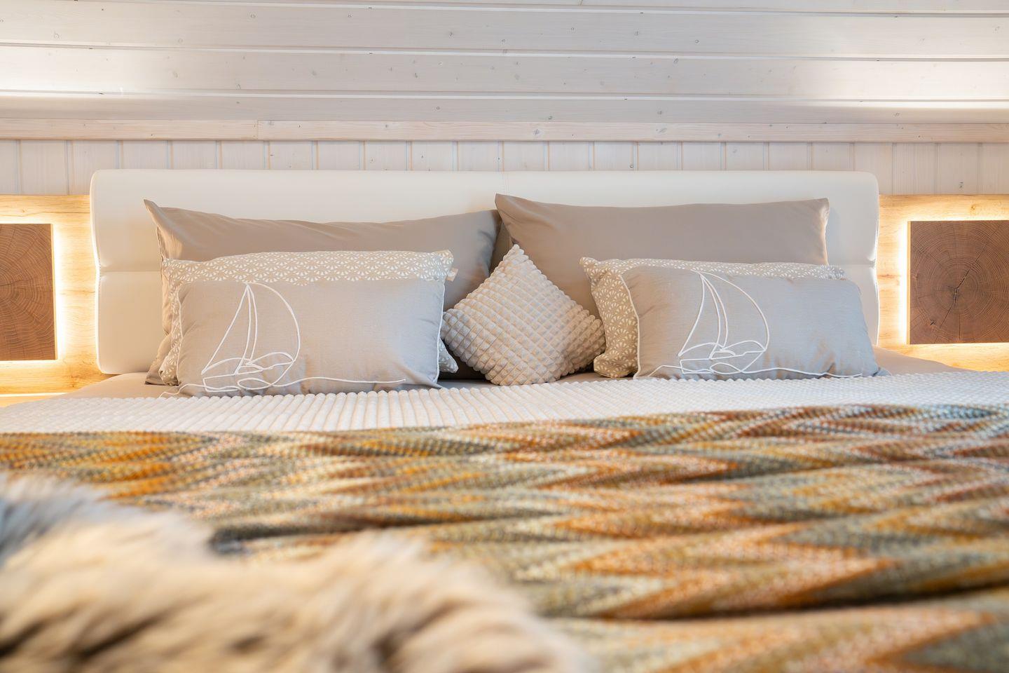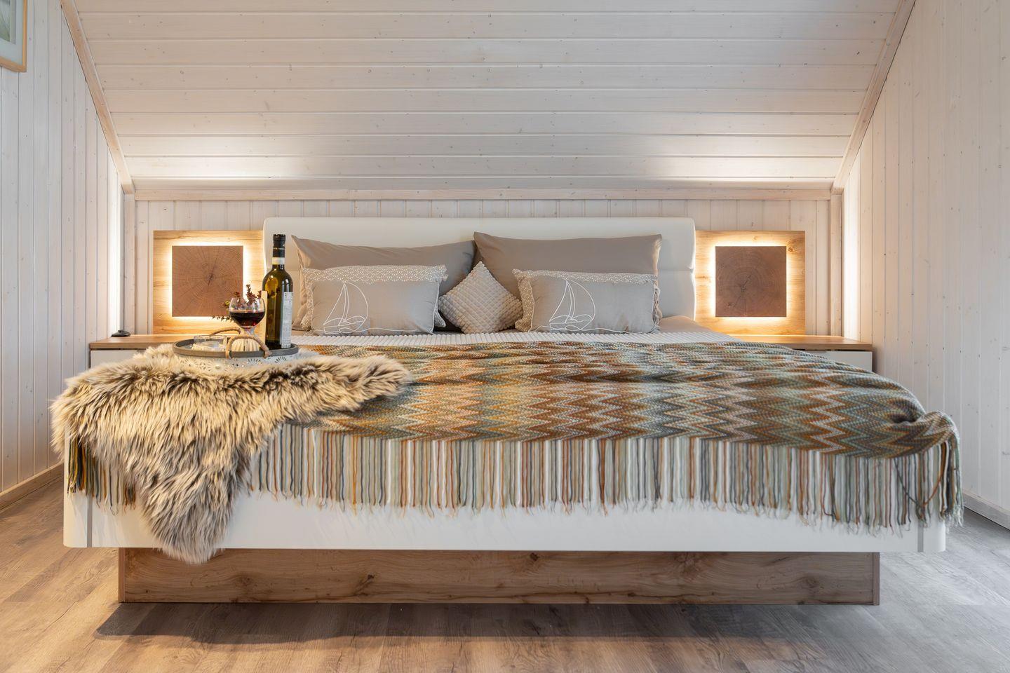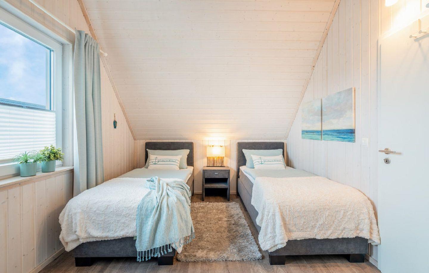 Die beiden Schlafzimmer versprechen erholsame Nächte und angenehme Träume. Das erste Schlafzimmer verwöhnt Sie mit einem großzügigen Doppelbett (180x200cm) und bietet reichlich Platz im geräumigen Kleiderschrank. Ein Smart-TV sorgt für abendliche Unterhaltung. Das zweite Schlafzimmer ist mit zwei Boxspringbetten (je 90x200 cm) ausgestattet und ebenfalls mit einem Kleiderschrank und Smart-TV versehen. Beide Schlafzimmer verfügen über Verdunkelungsmöglichkeiten, damit Sie ungestört schlafen können.