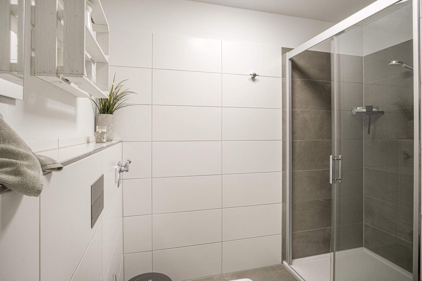 Das Badezimmer mit bodengleicher Dusche rundet den Komfort ab. Für Ihr Wohlbefinden sorgt eine Fußbodenheizung, die in der gesamten Wohnung für angenehme Wärme sorgt.