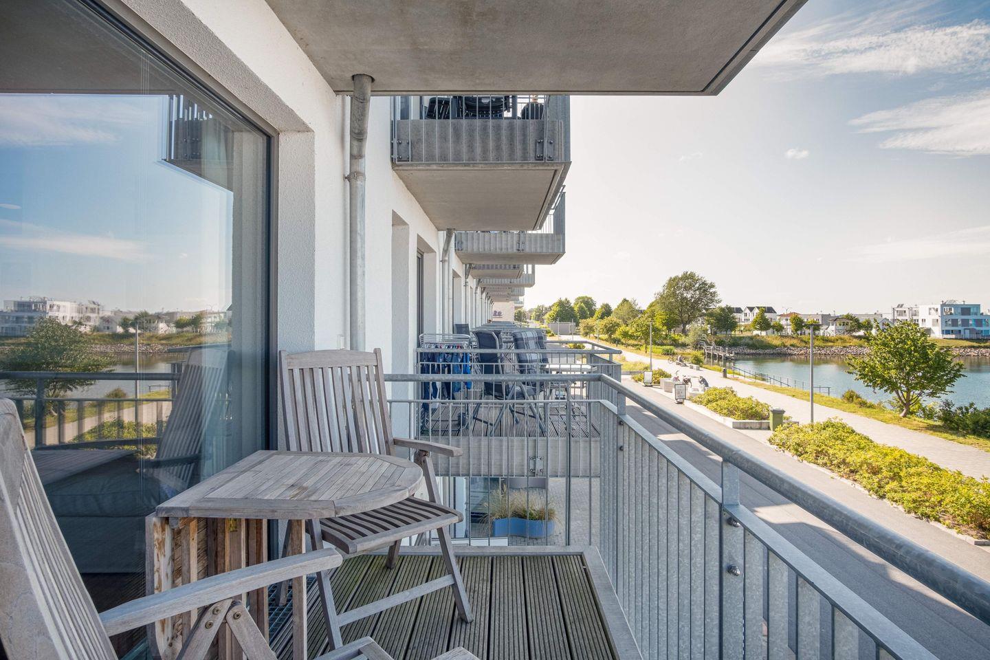 Portblick - 1. Reihe am Wasser, 1. Stock, Fußbodenheizung, TV, Balkon, Duschbad