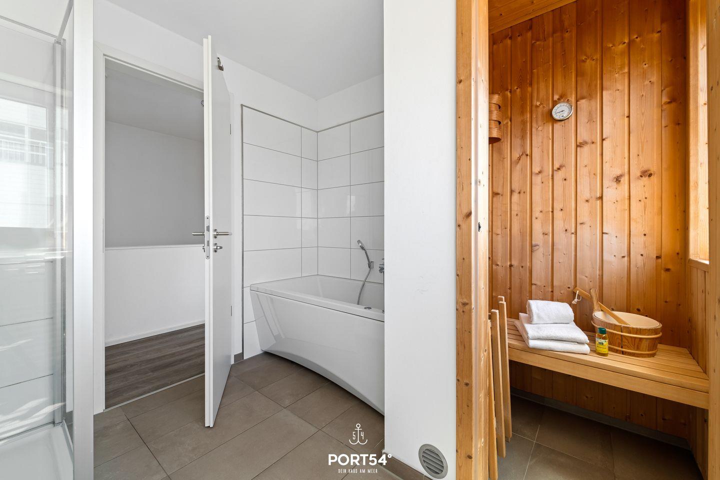 Das Ferienhaus bietet Dir nicht nur eine atemberaubende Lage und luxuriöse Ausstattung, sondern auch umfassende Wellness-Möglichkeiten. Zwei moderne Badezimmer sorgen dafür, dass Dir auch bei voller Belegung ausreichend Platz zur Verfügung steht. Für besondere Entspannung sorgt die private finnische Sauna, in der Du nach einem langen Tag am Strand wunderbar abschalten kannst. Zusätzlich lädt Dich eine Whirlwanne zum Entspannen und Wohlfühlen ein, während der Alltag in weite Ferne rückt. Auch eine Dusche, ein Handtuchheizkörper und ein Föhn sind in den Bädern vorhanden.