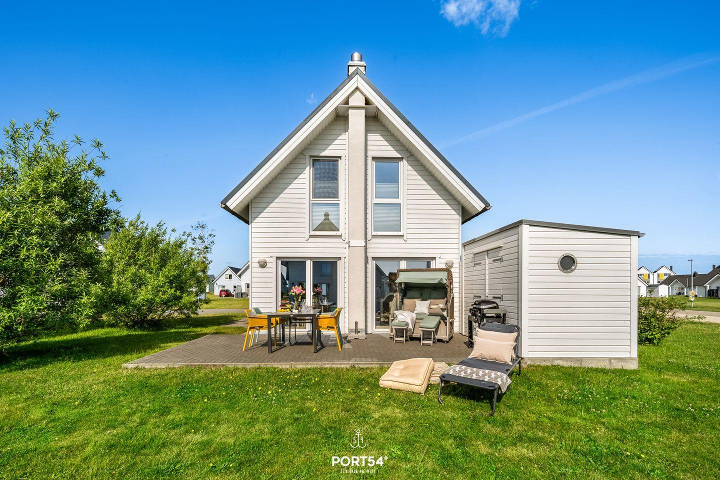 Herzlich Willkommen im Ferienhaus "Meer und Mehr I". Ihr freistehendes Ferienhaus besticht durch seine Lage, umgeben von einer grünen Wiese in unmittelbarer Nähe zur Ostsee und dem Yachthafen. Das Domizil bietet auf über 80m² einen offenen Wohn- und Essbereich mit Küche, zwei Schlafzimmer, zwei Badezimmer und eine Terrasse. Große Panoramafenster sorgen für eine lichtdurchflutete Wohlfühlatmosphäre. Entspannen Sie auf dem Sofa vor dem Flachbild-TV oder lassen Sie Ihre Urlaubstage auf der Terrasse ausklingen. An den kühleren Tagen sorgt der Kaminofen im Wohnbereich für eine gemütliche Wärme. Zu Ihrer Sicherheit ist das Haus mit einem Kohlenmonoxid Melder ausgestattet. Um gesellige Abende zu verbringen, stehen Ihnen Bücher, Gesellschaftsspiele, Blu-ray Discs, DVDs und CDs zur Verfügung. Ein Schlafsofa (140x200cm) bietet 2 Kindern eine zusätzliche Schlafmöglichkeit. Die modern eingerichtete Küche lässt keine Wünsche offen. Sie finden hier alles, um sich und Ihre Mitreisenden kulinarisch verwöhnen zu können. Das Bad im Erdgeschoss verfügt über ein Fenster mit Sichtschutz, einem WC, einer Dusche und als Highlight, eine Infrarotkabine. Hier können Sie es sich nach langen Strandspaziergängen gut gehen lassen. Im Obergeschoss befinden sich zwei Schlafzimmer, die beide u. a. mit Kleiderschränken und Boxspringbetten ausgestattet sind, eins mit einem Doppelbett (180x200cm), das andere mit 2 zusammengeschobenen Einzelbetten (100x200cm). Ein Kinderhochstuhl sowie ein Kinderreisebett mit Matratze finden Sie ebenfalls im Haus. Ein weiteres Wannenbad mit Fenster mit Sichtschutz runden das Obergeschoss ab. Beide Bäder verfügen über einen Handtuchheizkörper. Die Terrasse ist ausgestattet mit Terrassenmöbeln, 2 Sonnenliegen, einem Strandkorb und einem hochwertigen Weber Elektrogrill. Ihre Fahrräder können Sie sicher in einem Fahrradschuppen unterbringen. Hier finden Sie auch noch einen Bollerwagen, den Sie für Strandausflüge nutzen können. Vor dem Haus stehen Ihnen 2 Parkplätze zur Verfügung. Das Haus ist maximal für 4 Erwachsene und 2 Kinder geeignet. Direkt nebenan erwartet Sie das baugleiche Schwesterhaus „Meer & Mehr II“. Ideal für unvergessliche Urlaubstage mit der Großfamilie oder engen Freunden – genießen Sie gemeinsame Erlebnisse und gleichzeitig die Rückzugsmöglichkeiten für entspannte Momente der Privatsphäre.