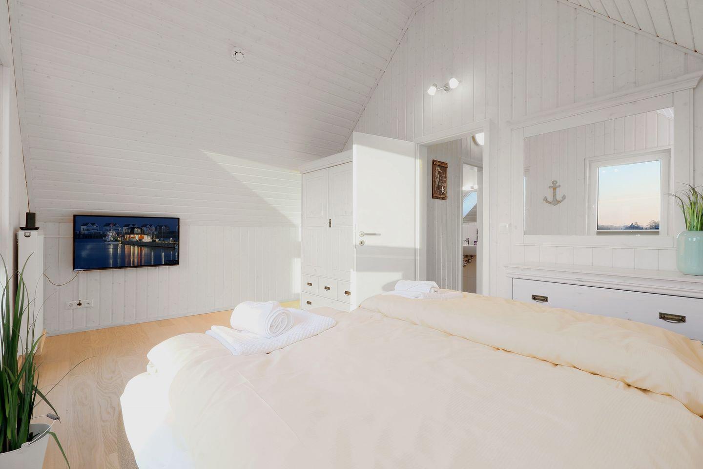 Eines der beiden Schlafzimmer bietet ein gemütliches Boxspring-Doppelbett (180 x 200 cm) und das andere Schlafzimmer zwei Boxspring-Einzelbetten (je 90 x 200 cm). Beide Zimmer sind mit Kleiderschränken und Verdunkelungsmöglichkeiten ausgestattet – somit steht einem erholsamen Schlaf nichts im Wege.