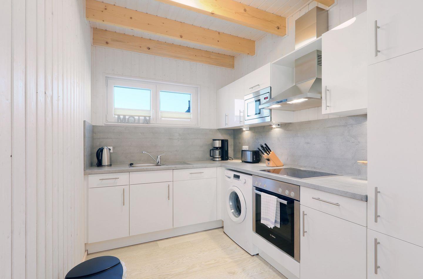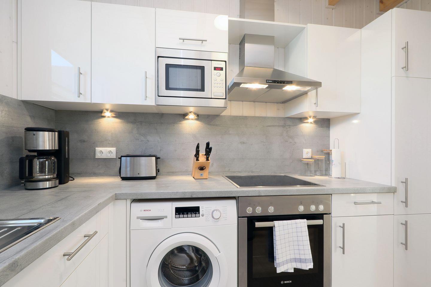 Entspanne Dich auf dem Sofa vor dem Flachbild-TV oder lasse Deine Urlaubstage auf der Terrasse ausklingen. Die Couch lässt sich mit wenigen Handgriffen zum Schlafsofa umfunktionieren und bietet weiteren Schlafplatz für 2 Kinder. An den kühleren Tagen sorgt der Kaminofen im Wohnbereich für eine gemütliche Wärme. In der vollausgestatteten Küche lassen sich leckere Gerichte zaubern.